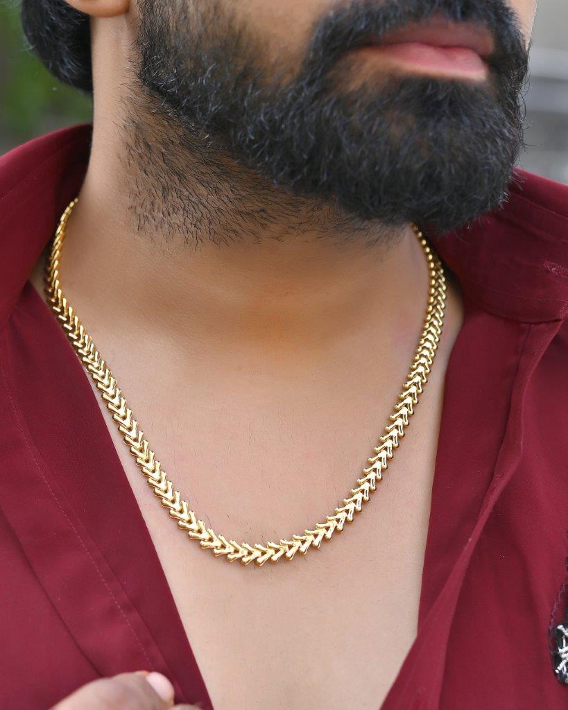 Unleash Your Bold Style With Our Gold Plated Designer V Shaped Chain For Men. This Striking Chain Features A Unique V-Shaped Design That Adds A Contemporary Edge To Your Look. Crafted From High-Quality Gold Plating, It Offers A Brilliant Shine And Lasting Durability. Perfect For Layering Or Making A Statement On Its Own, This Chain Is An Essential Accessory For The Modern Man Who Values Both Fashion And Individuality.