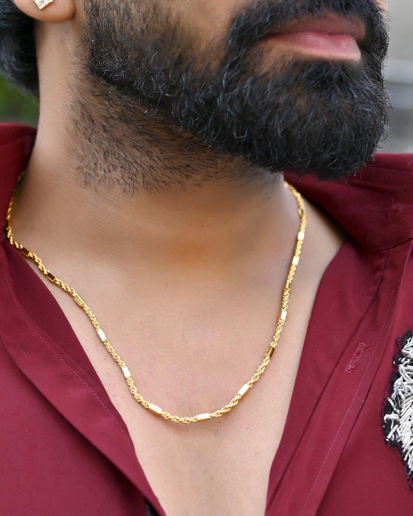 Elevate Your Accessory Collection With Our Gold Plated Pipe Chain For Men. This Stylish Chain Features A Unique Pipe Design That Blends Contemporary Flair With Classic Elegance. Crafted From High-Quality Gold Plating, It Boasts A Brilliant Shine And Exceptional Durability. Perfect For Both Casual And Formal Wear, This Chain Adds A Distinctive Touch To Any Outfit, Making It An Essential Piece For The Modern Man Who Appreciates Sophisticated Style.