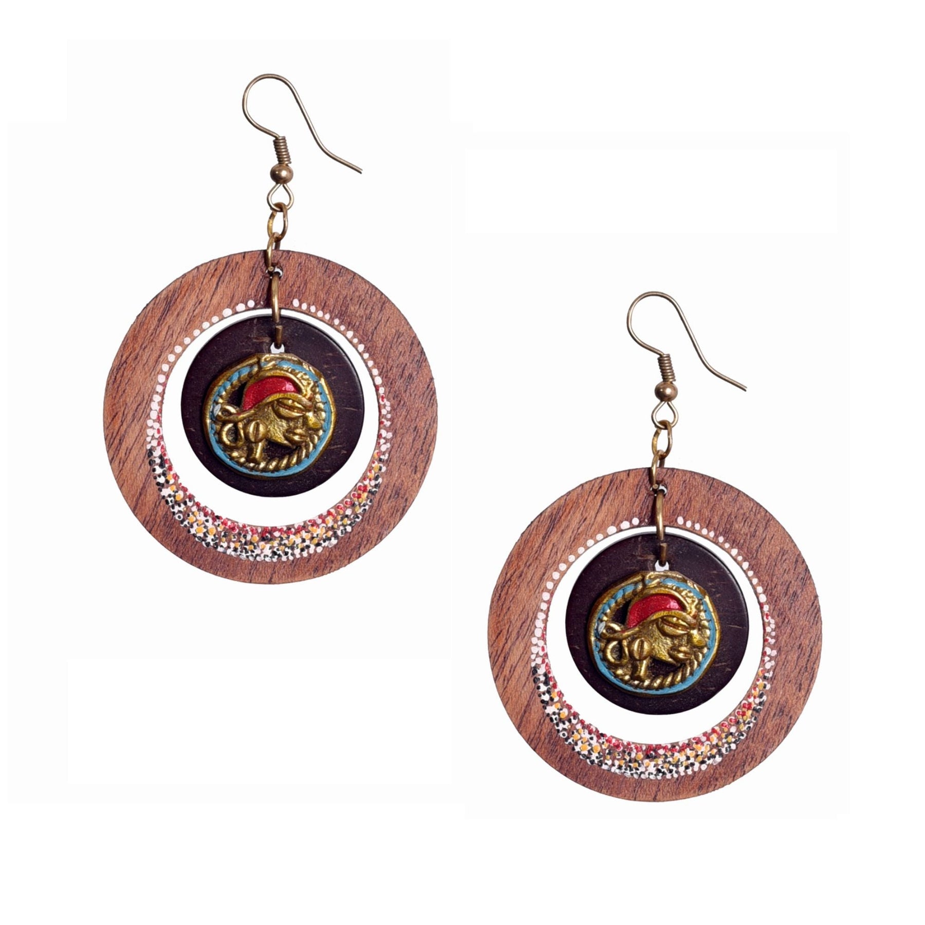 These handcrafted wooden loop earrings with a brass centerpiece are the perfect embodiment of minimalist chic. The sleek and simple design of the wooden loops is beautifully contrasted by the intricate brass centerpiece, creating a unique and eye-catching look.