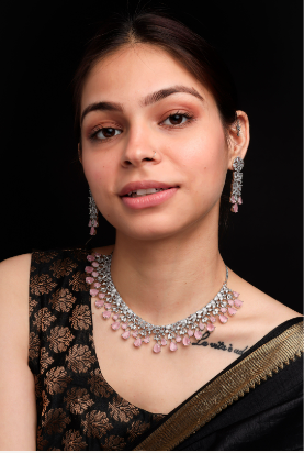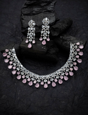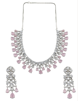 This exquisite American Diamond/Cubic Zirconia Necklace Set is perfect for women who love understated elegance. Made with high-quality American Diamonds, this necklace set is designed to add a touch of sophistication to your look. The sleek and minimalist design of the necklace makes it perfect for special occasions such as weddings, parties and festivals.
