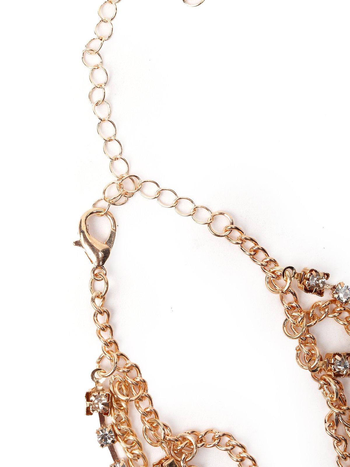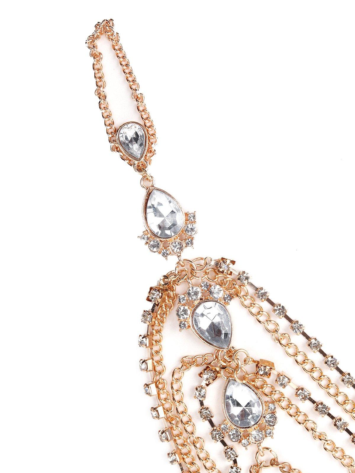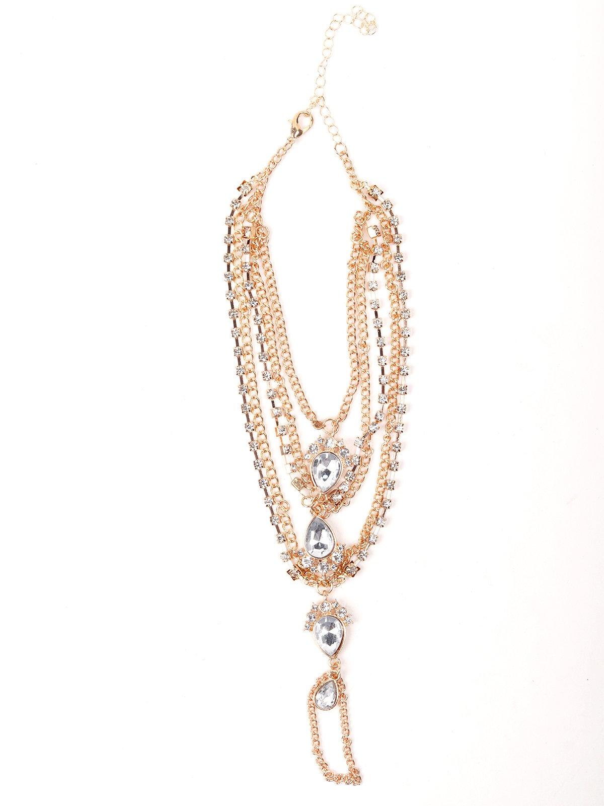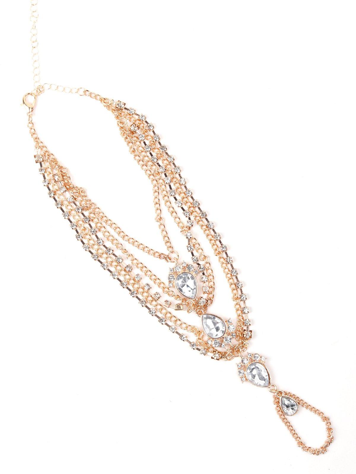 You'll realize the one thing that will surprisingly be on display way too much are your hands while doing your 'namastes' this Diwali! Make your hands look beautiful as ever with this stunning Multi-layered chain bracelet that features studs and crystals in gold-tone plating. Hence, Adorn this hathphool to – your hands it will take def rock your look.Product detail: