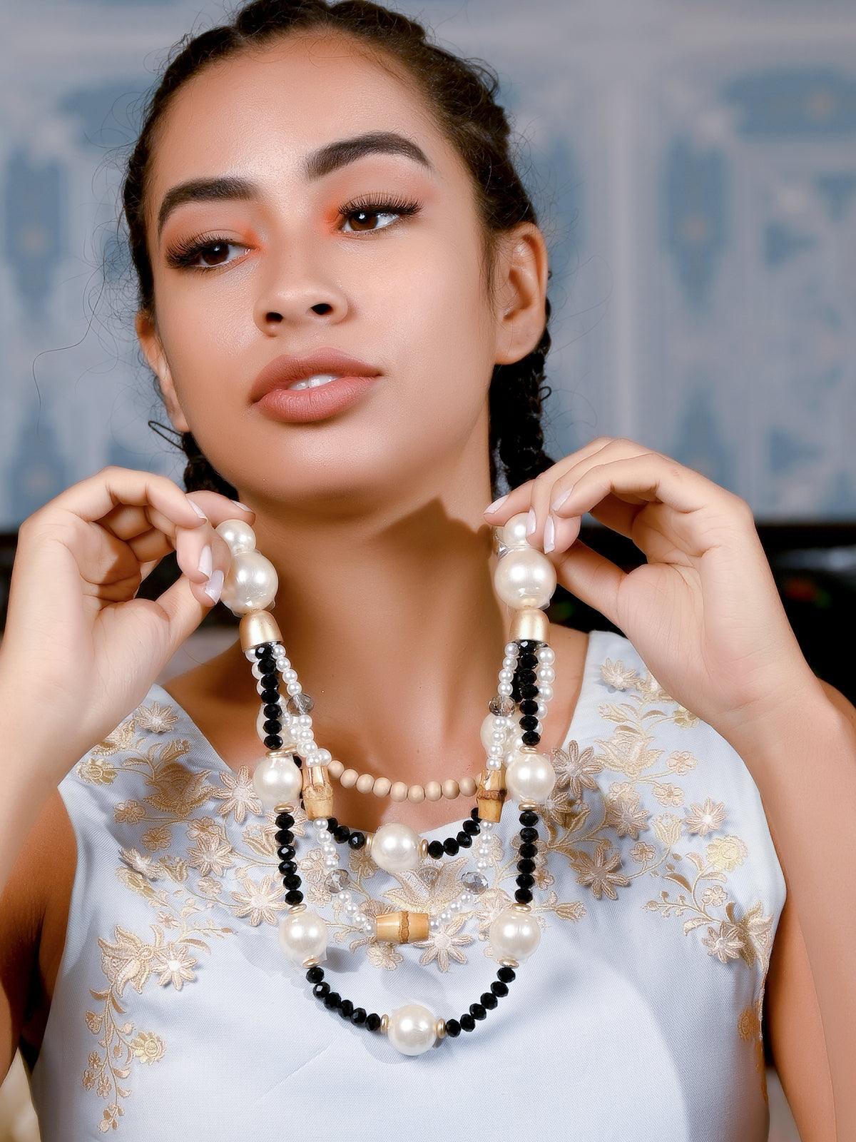 Odette presents this beautiful necklace that is embellished with multi-coloured beads having four layers to it. The necklace is secured with a lobster clasp closure. Wear this necklace with any outfit and it’s sure to grab all the attention towards your neckline.