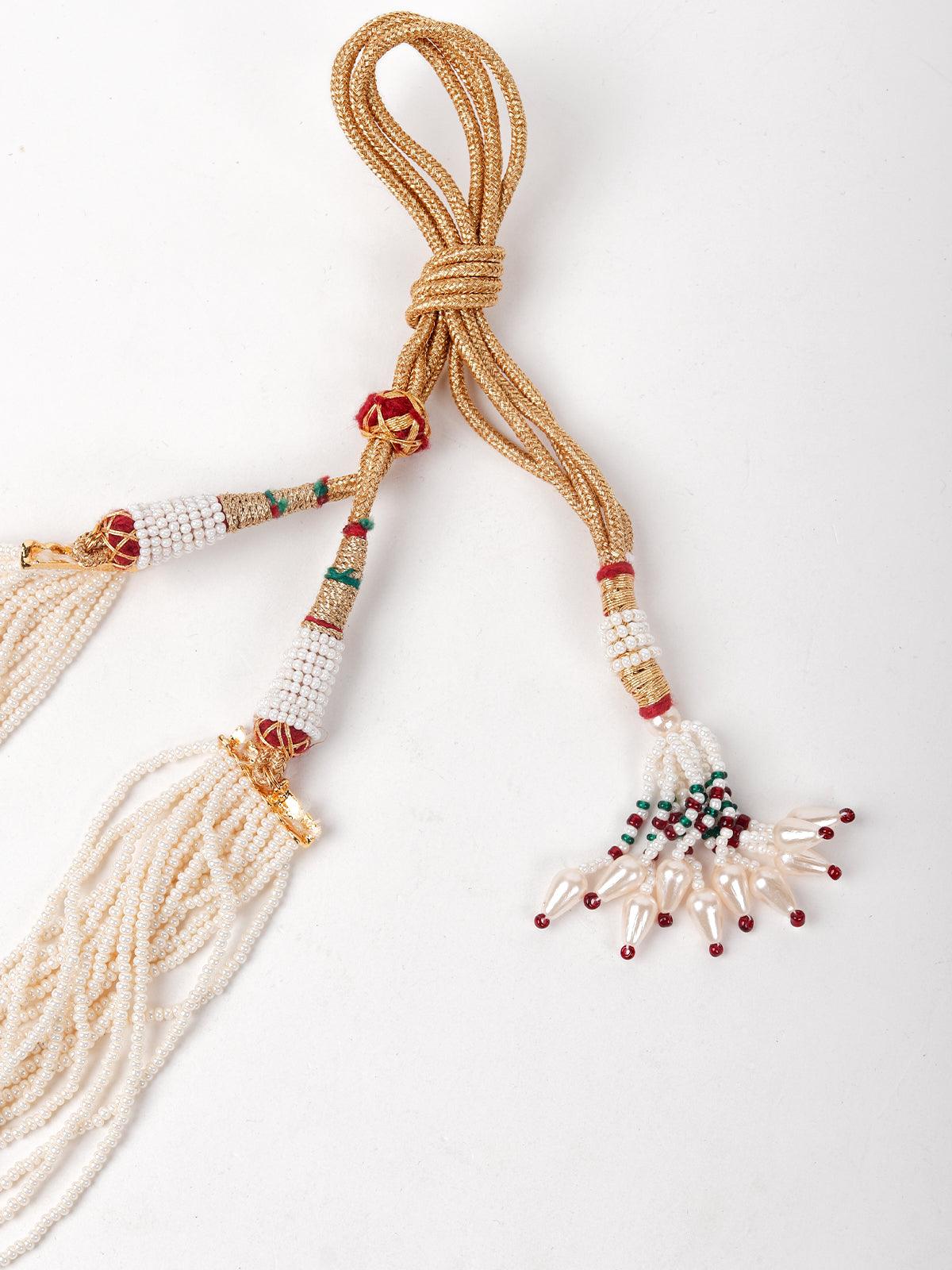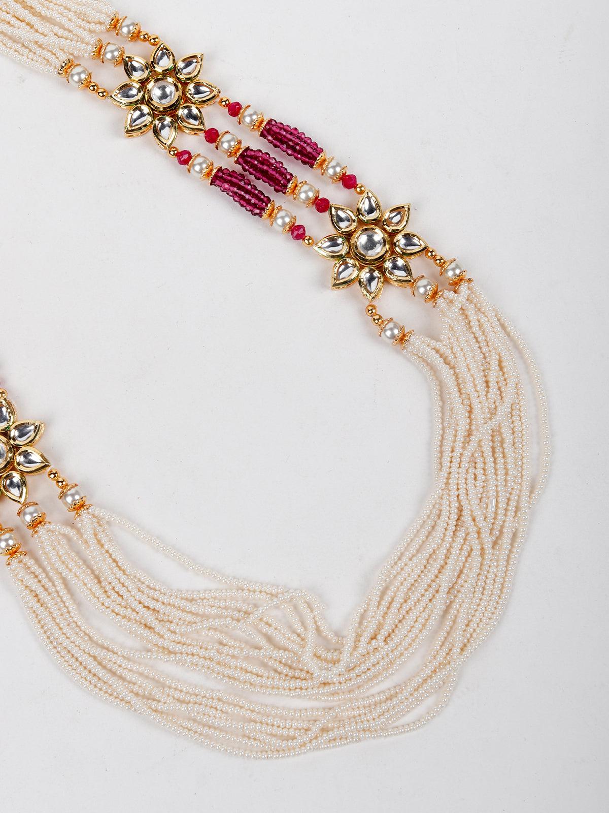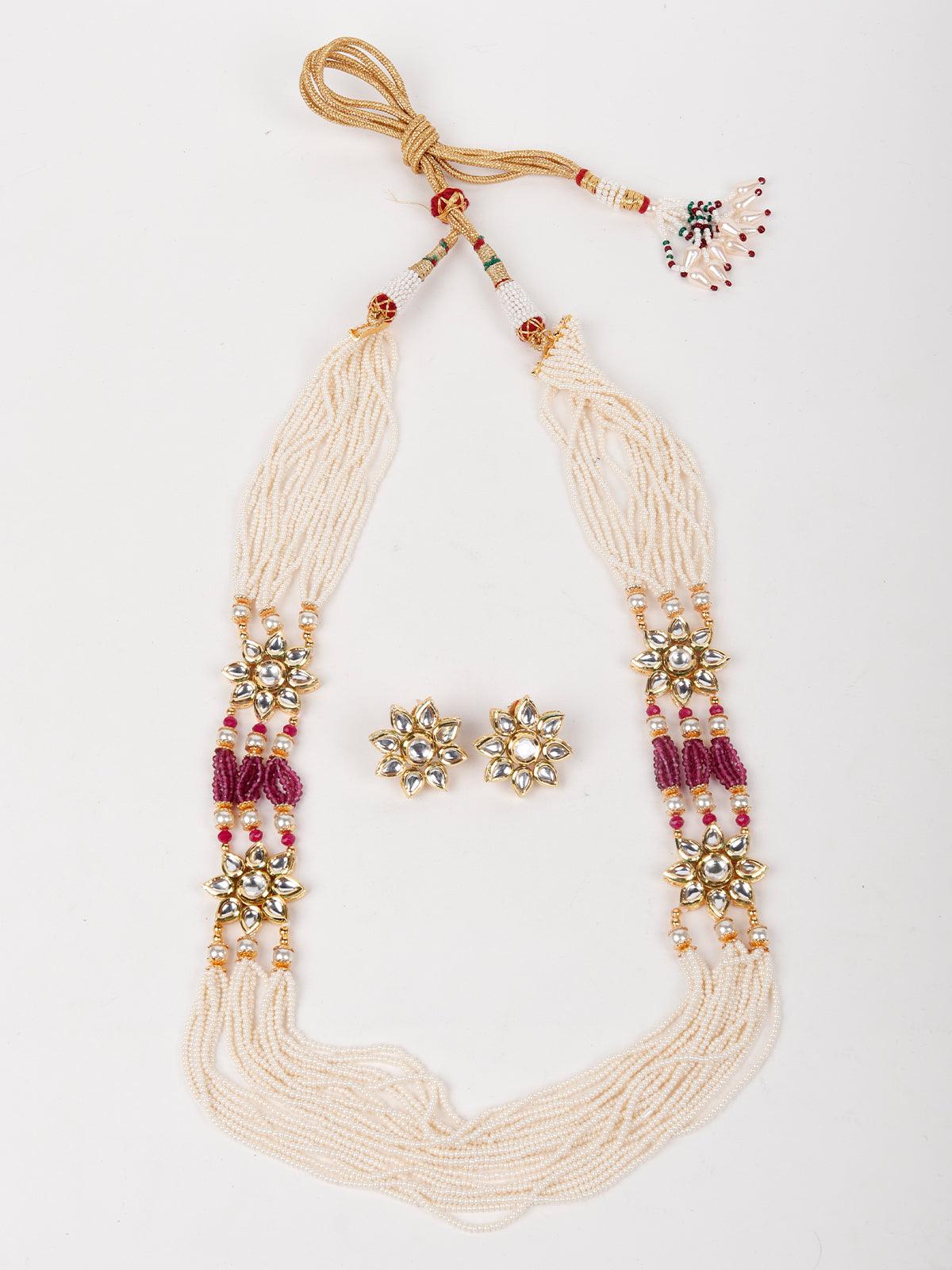 Odette presents this stunning necklace set with white beads, multi-strands embellished with small dark pink beads.The earrings arein a flower shape that looks very cute and classy. The necklace has a drawstring closure.Product detail: