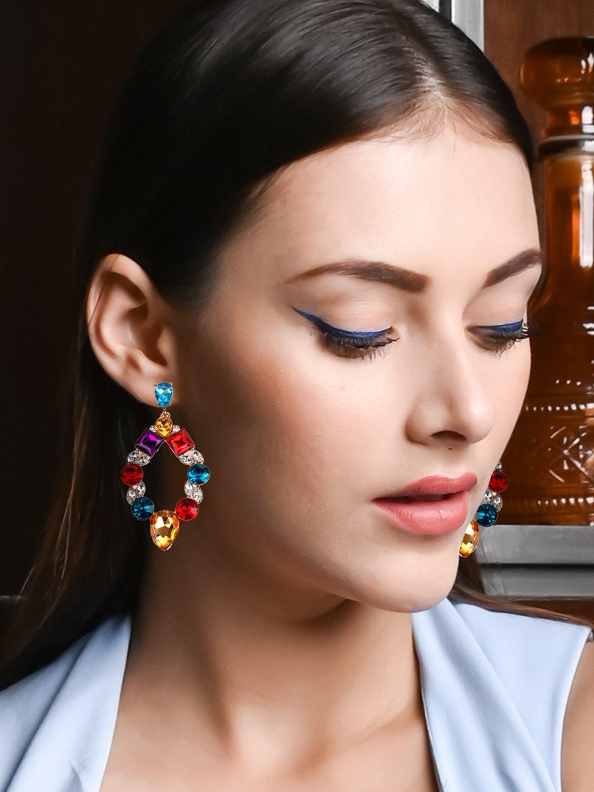• Odette presents these stunning drop earrings with gemstones embedded, these earrings are gorgeous and are sure to add the perfect amount of shine to your outfit.