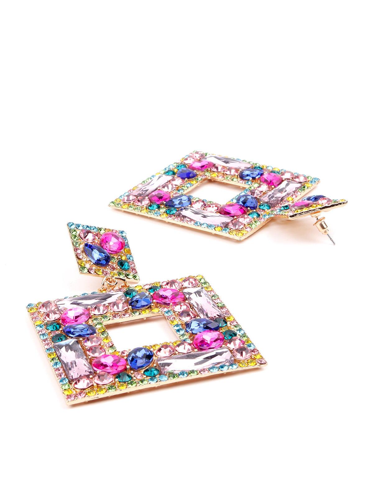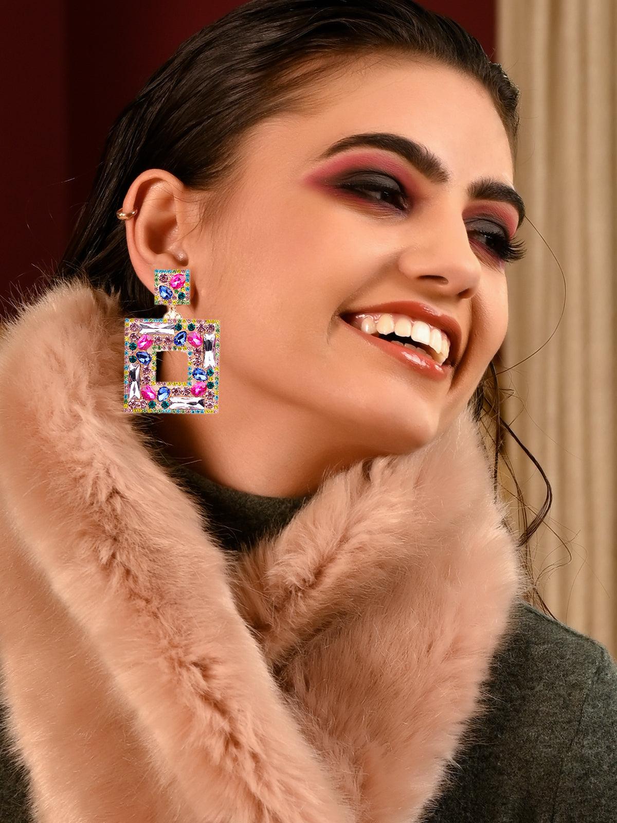 Teardrop earrings are one of the best picks that flatter your face, your hairstyle and your personality. Take a look at these striking yet elegant citrine drop earrings that sparkle like the golden sun. The square citrine tops linked to the station diamonds are also set sideways to lengthen the drop look. The perfect combination of curved and defined contours.