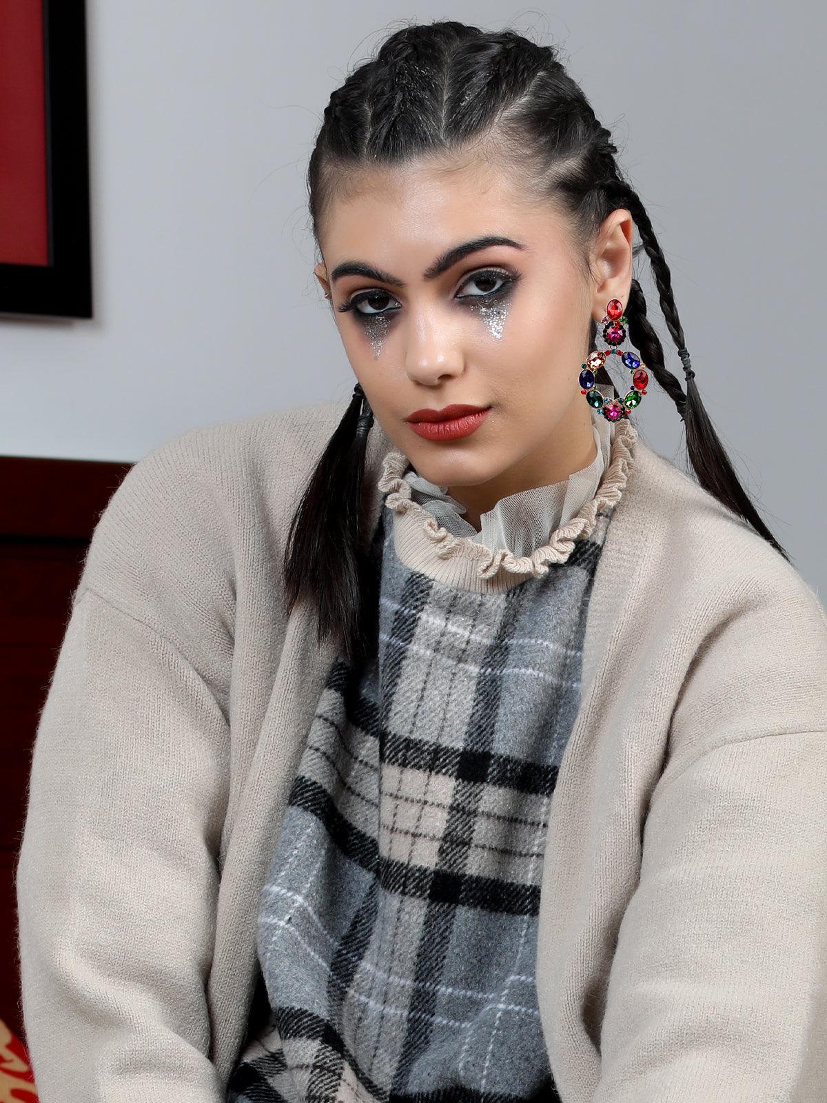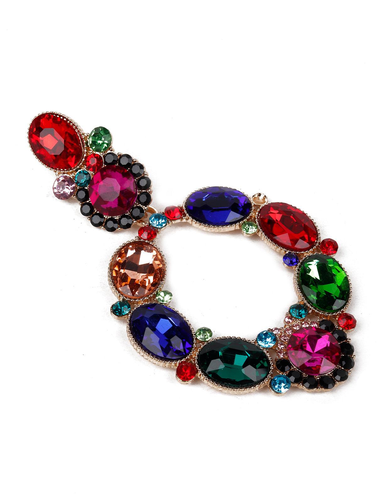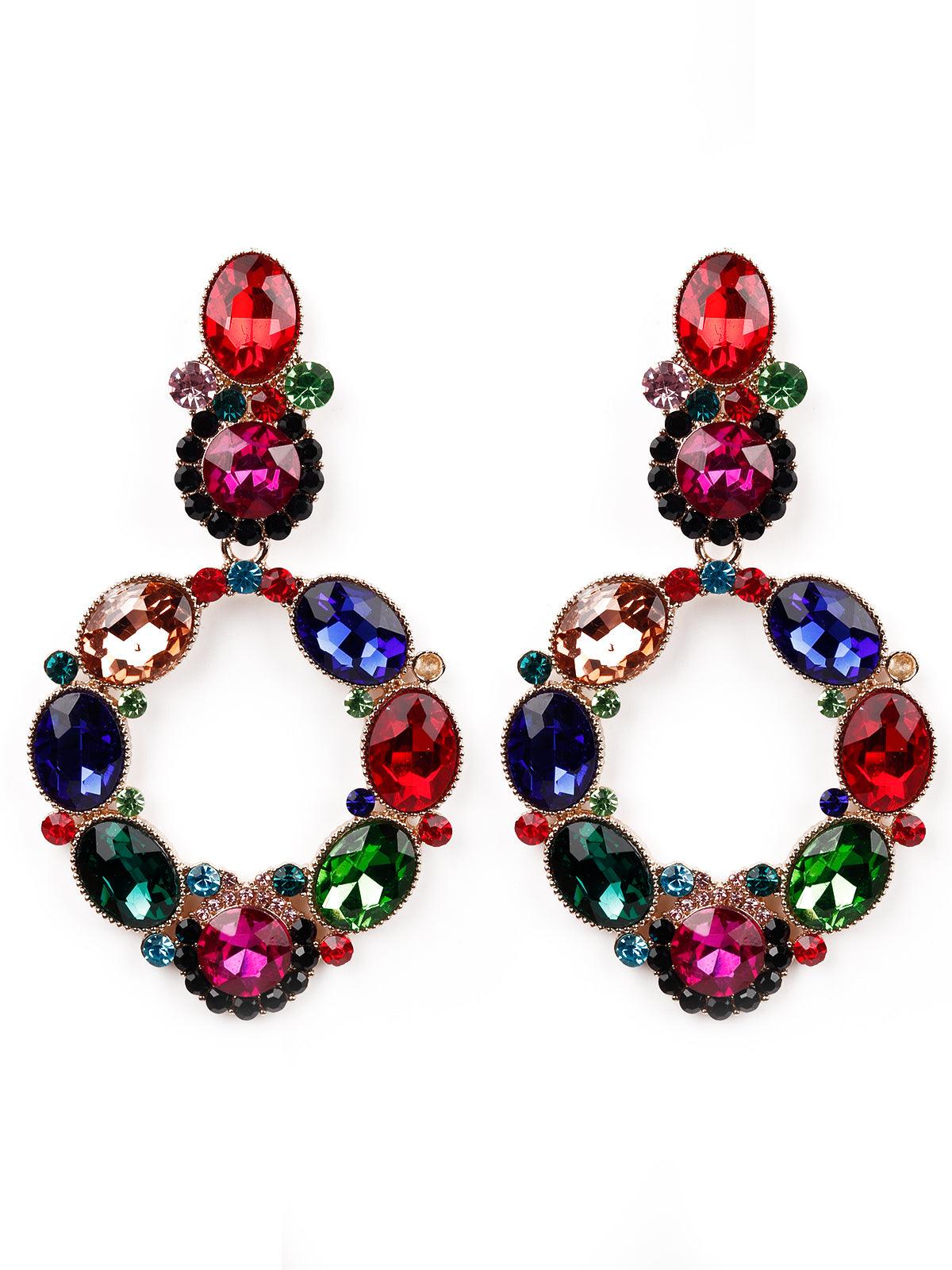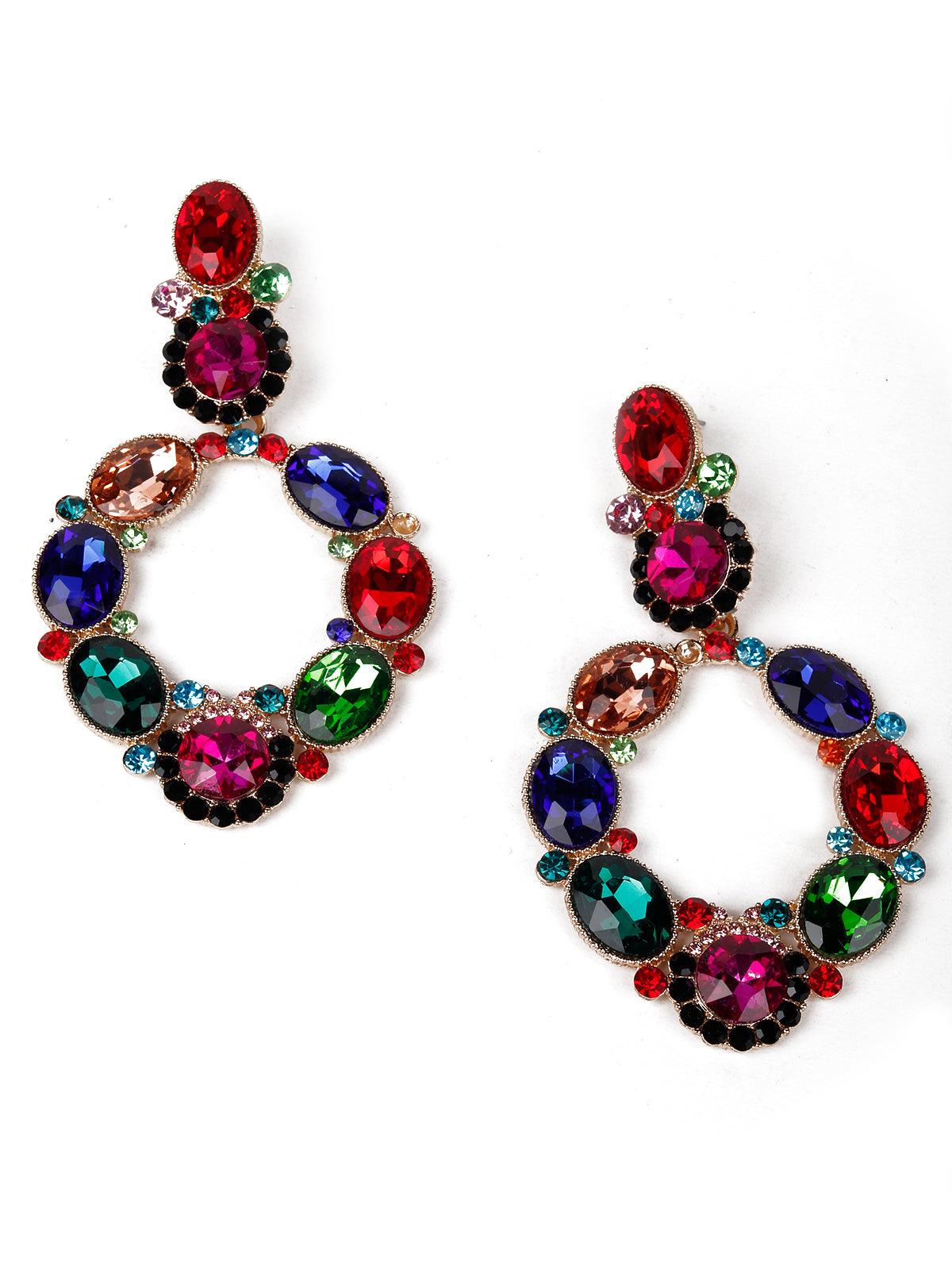 Odette presents these beaches pair of earrings that are embellished with colourful dark crystals. The colour pop of the earrings add to the style and uniqueness of the earrings The earrings are secured with a pushpin closure fastening.