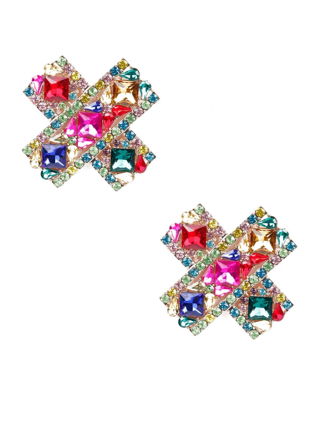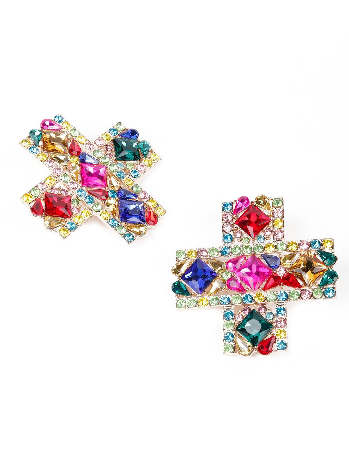 Odette presents these beautiful stunning statement earrings that are embellished with colourful crystals. The hearing has a beautiful Cross shape and is sure to draw attention to your face the crystals I was sure to highlight the features of your face. The earrings are super versatile and can be worn with any formal or traditional outfit.