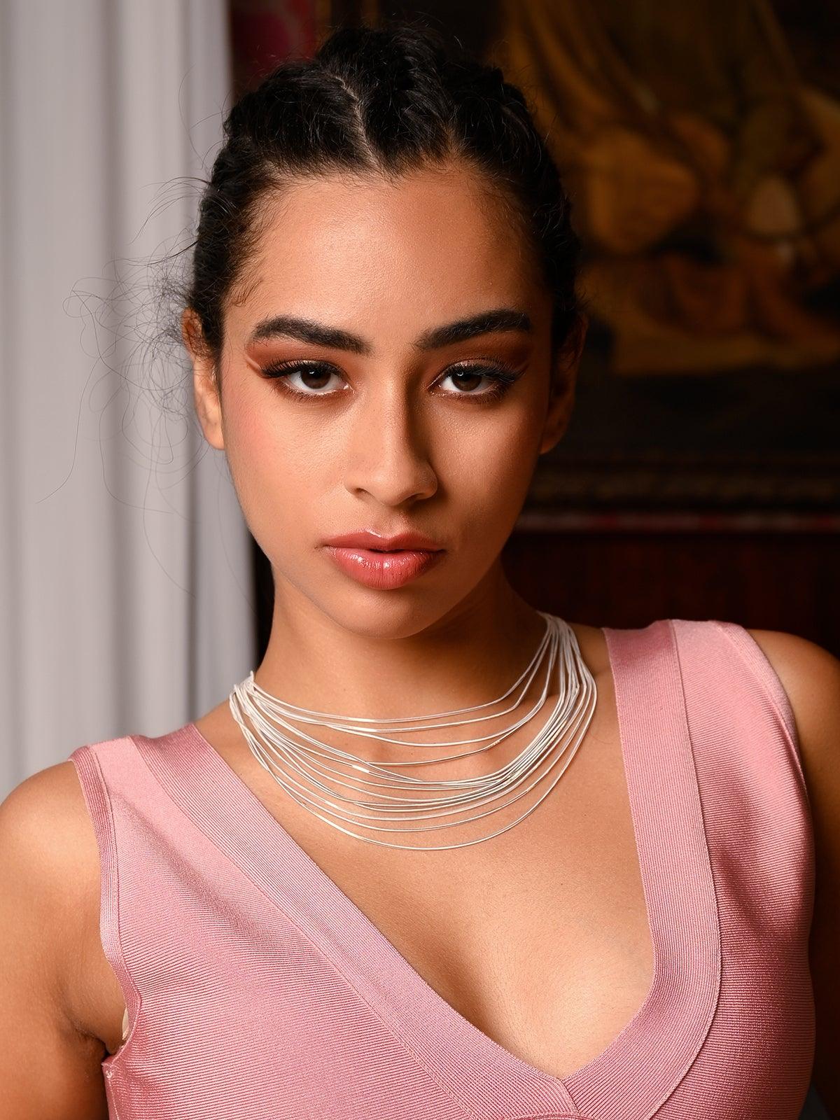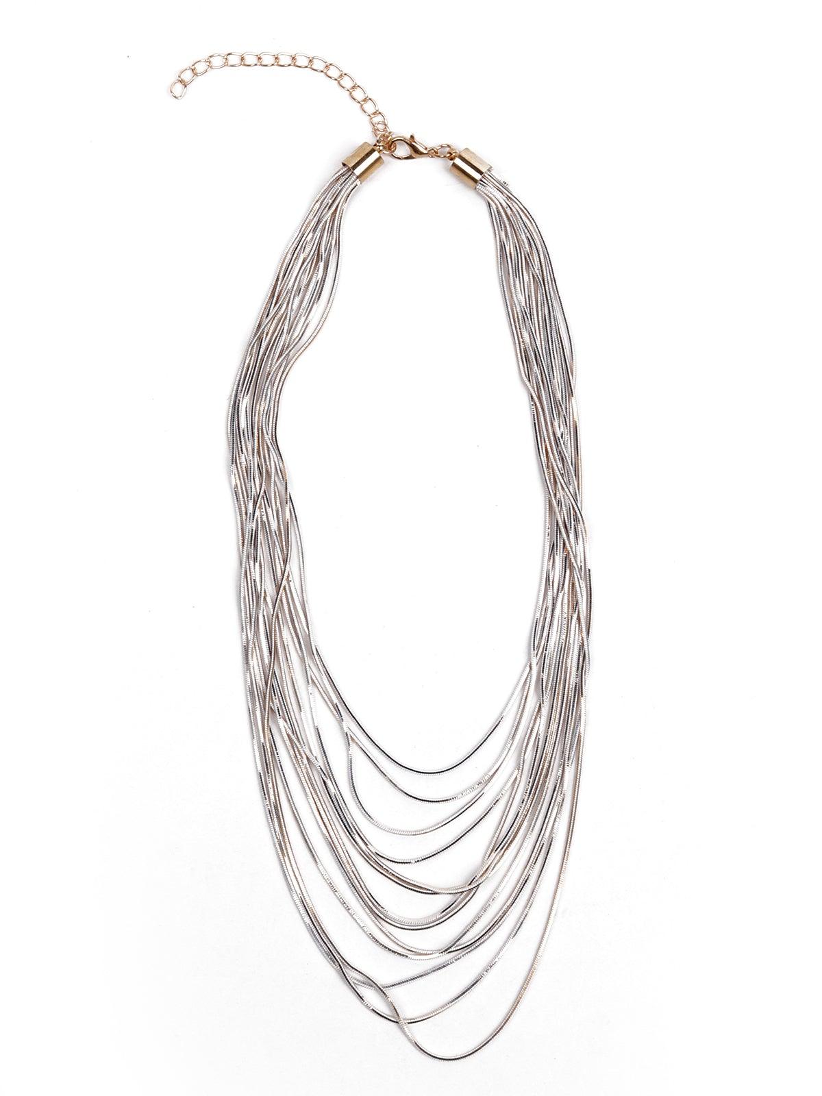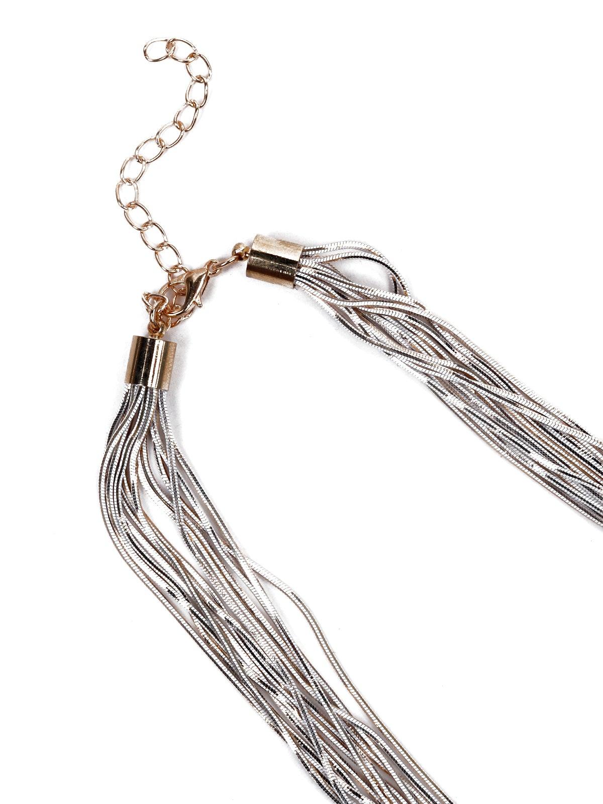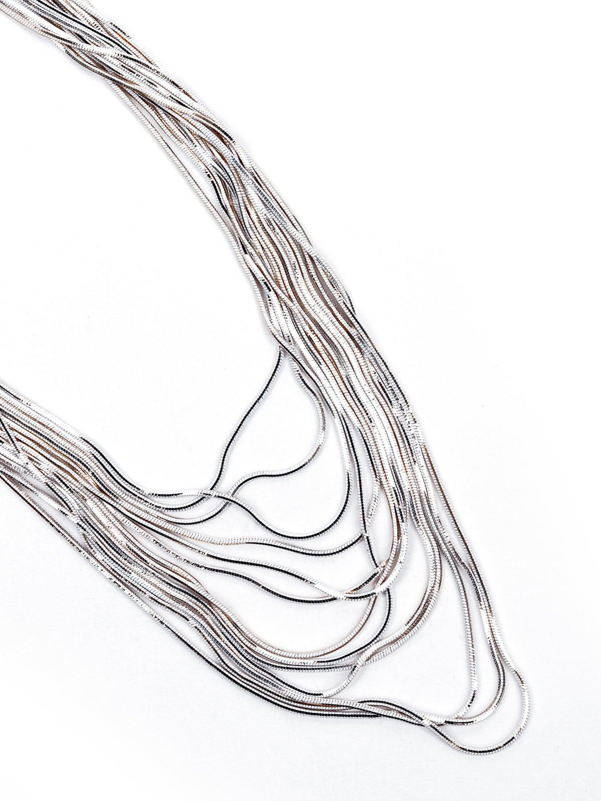 - Odette brings to you this stunning statement designer necklace that comes in a metallic silver-tone with multiple layers