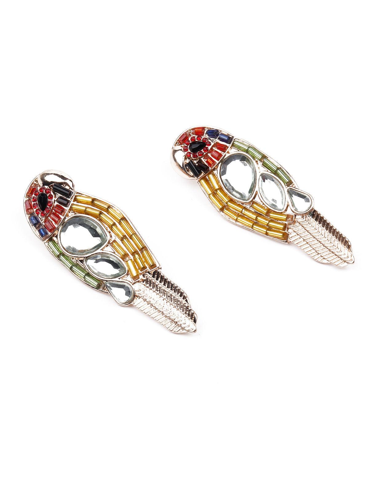 Odette presents this gorgeous pair of earrings that is embellished with beads, the earrings have stunning green yellow and red beads. The earrings are secured with pushpin closure fastening.
