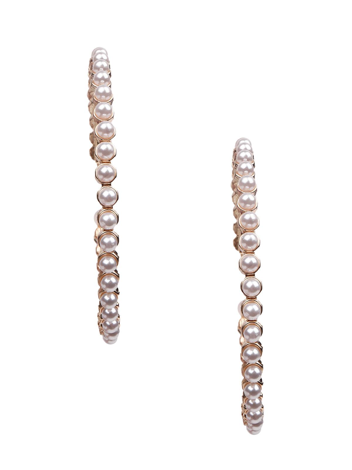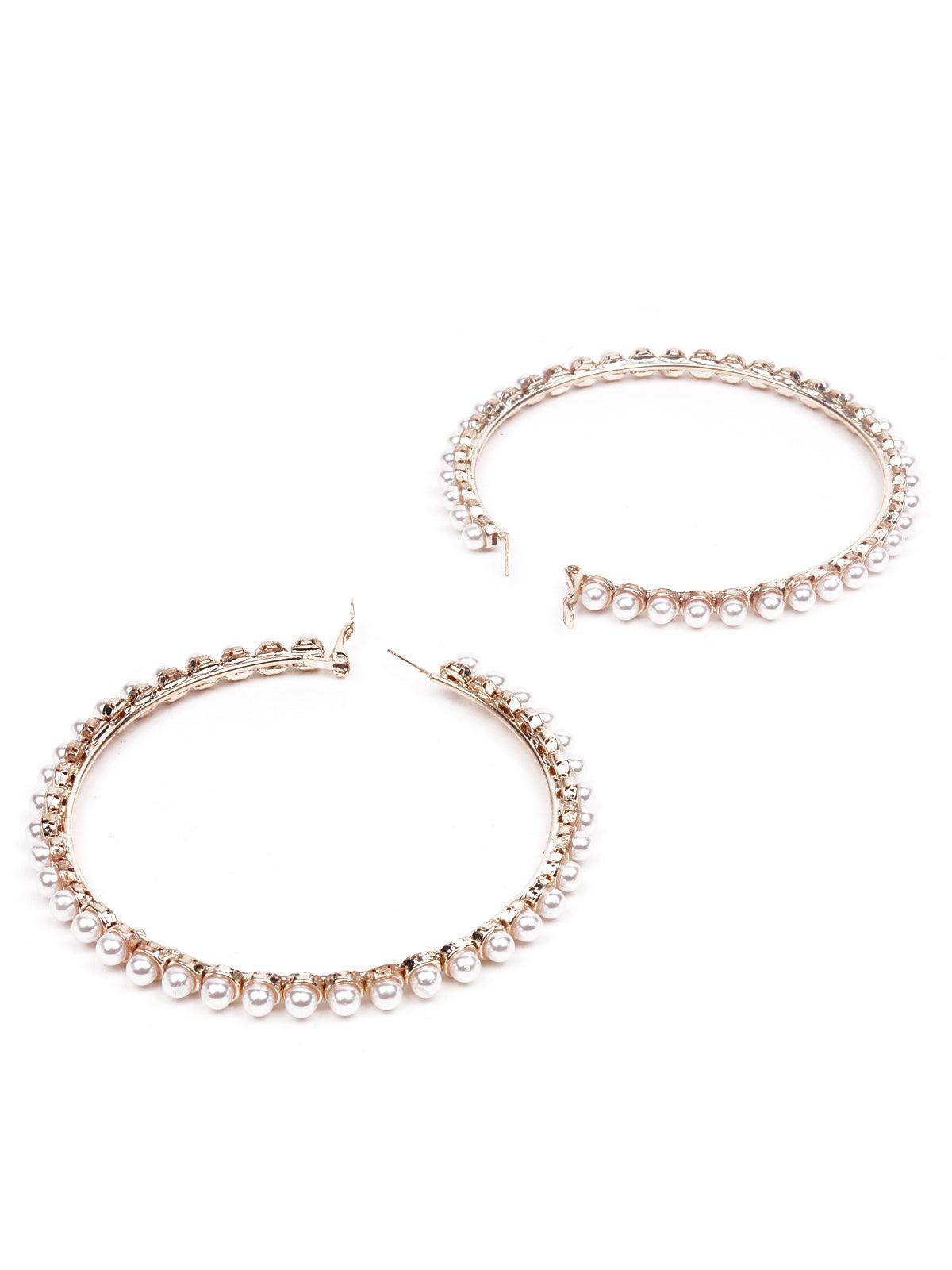 Odette presents these stunning pair of earrings that are embellished with studded pearls, the hoop earrings are very fashionable and look gorgeous.