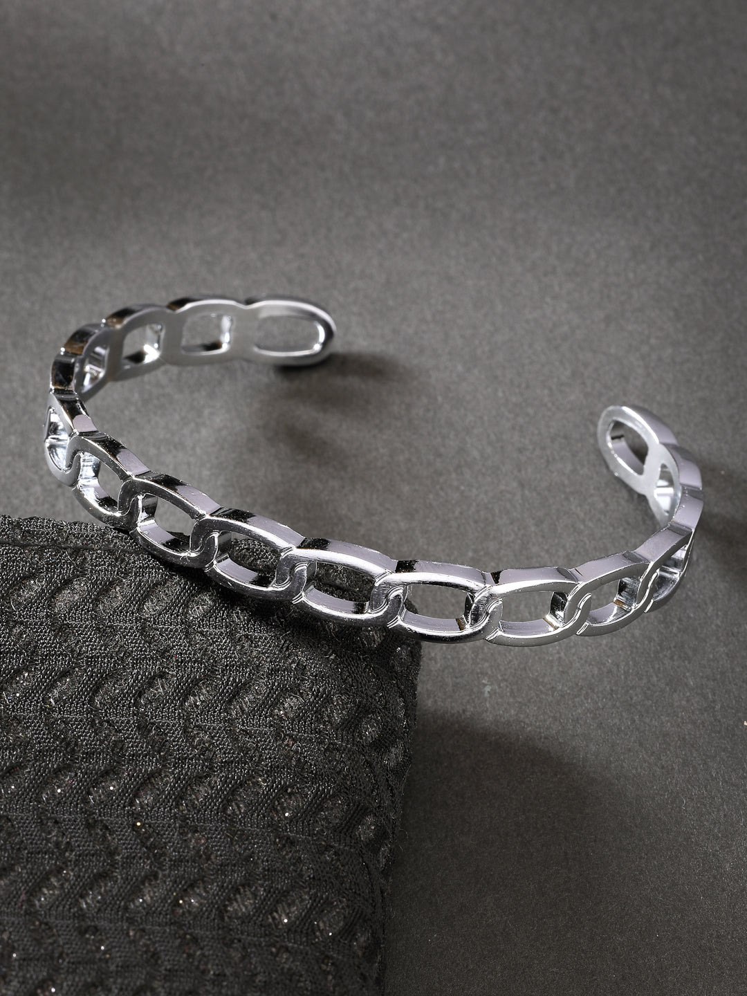 Style Note: The NVR Men Set of 2 Rhodium-Plated Metal Cuff Bracelets embodies modern sophistication with its sleek rhodium-plated finish. These cuff bracelets are versatile and stylish, suitable for both casual and formal occasions. Whether worn individually for a subtle accent or stacked together for a bold statement, they complement a wide range of outfitsfrom everyday casual wear like jeans and shirts to more polished looks such as tailored suits or traditional attire. With their minimalist yet elegant design, these cuff bracelets elevate your ensemble with a contemporary edge, making them a versatile choice for enhancing your personal style.