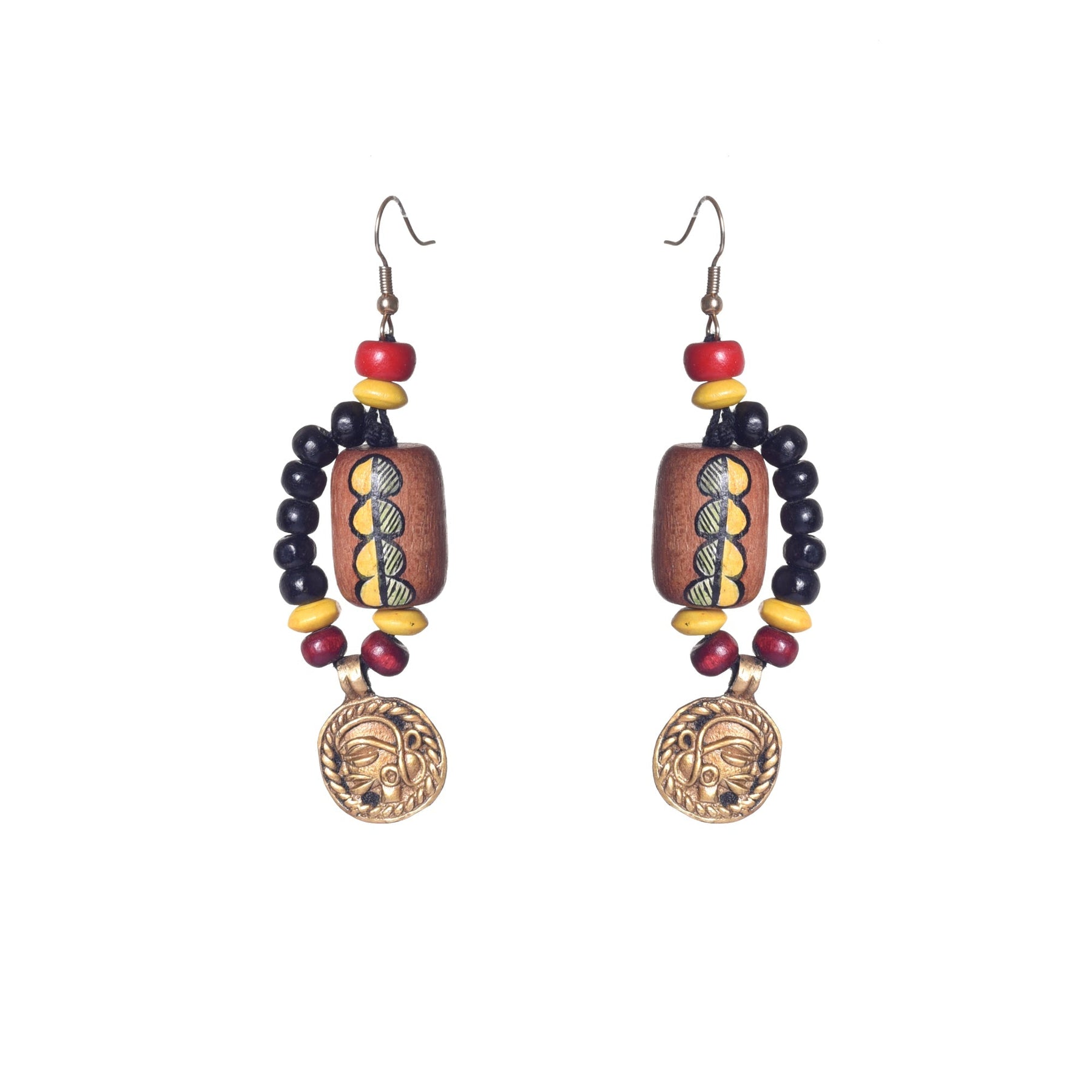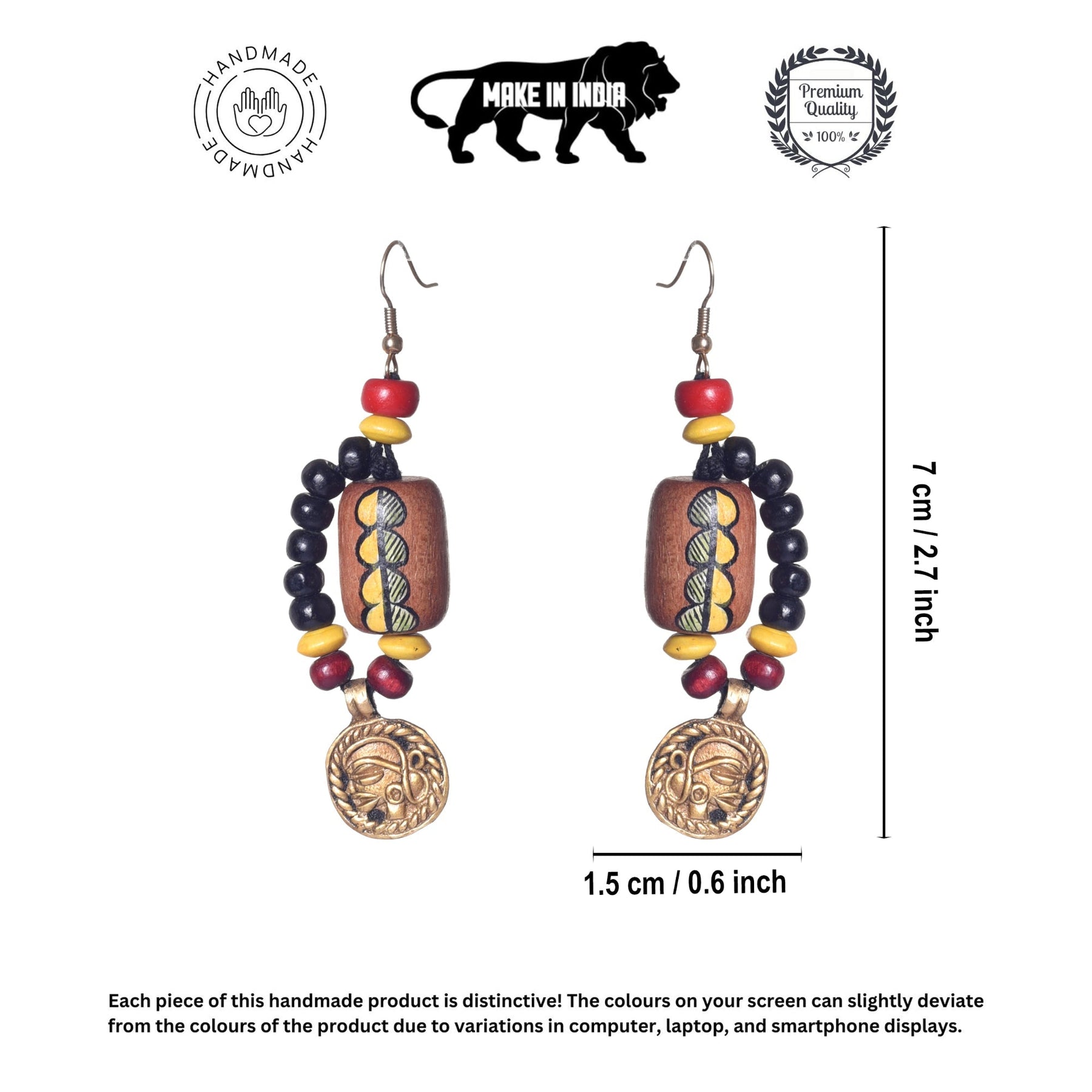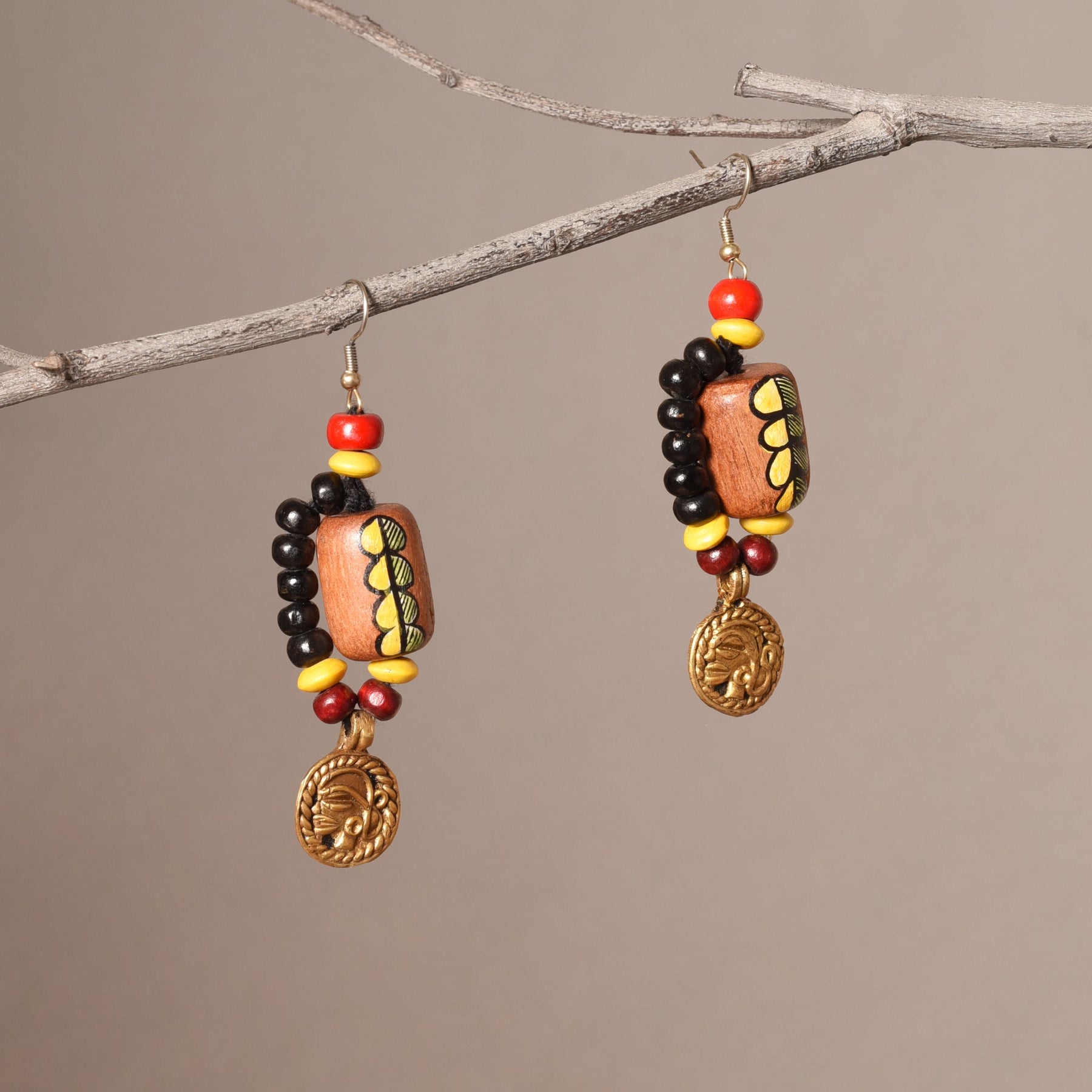 "Serene Lotus Earrings" showcase brass lotus blooms, skillfully handcrafted and painted with serene colors, symbolizing purity, enlightenment, and inner peace.