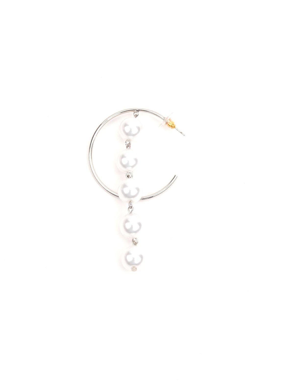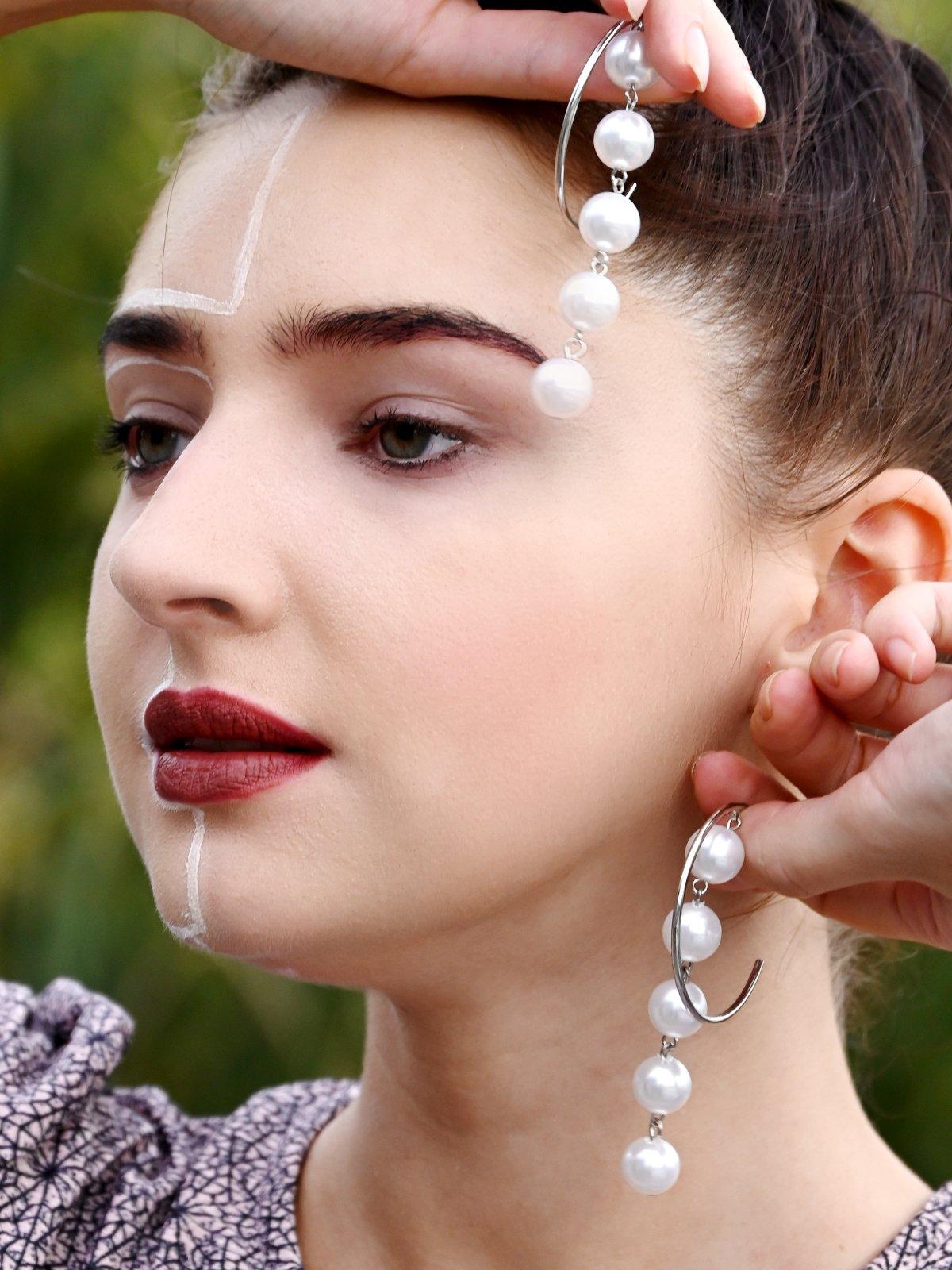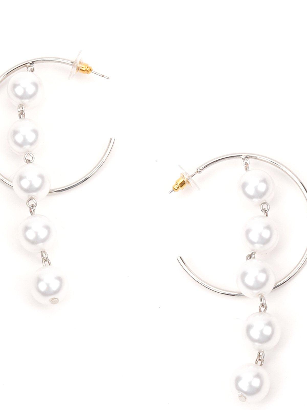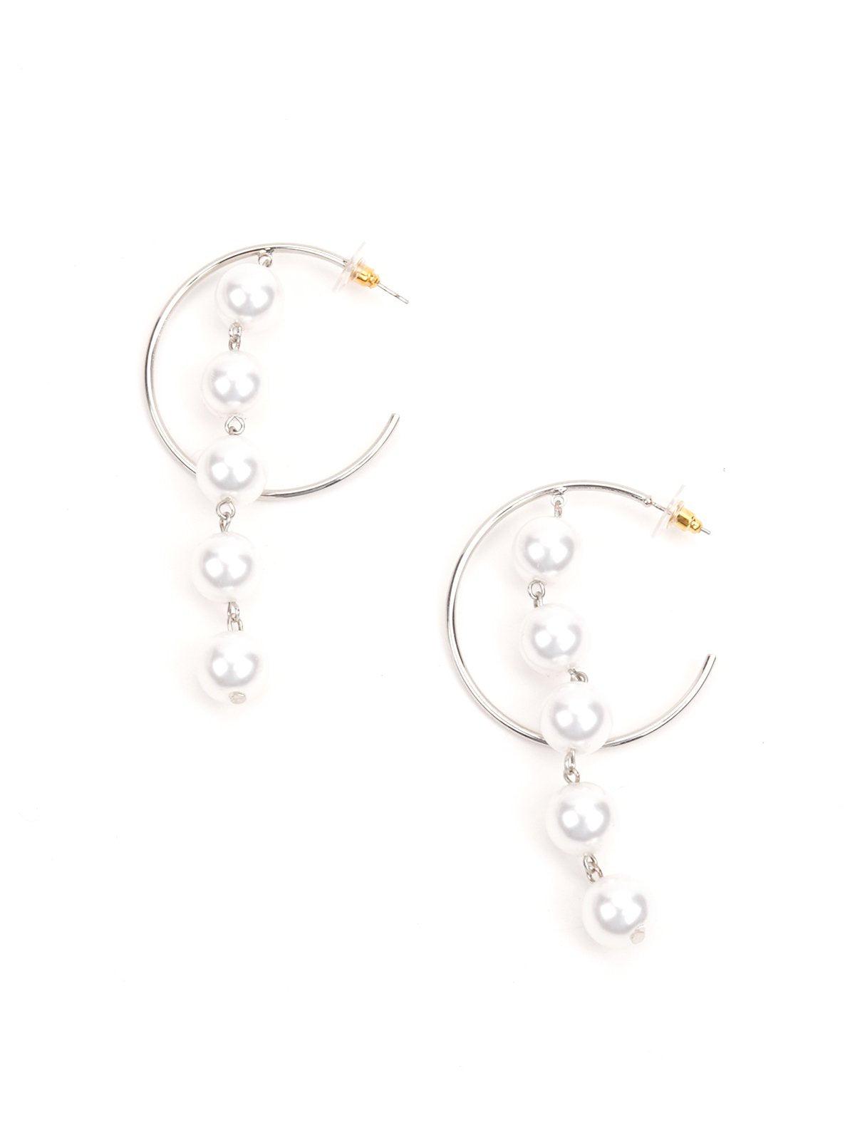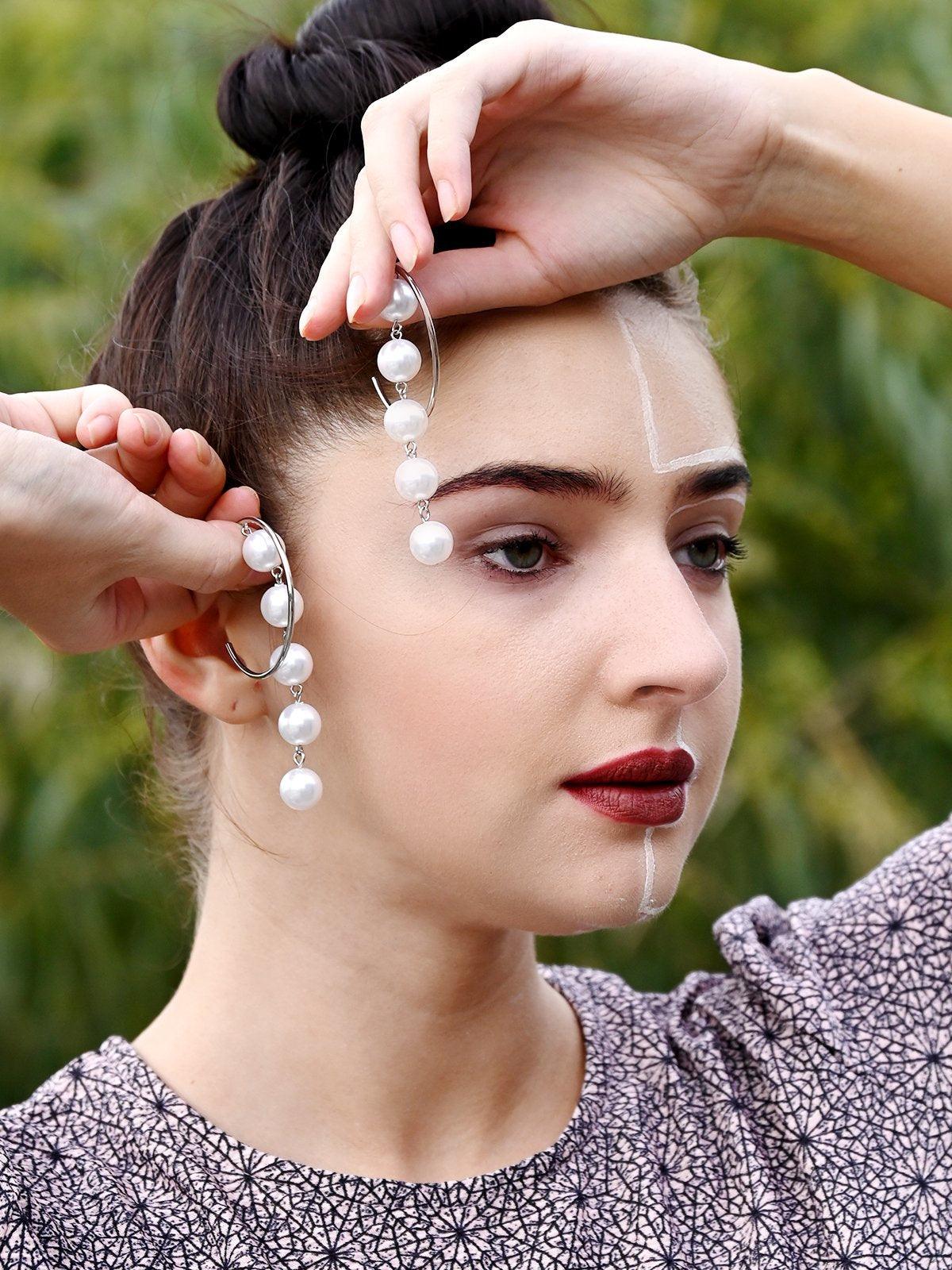 Pearls dropping down the starting of the hoop. Beautiful earrings pair them at any occasion. Comes with push pin closure.