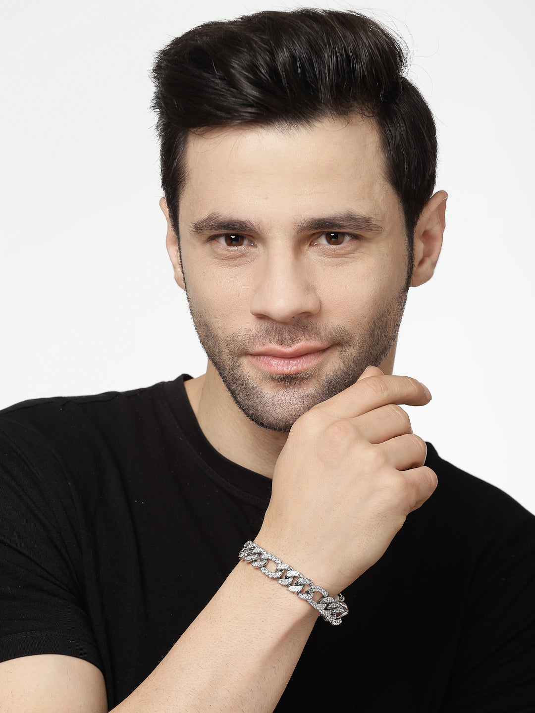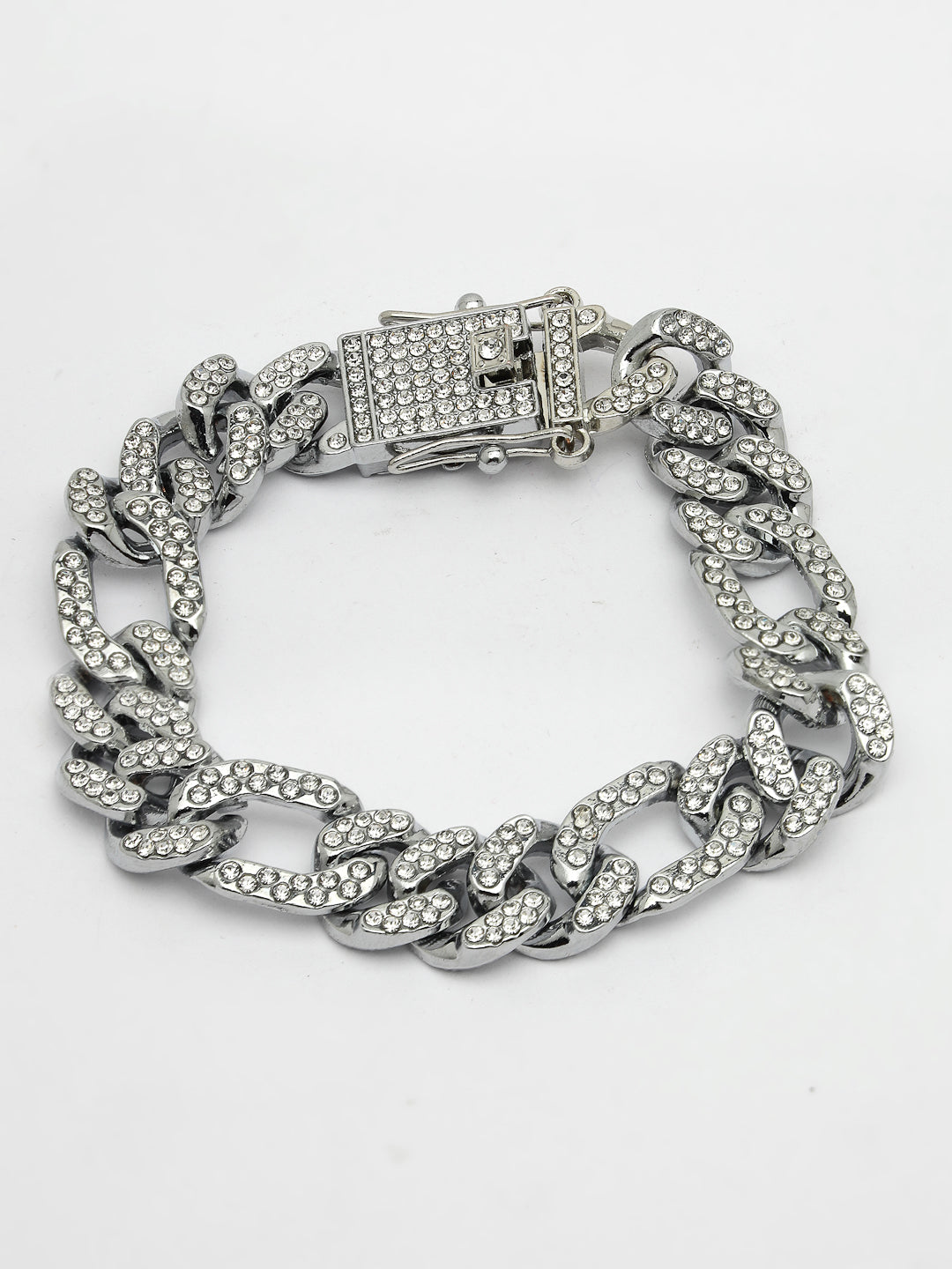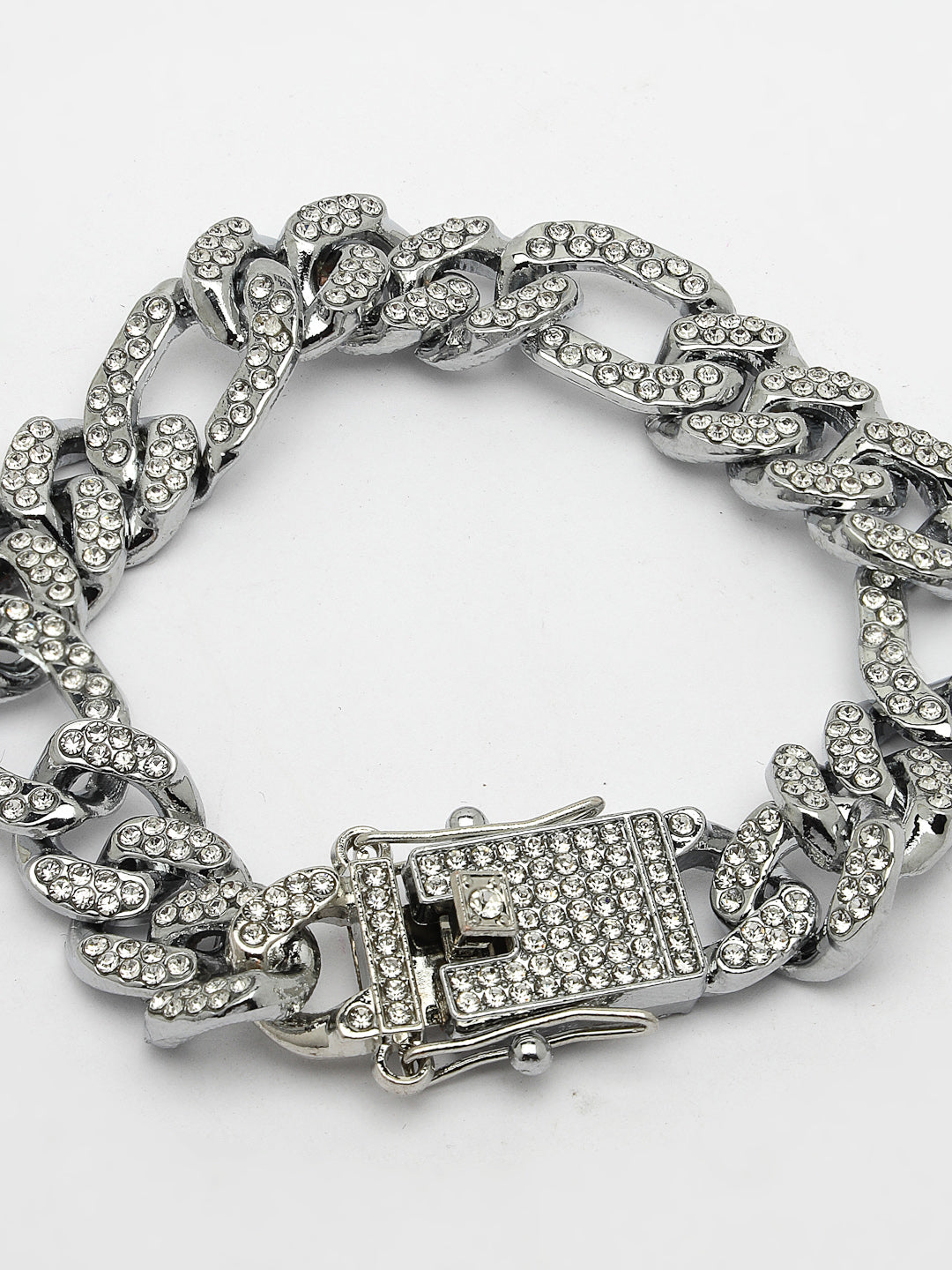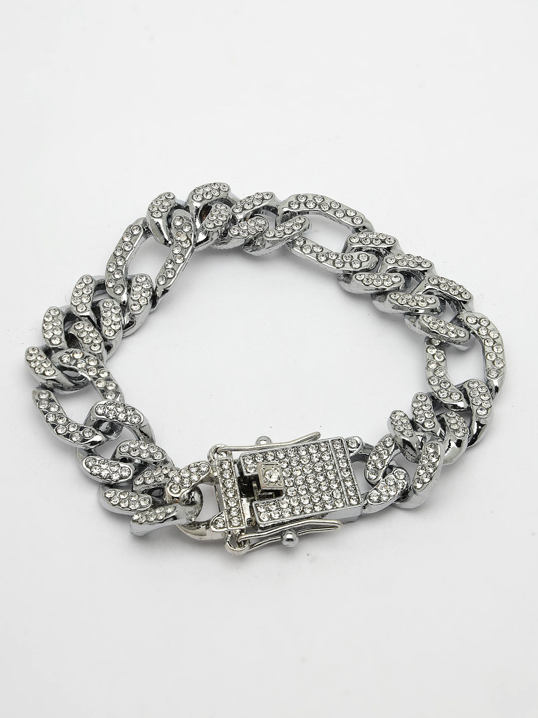 Style Note: Silver-Plated Stainless Steel American Diamond Link Bracelet , secured with a Foldover.Pair it with your favourite t shirt or shirt and flaunt it across the town.