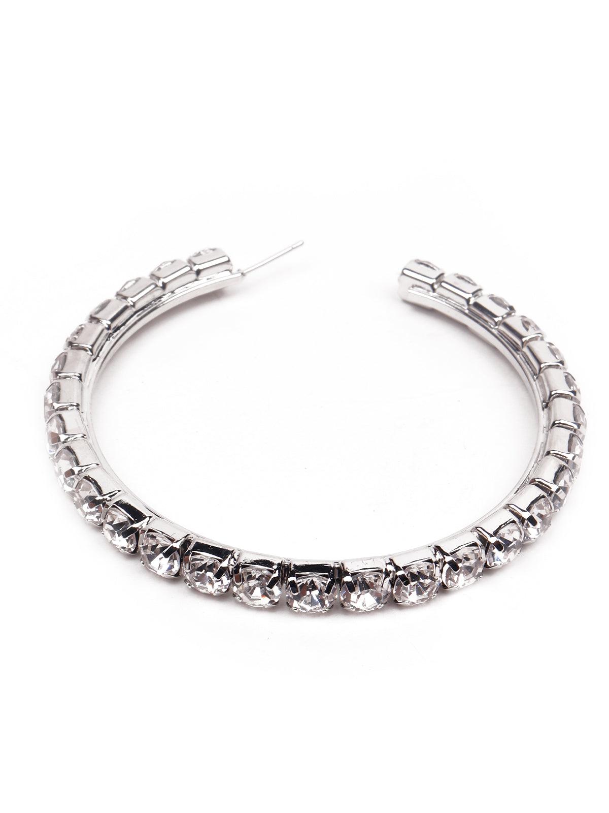 These stunning earrings are embellished with tightly secured crystals and come in silver-tone. They are subtle yet extremely stylish, the shine from the crystals are sure to grab all the attention to your face. The earrings are secured with a push pin closure.