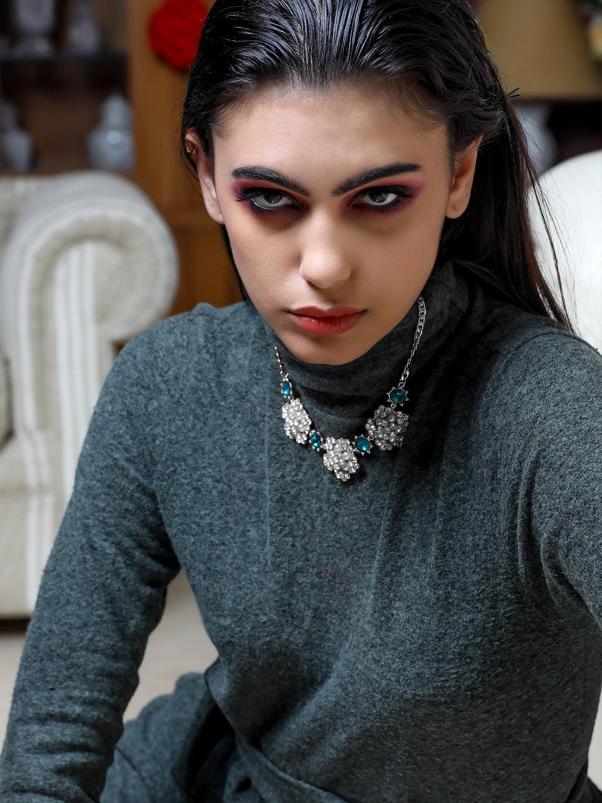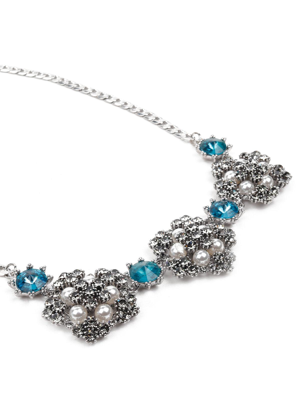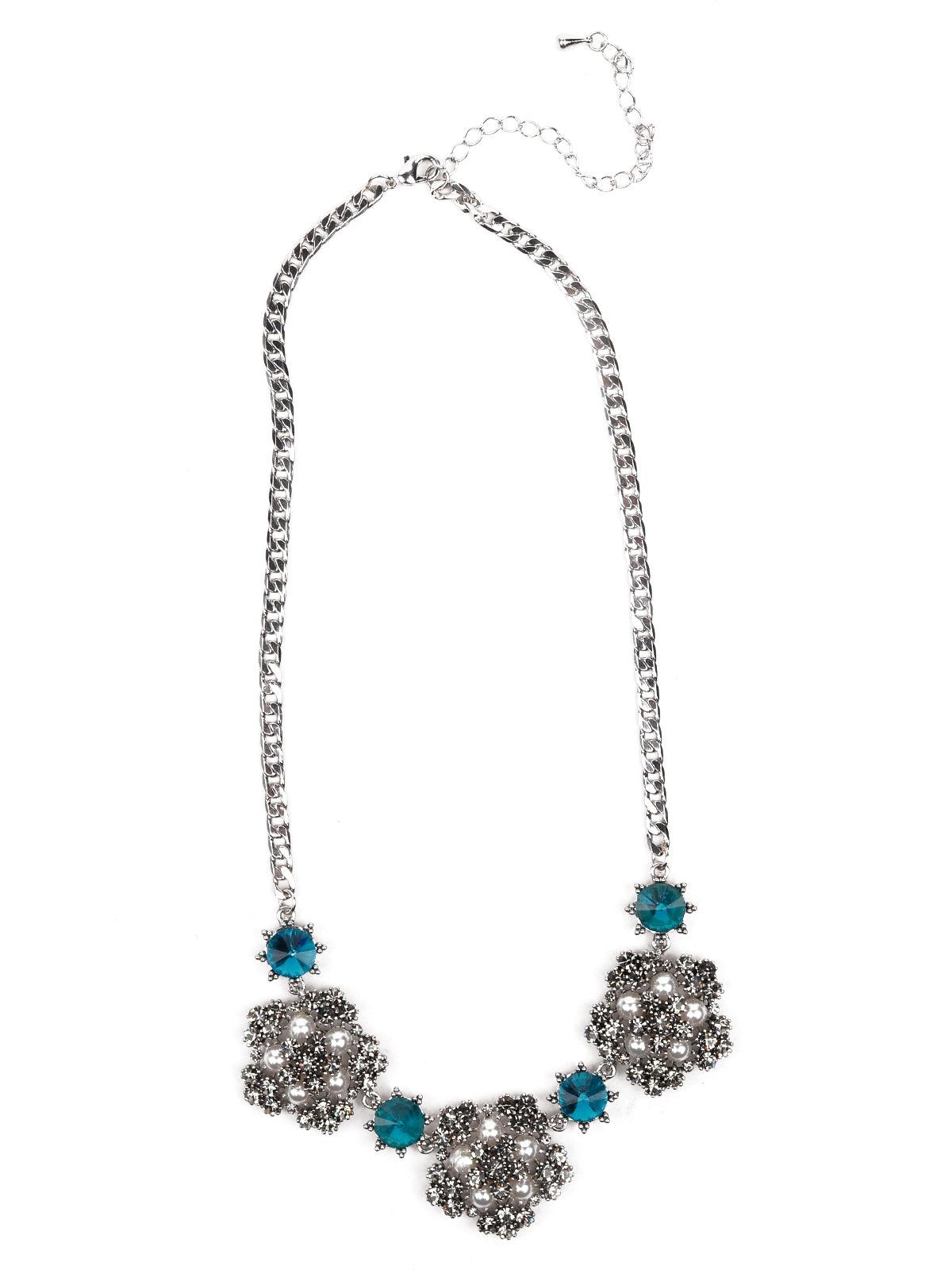 Odette presents this gorgeous necklace in silver-tone, that is embellished with blue crystal stones. The necklace depicts femininity and grace, the pearl adds to the elegance and sophistication, in all the necklace is a win-win! The necklace is secured with a lobster clasp closure fastening.