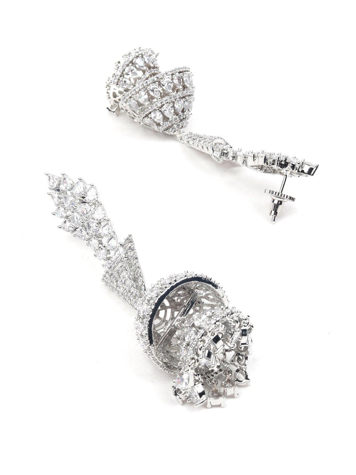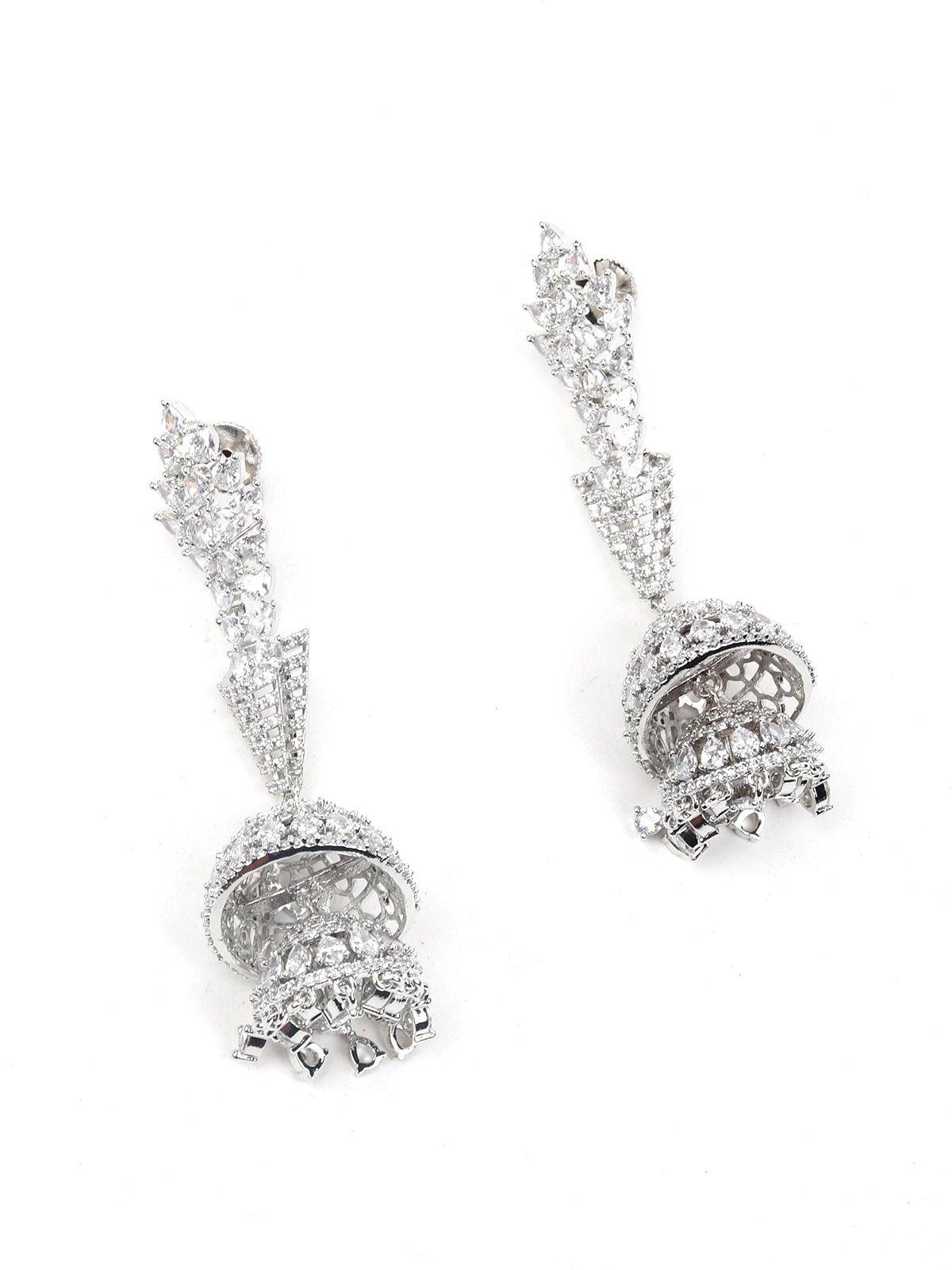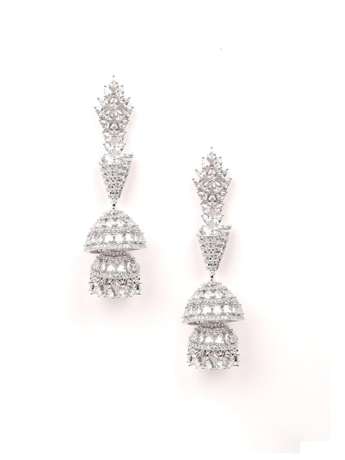 - Featuring these beautiful long jhumkis crafted in a silver-tone from top to bottom in crystal.