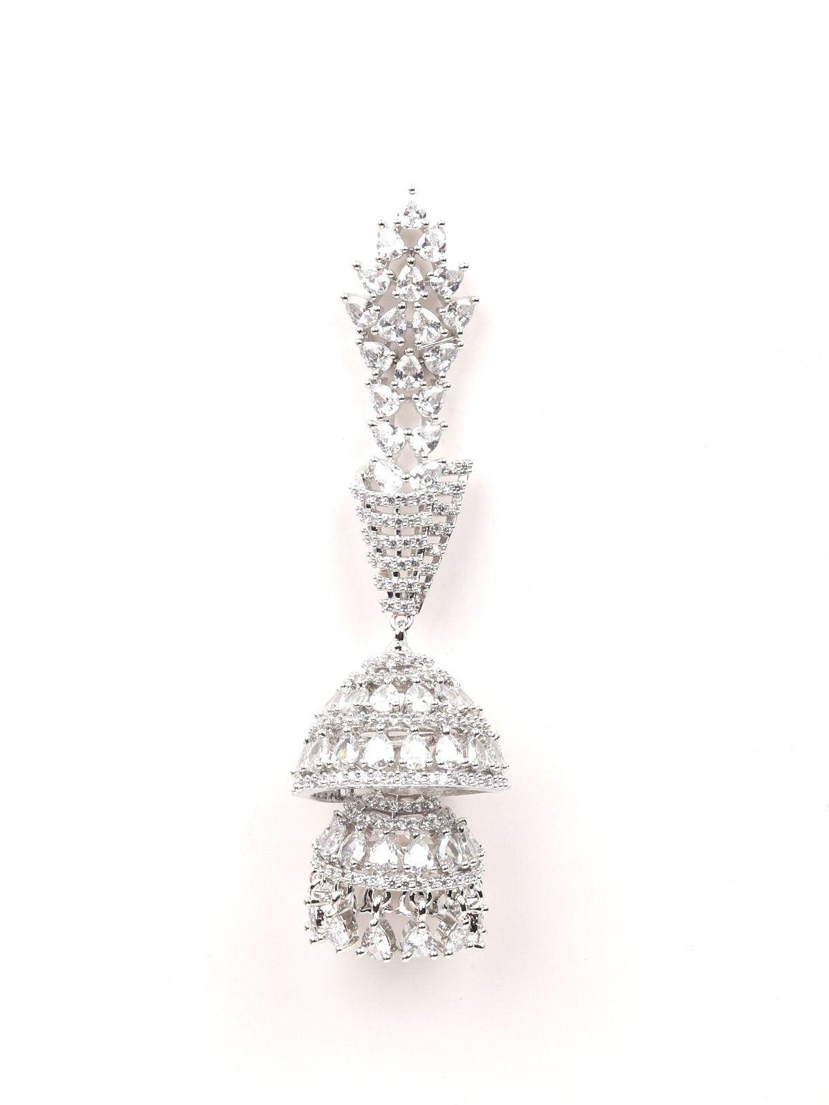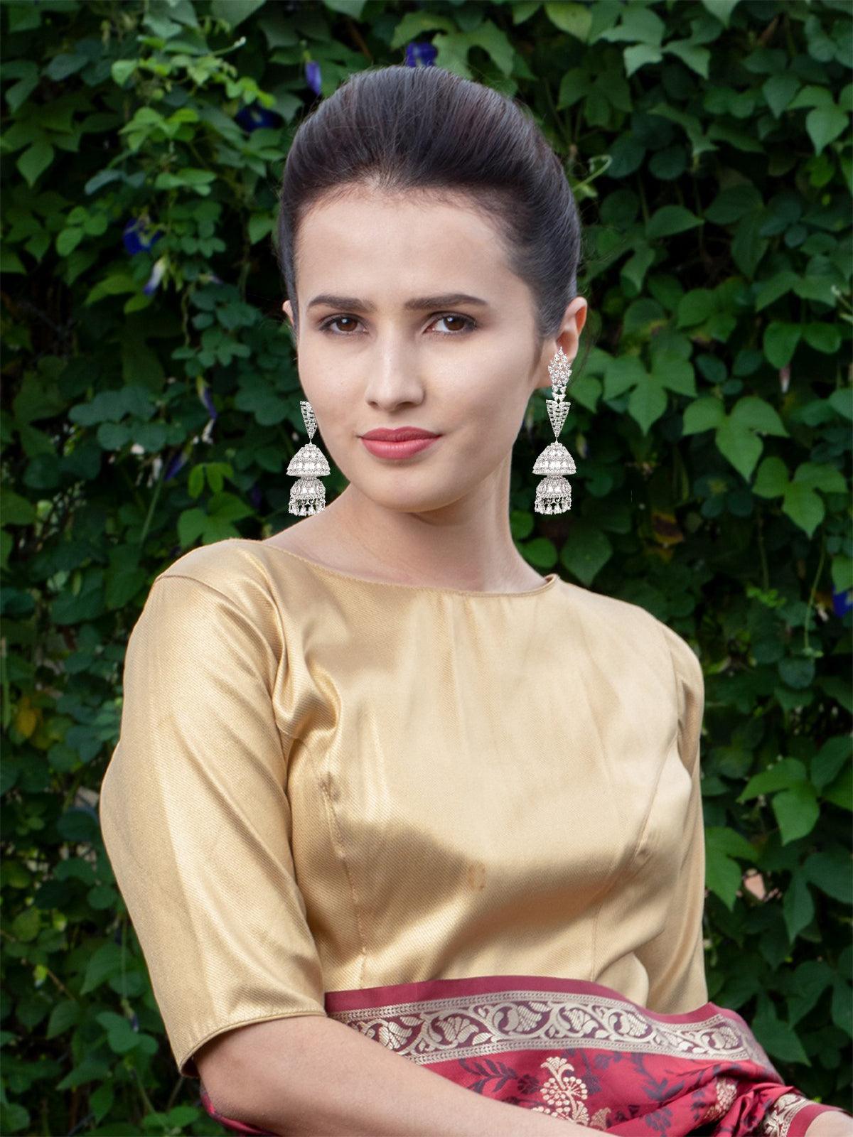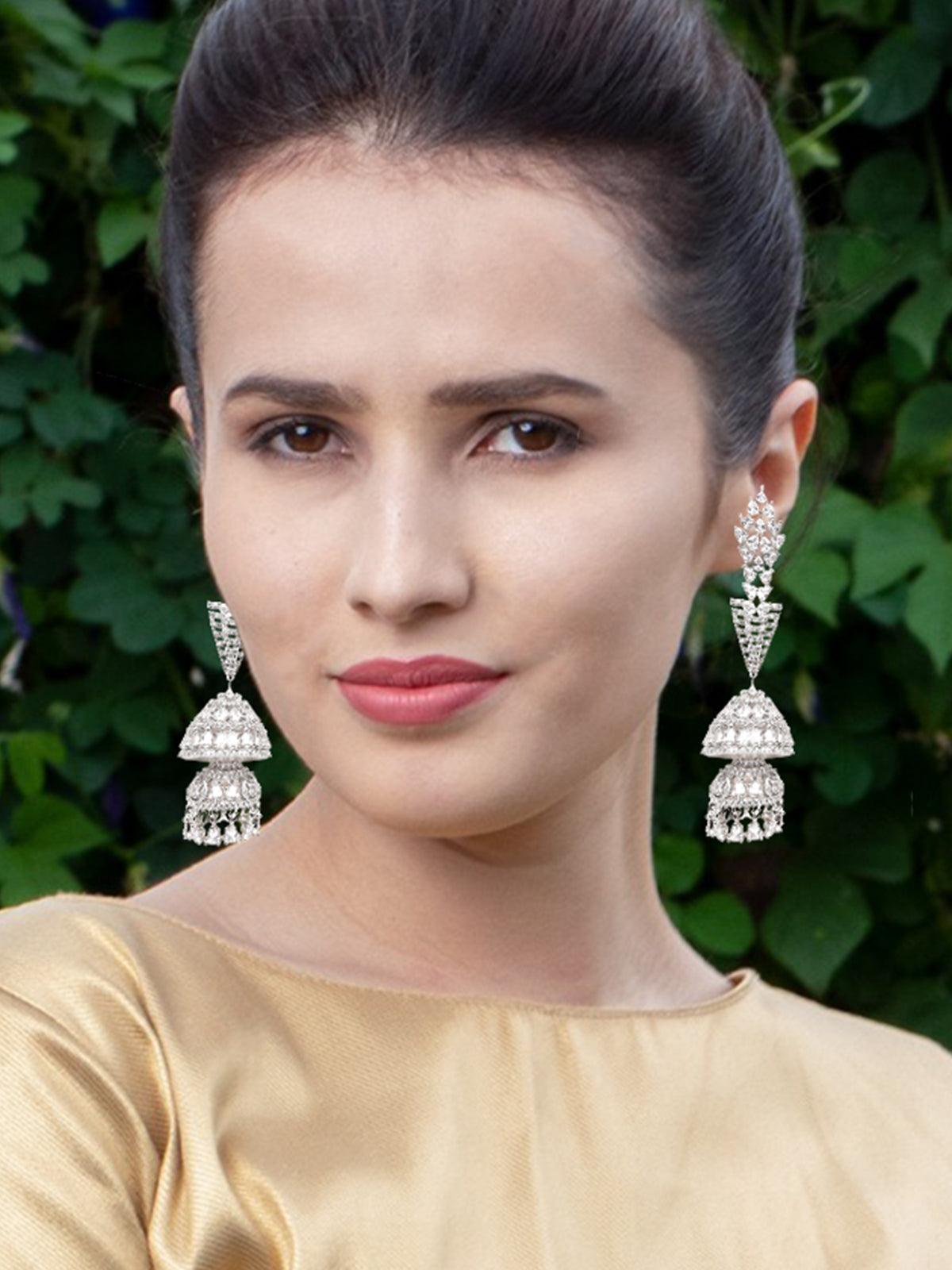 - Featuring these beautiful long jhumkis crafted in a silver-tone from top to bottom in crystal.