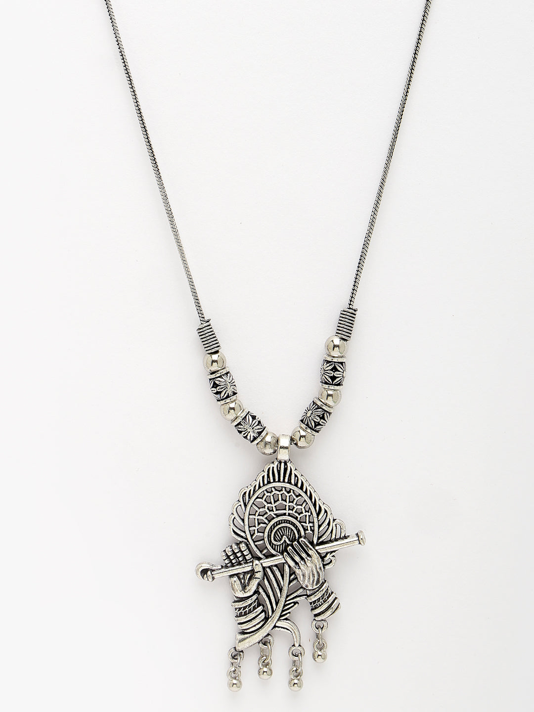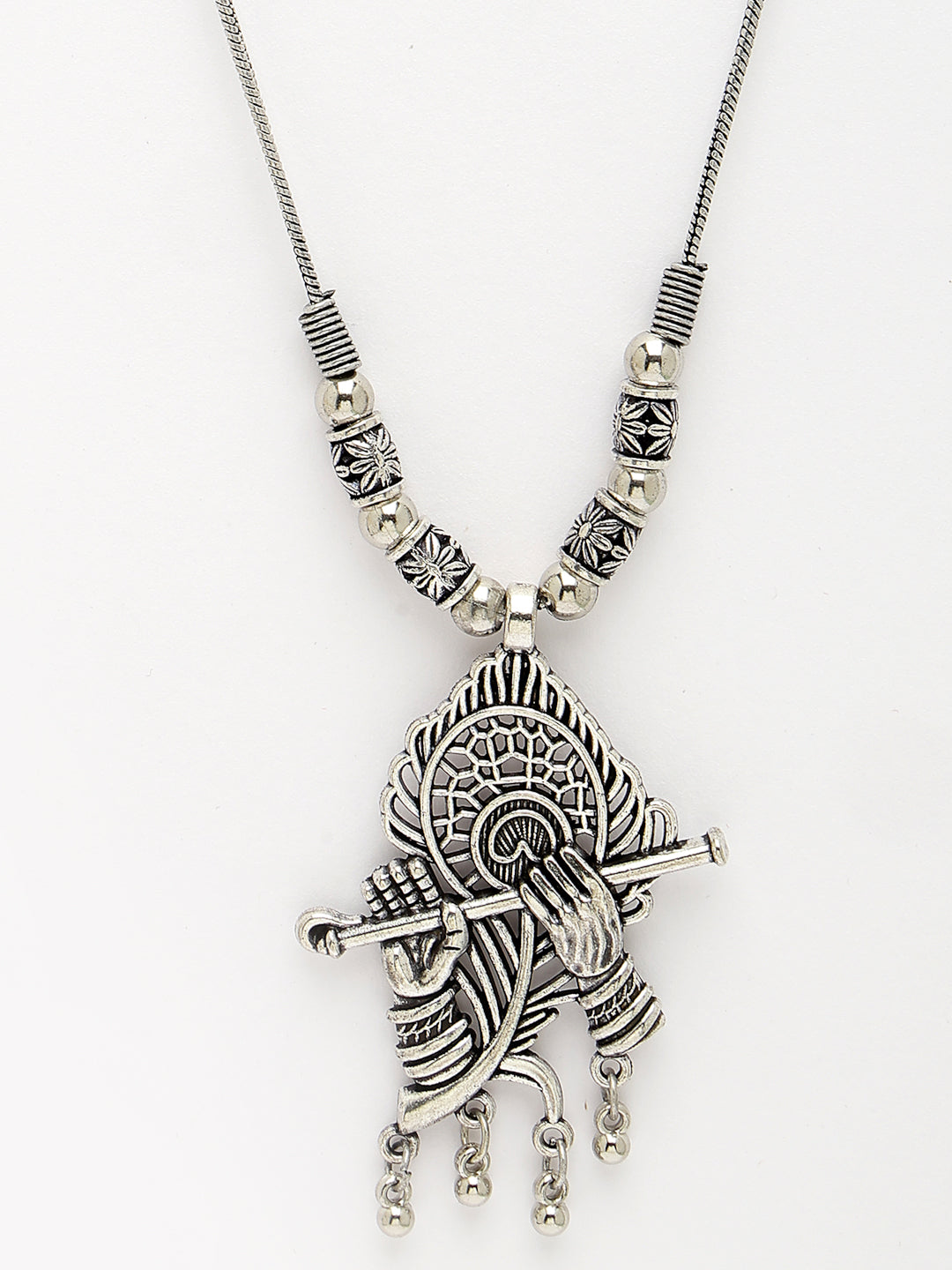 Style Note: The NVR Women Silver-Toned German Silver Oxidised Pendant with Chain is a stylish and traditional accessory that showcases intricate craftsmanship. The oxidized silver-tone finish lends it a vintage and rustic look, perfect for ethnic and cultural occasions. This pendant with chain can be paired elegantly with ethnic wear like sarees or kurtis, adding a touch of traditional charm to your ensemble. Ideal for women who appreciate artisanal jewelry with a cultural flair, it brings a timeless elegance to your wardrobe, making it a versatile and cherished piece in your collection.