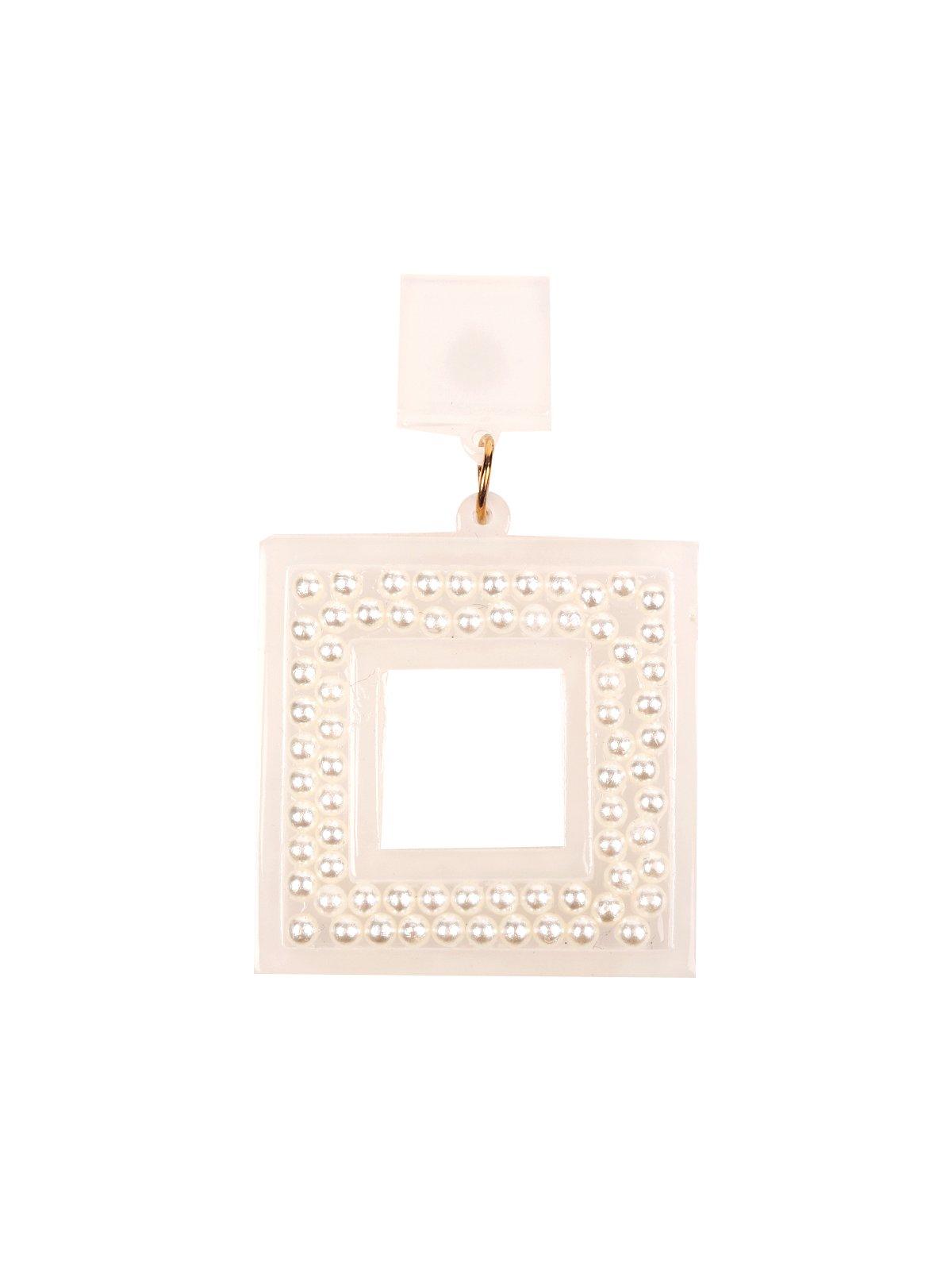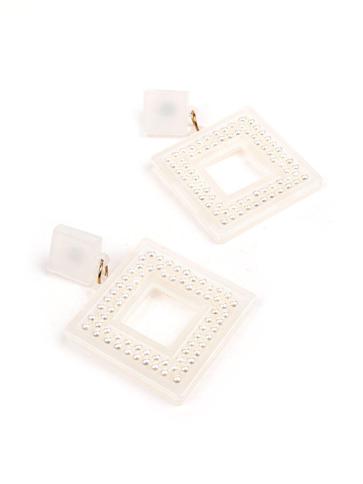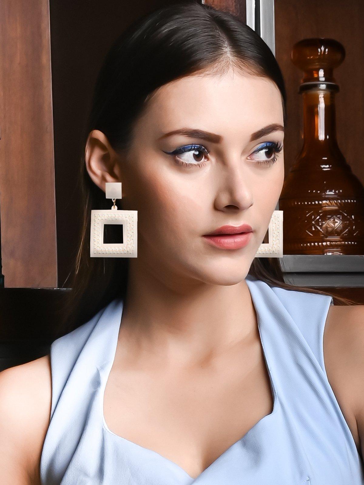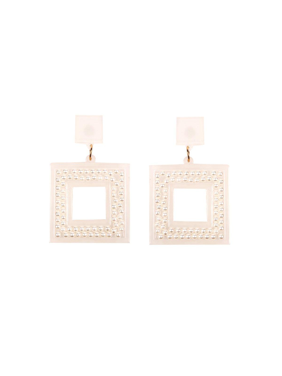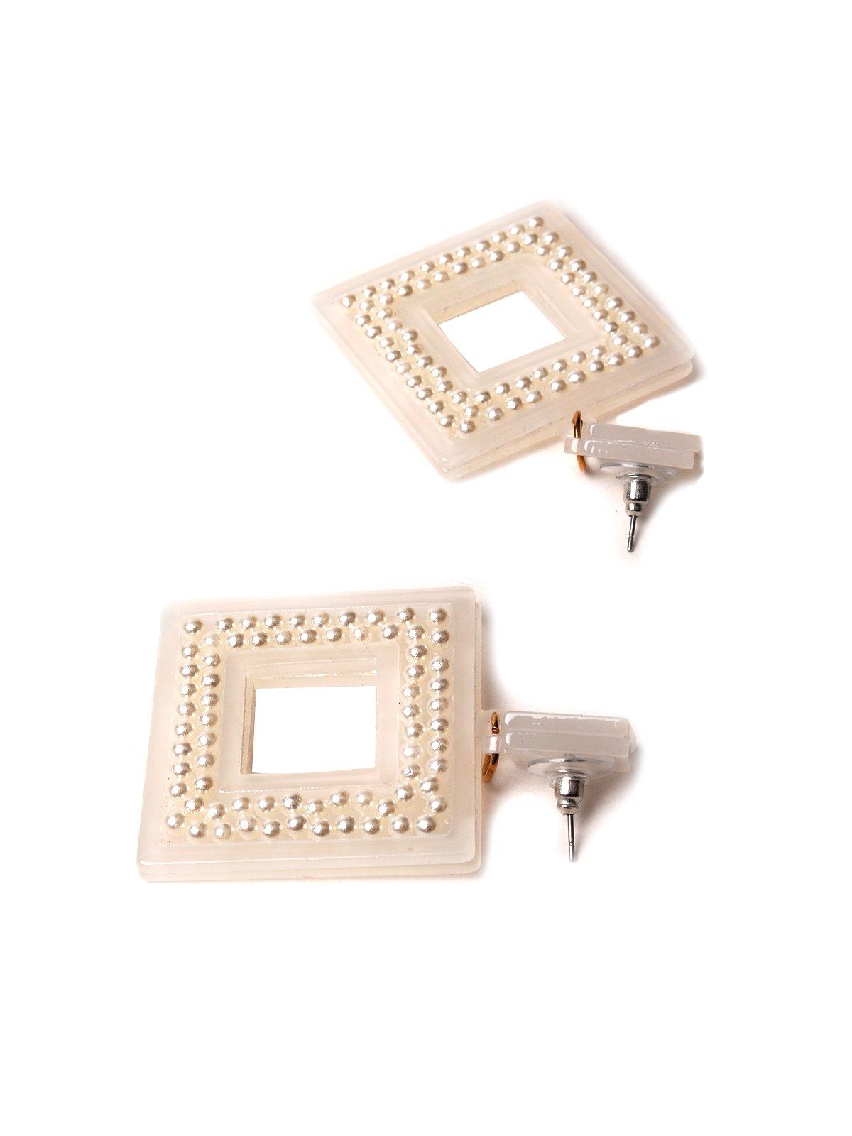 - Odette presents these stunning square-shaped earrings that are embellished with white tiny beads.