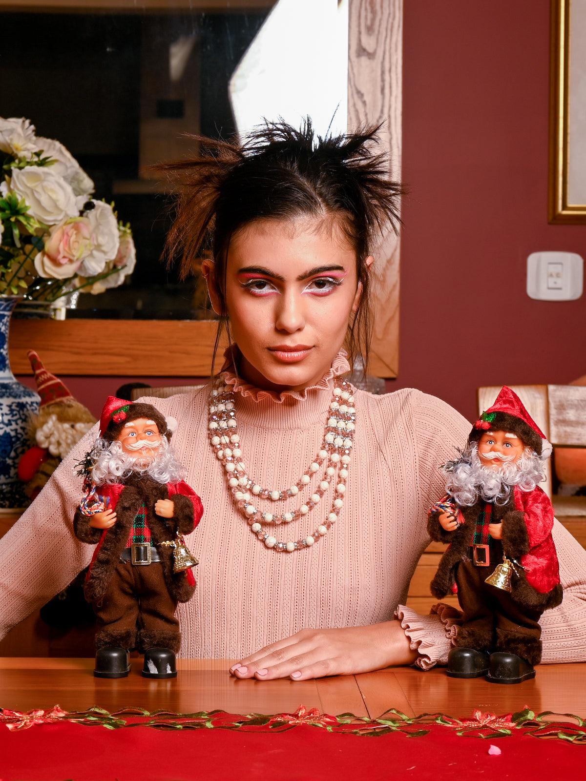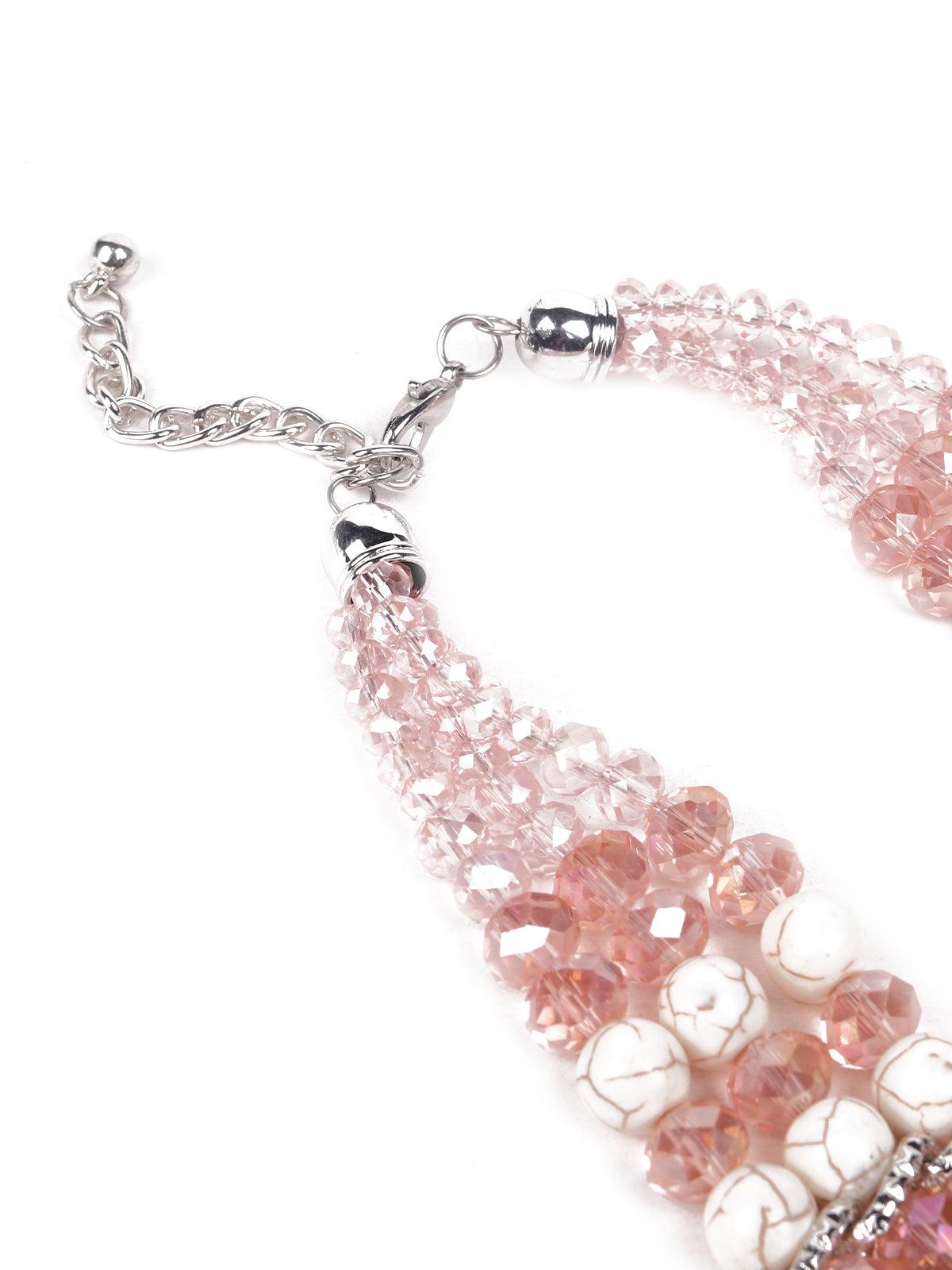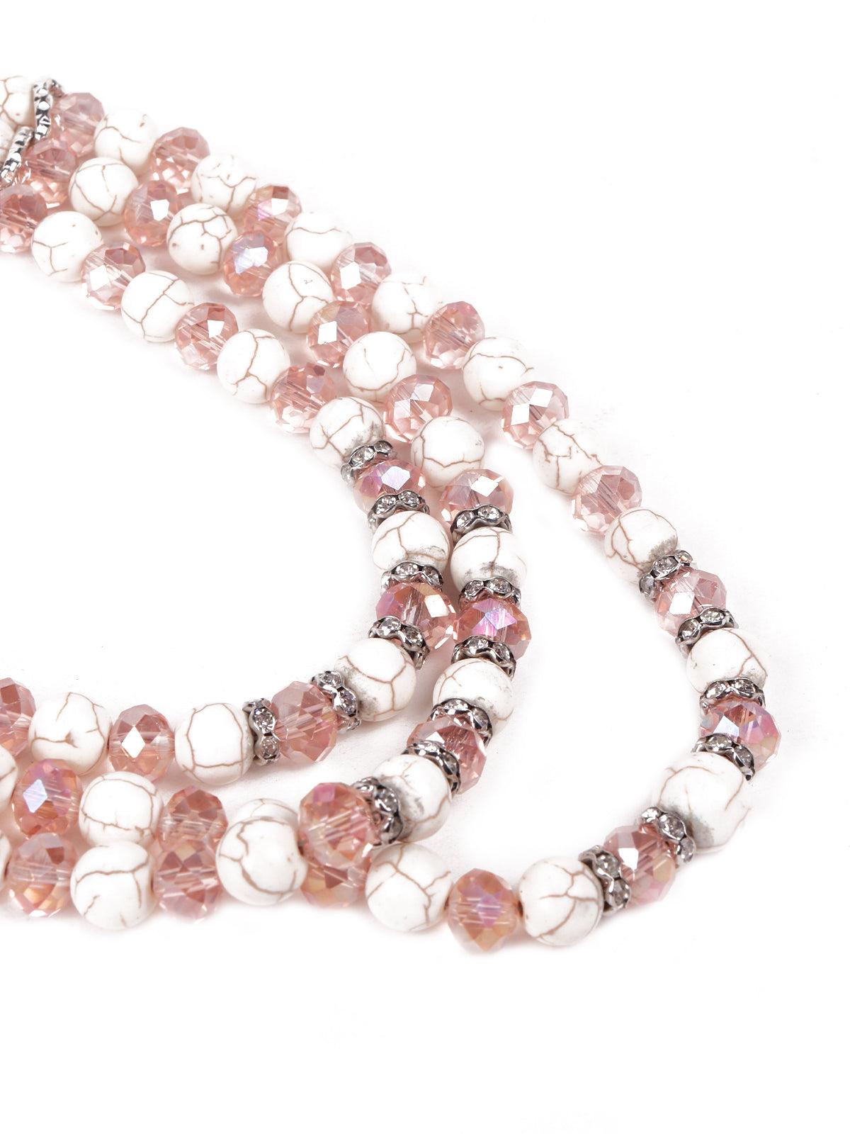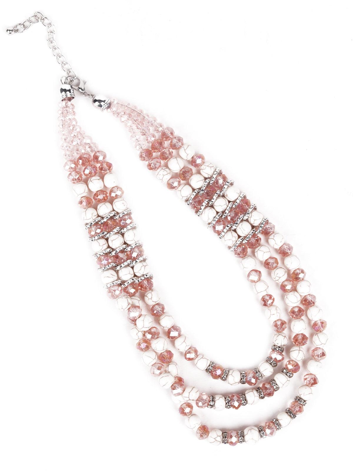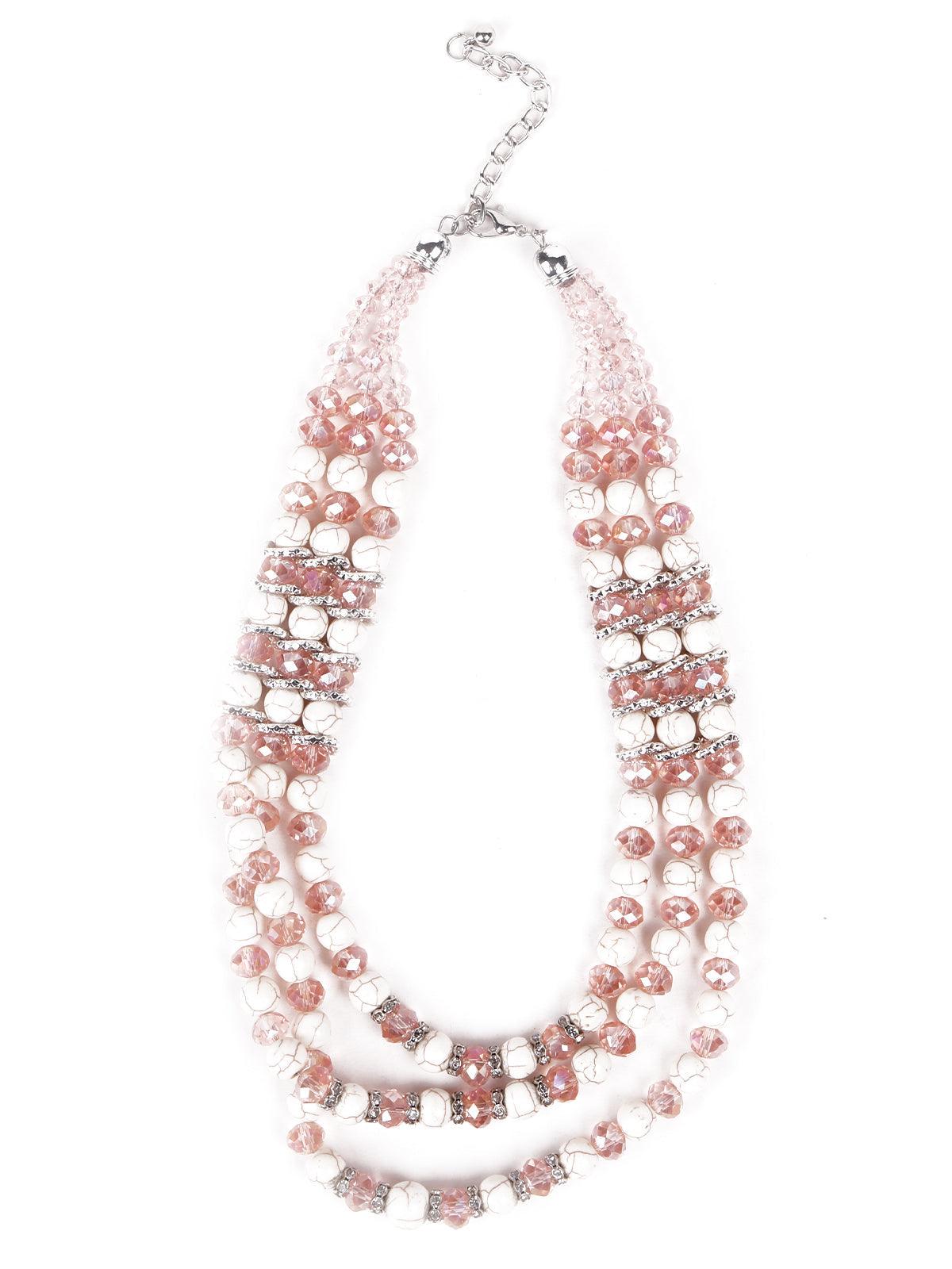 Odette presents this gorgeous necklace embellished with artificial peach and white beads. The necklace has a layered structured detailing. The necklace is embellished with a lobster clasp closure fastening.