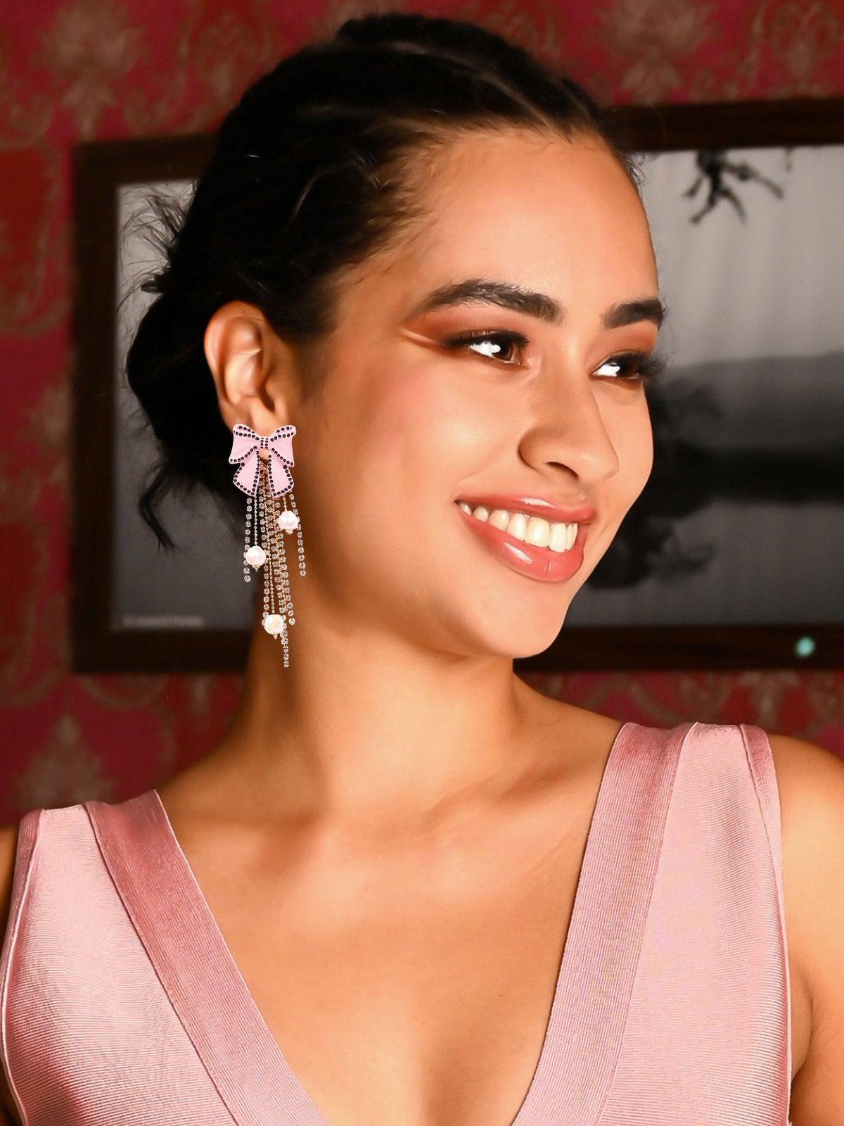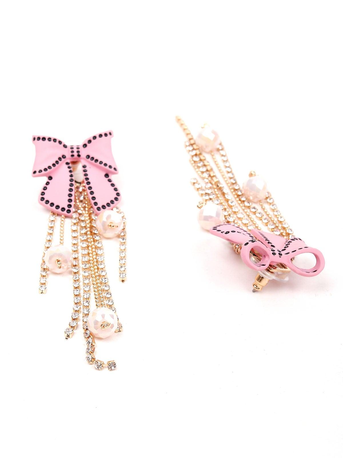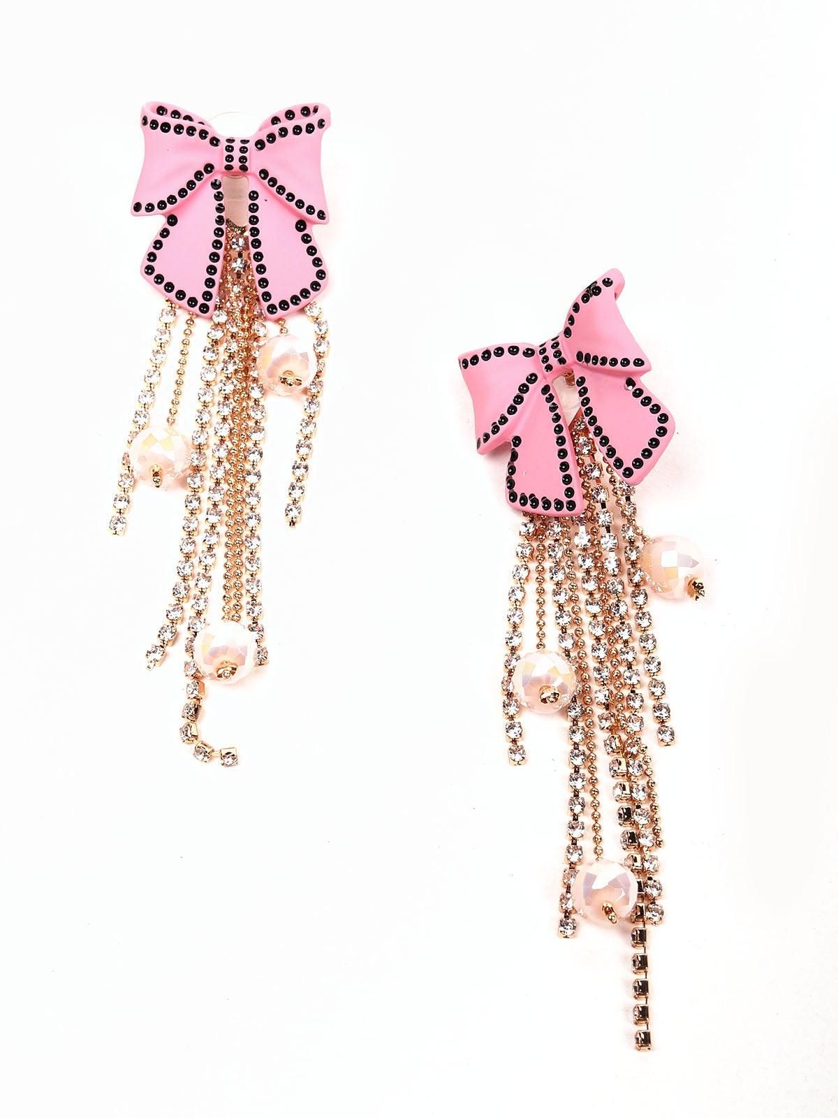 - Talking about cuteness personified, these cute bow-shaped pink earrings look stunning as ever. They have stunning beaded tassels hanging from them.