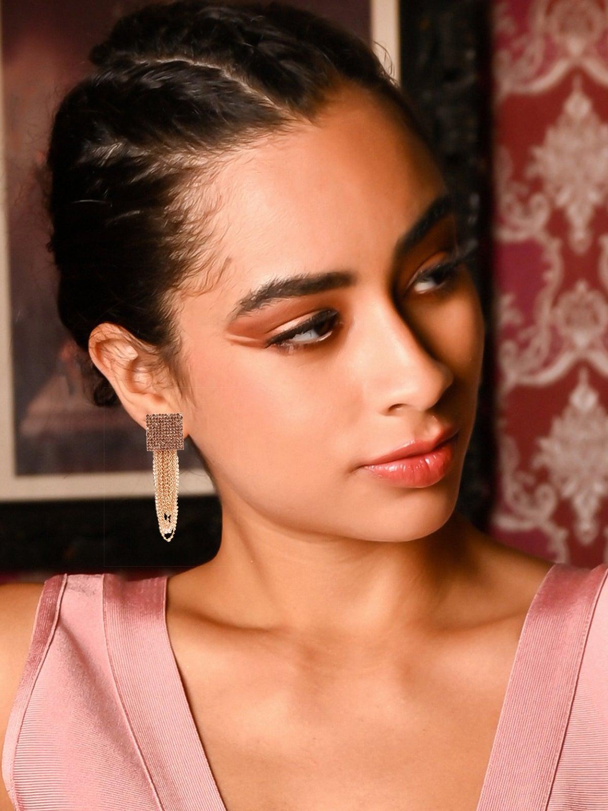 - Odette presents these stunning fully studded gold earrings that have a multiple loop design of gold chains.