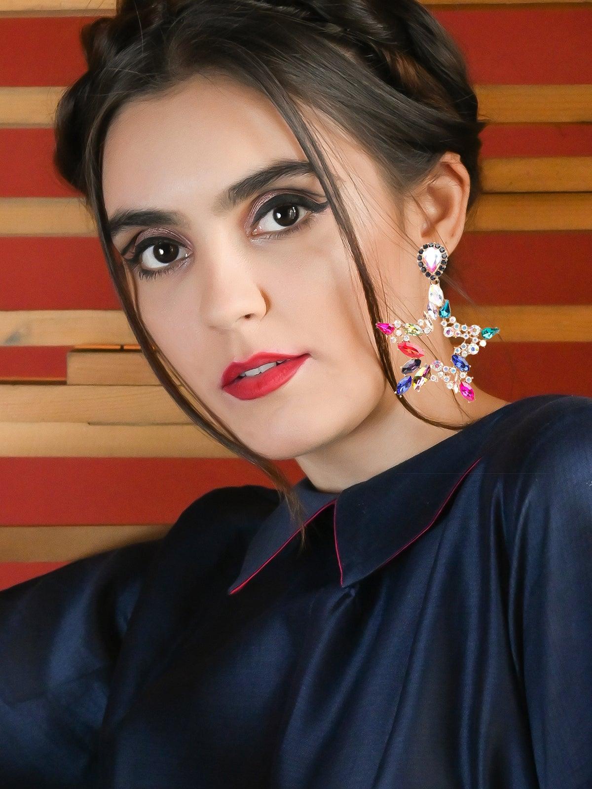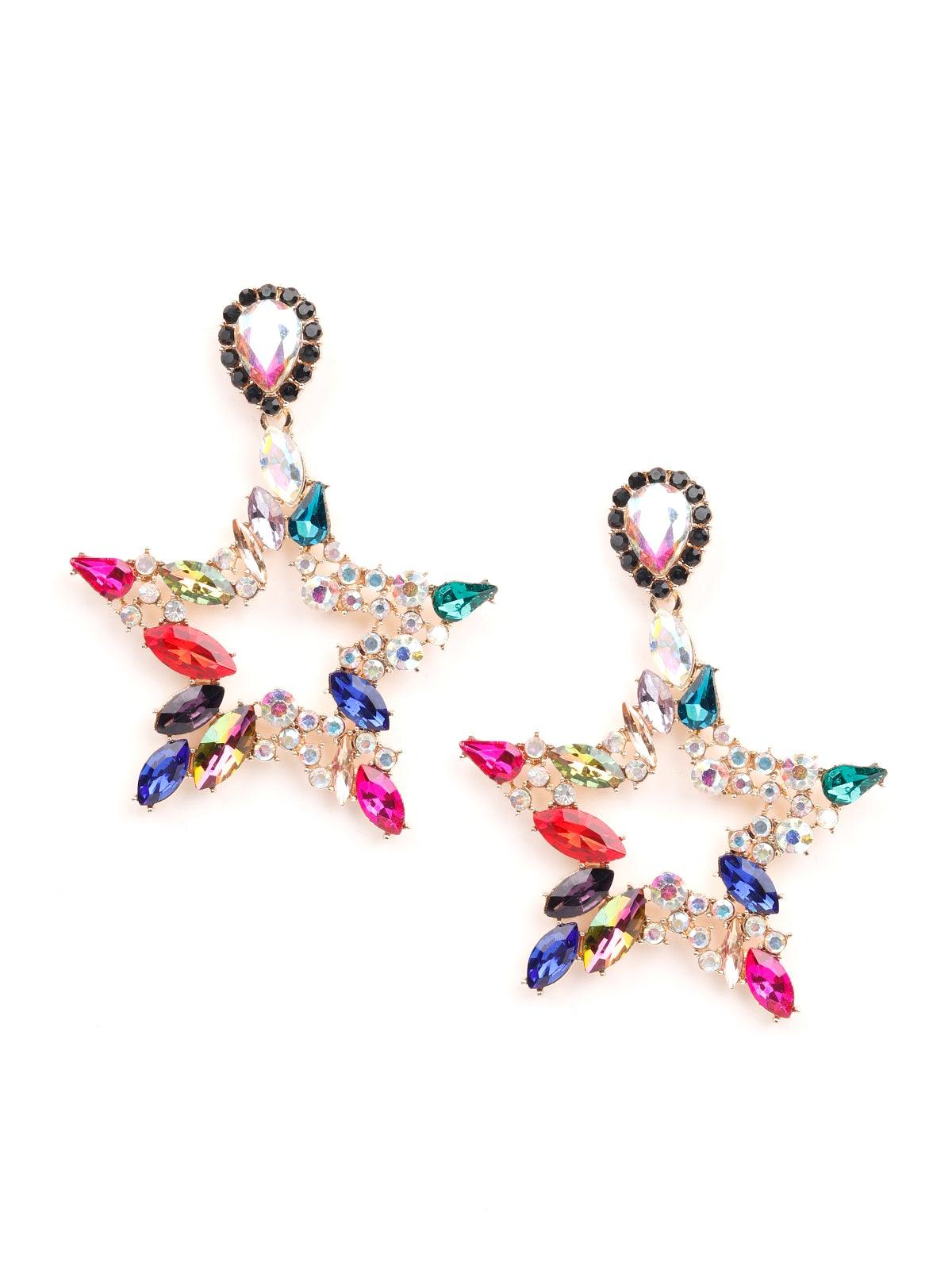 - Odette presents this beautiful statement star shape earrings for the star that you are embellished with gemstones and crystals in gold-tone the earring is secured with a push pin closure
