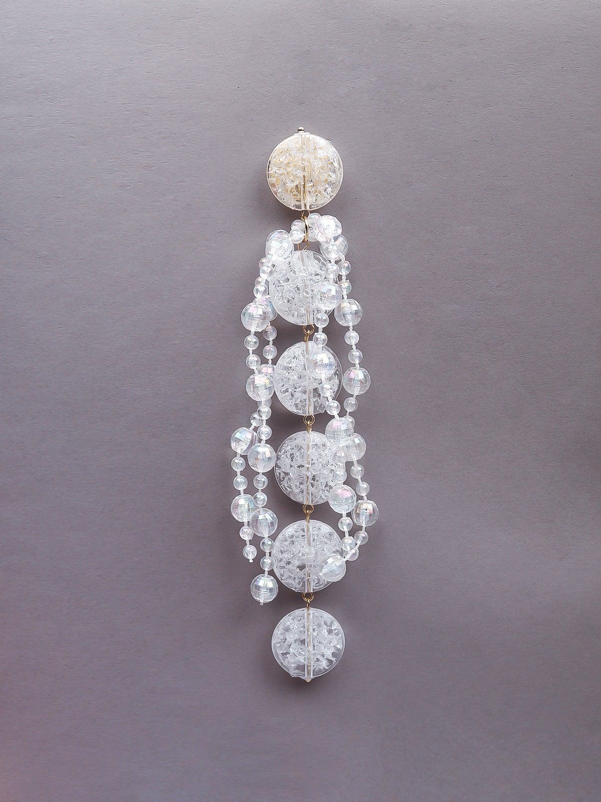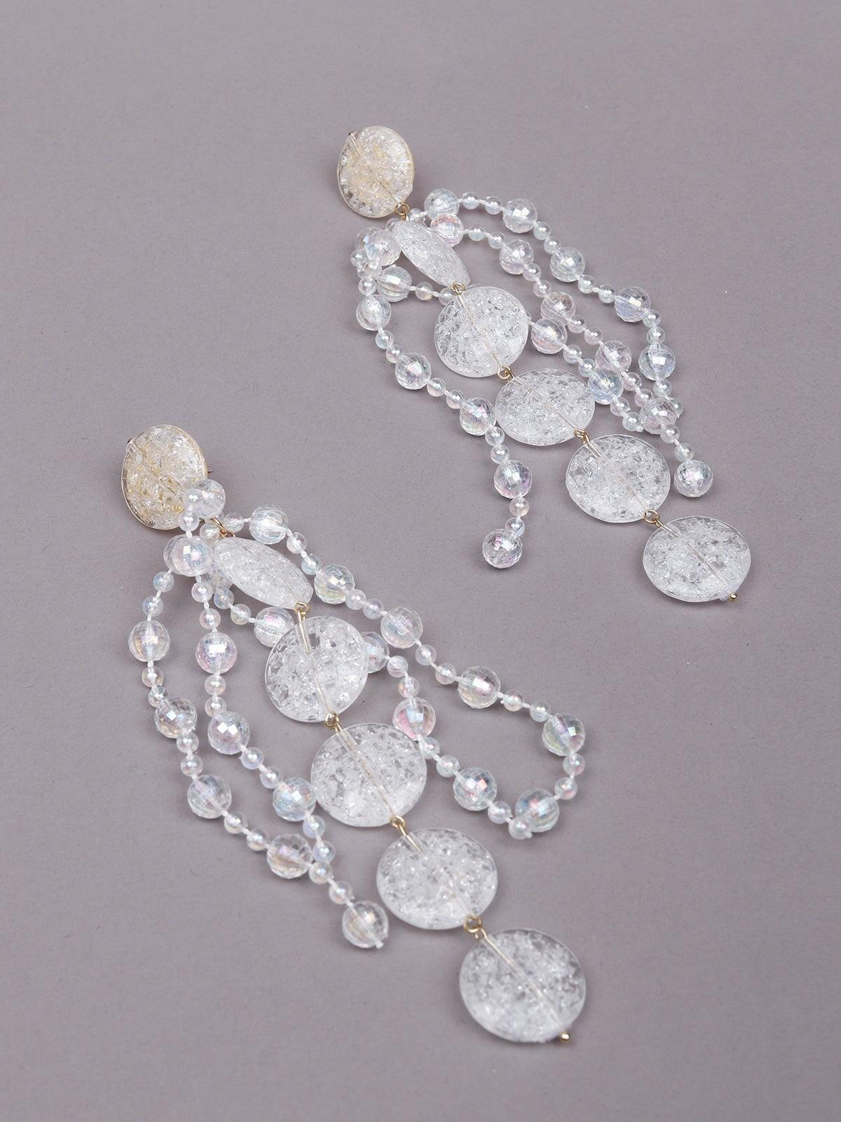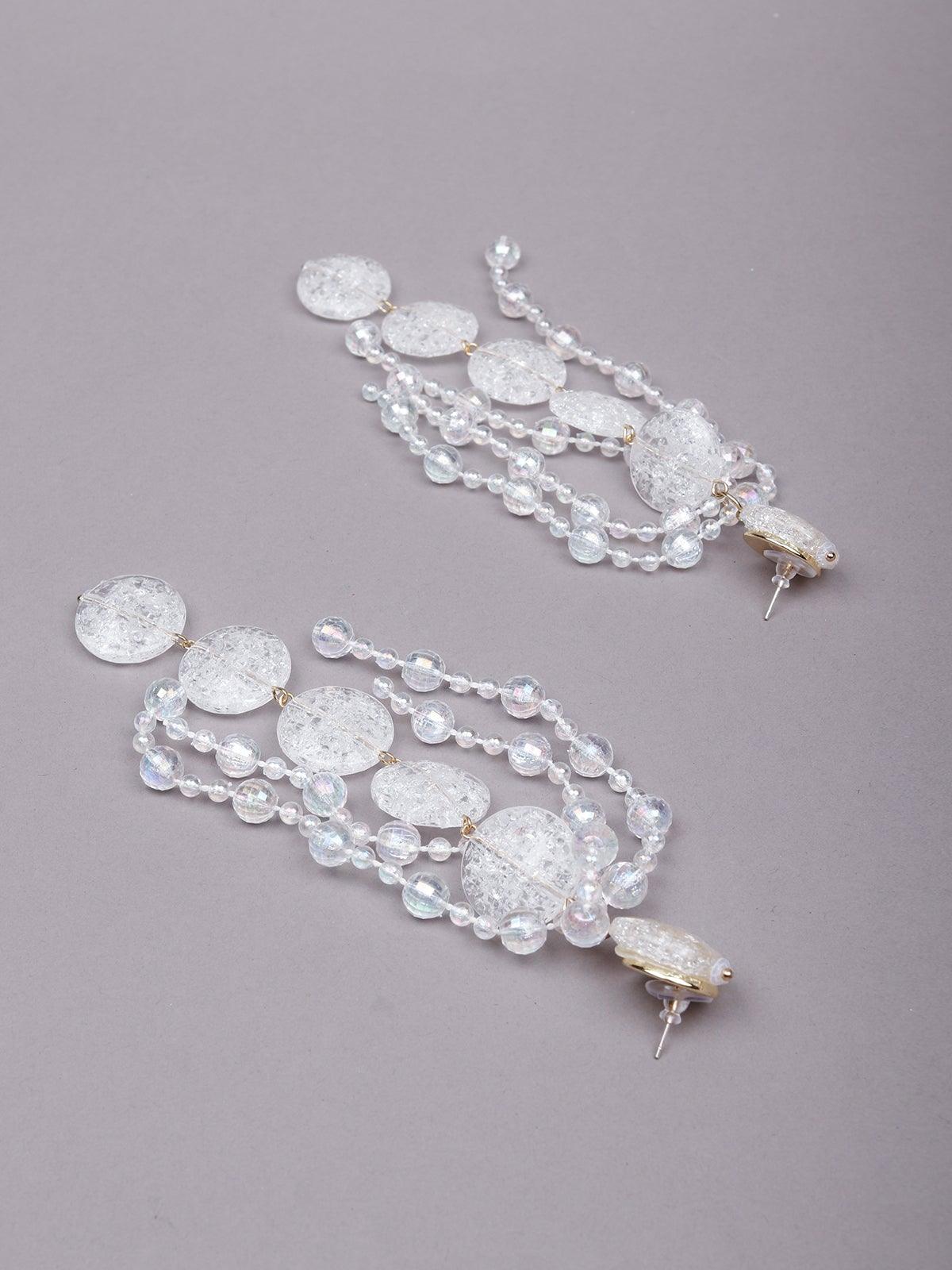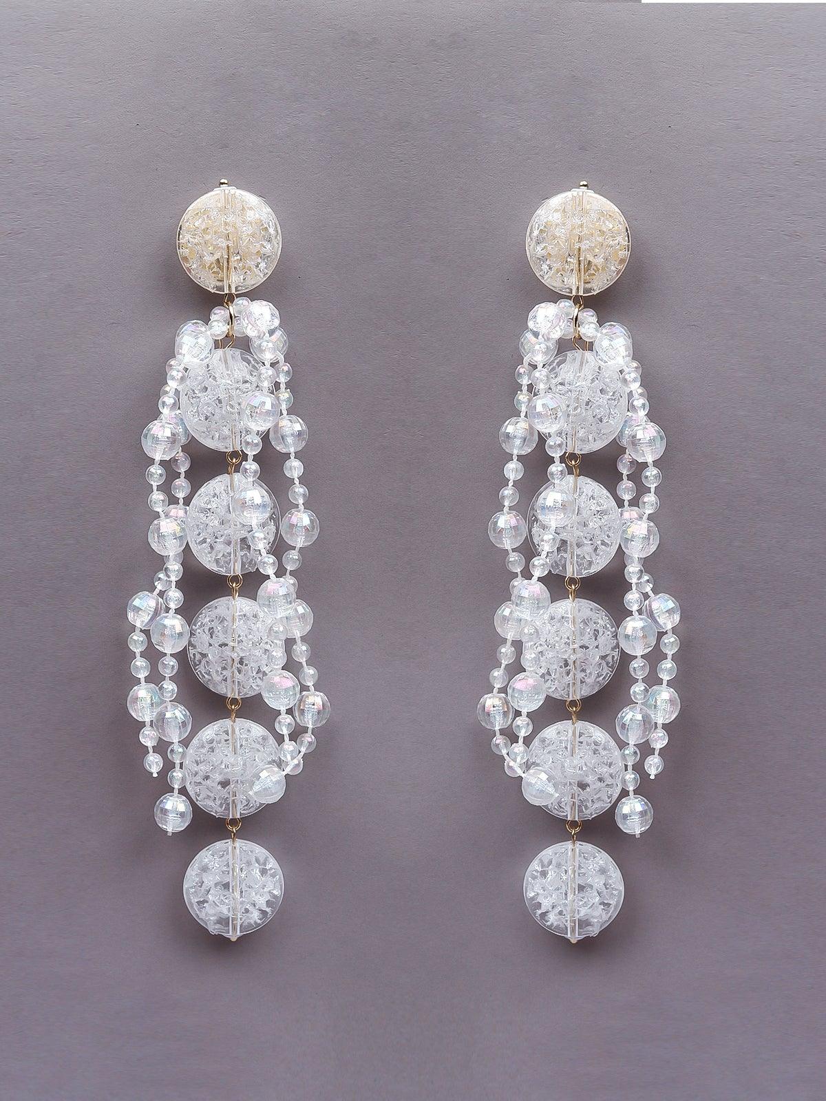 - An easy and certain way to accessorize your outfit in a very trendy and stylish way is by wearing these white beaded statement glam earrings. You can get yourself earring these earrings for a very sparkling and remarkable style.