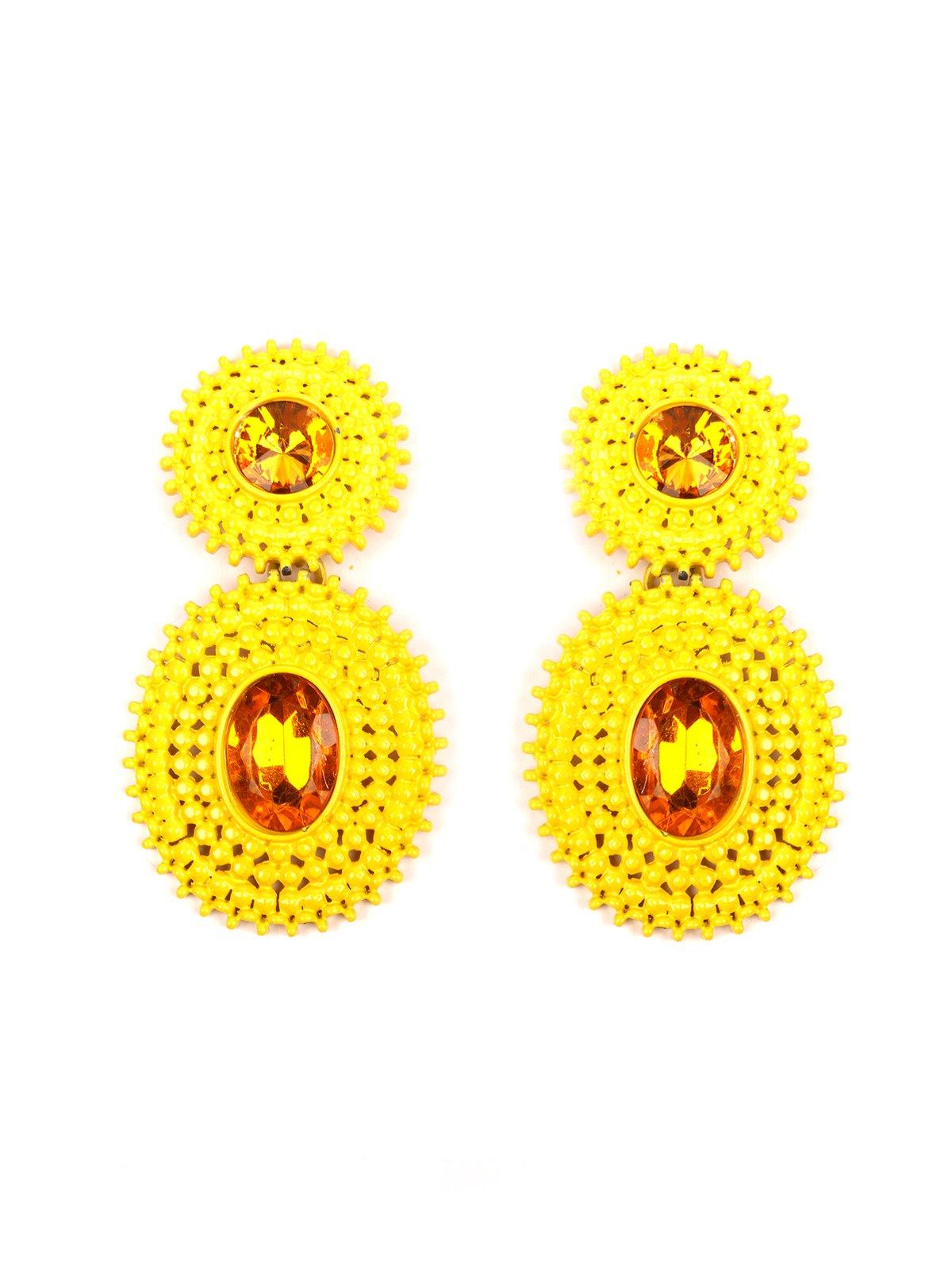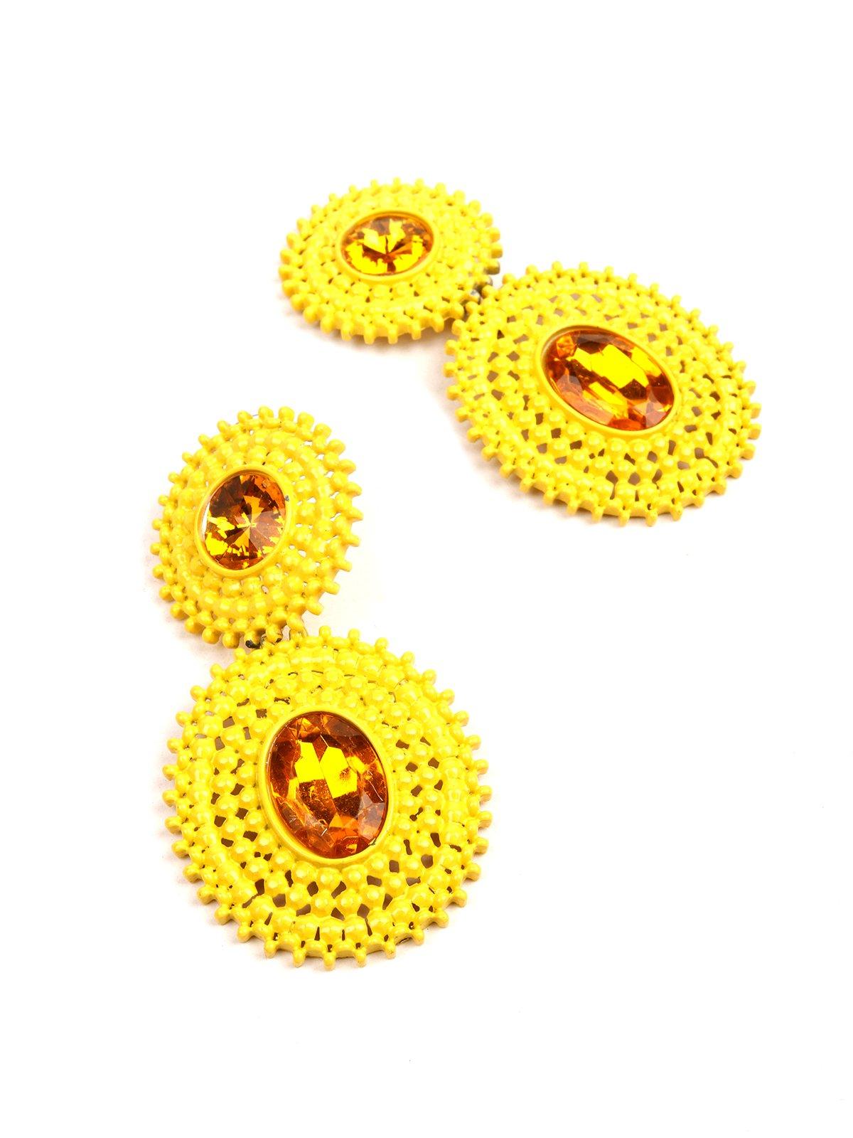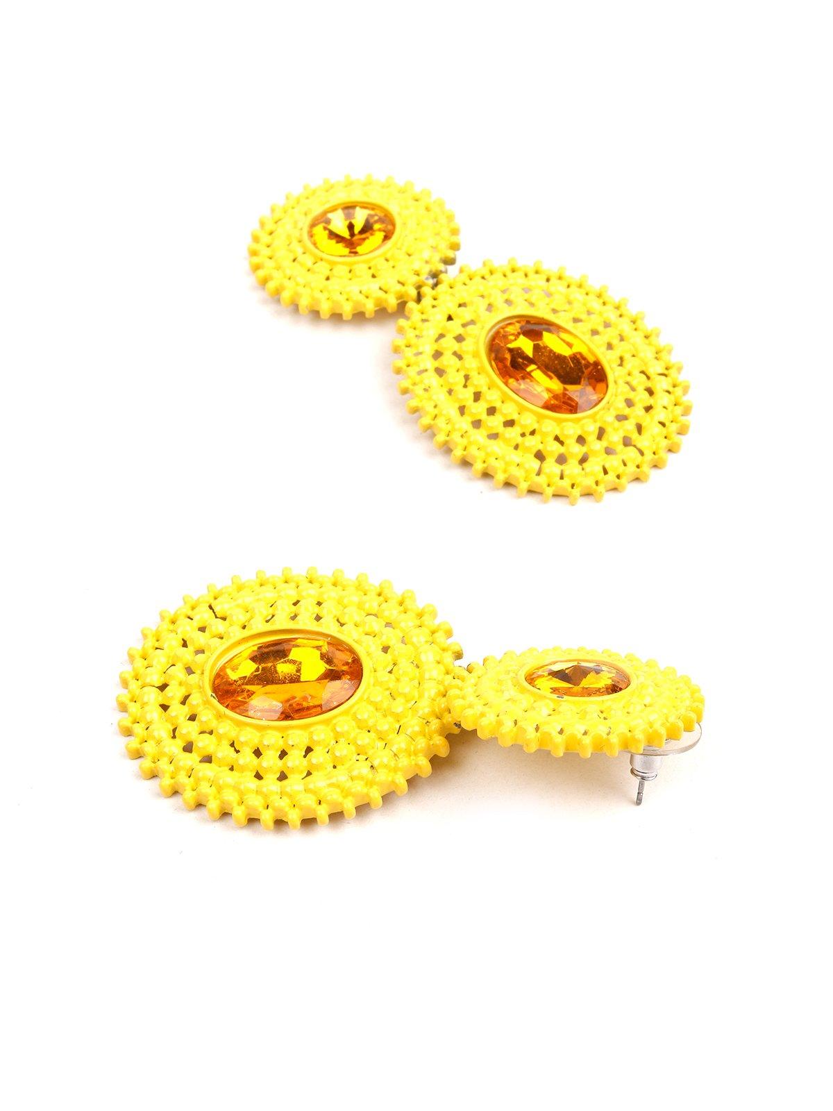 - Be your illuminating best as you adorn yourself with these double-hoop yellow statements earrings by Odette on your festivities.