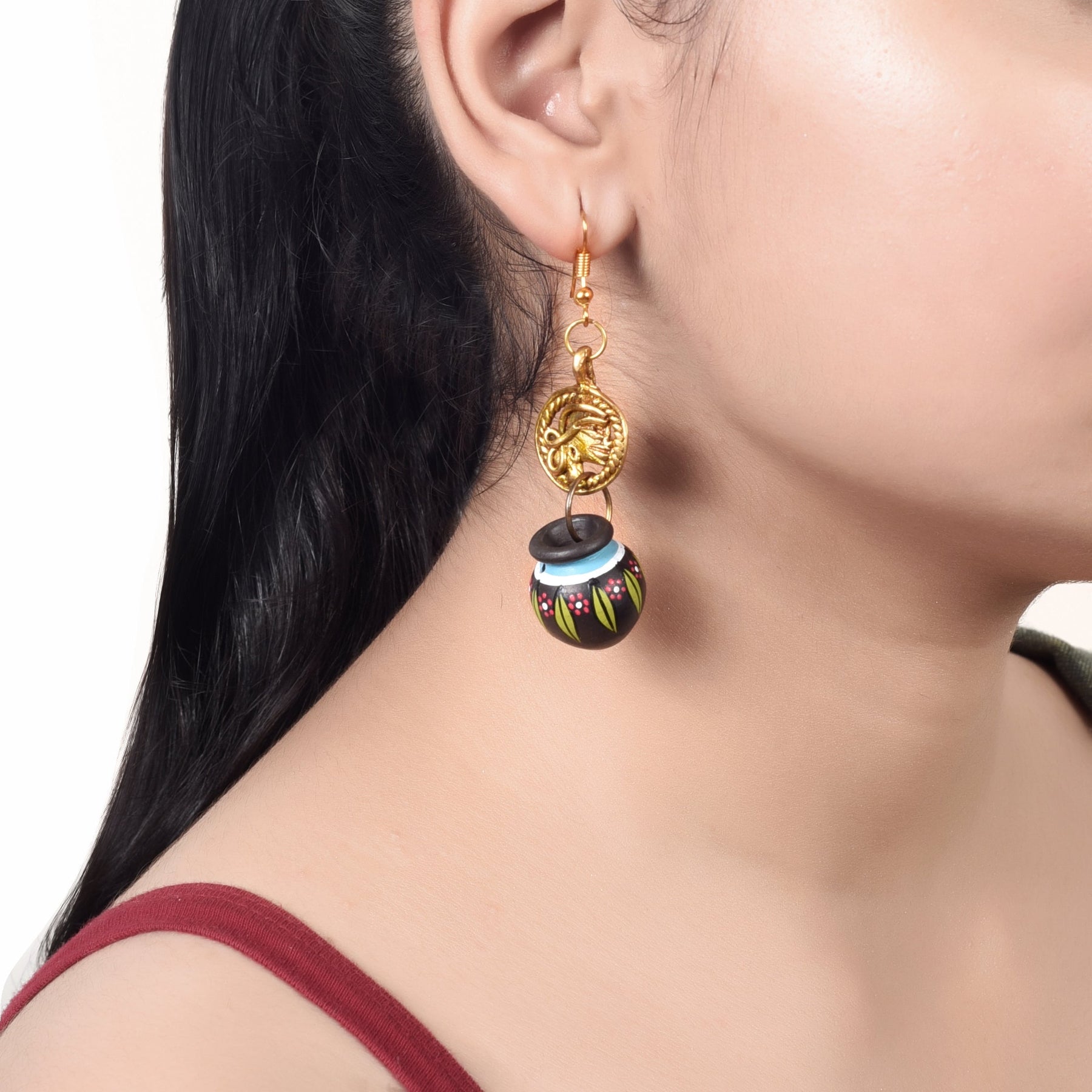 Elevate your elegance with TerraGlow Cascade Earrings, where terracotta pots cascade gracefully, emitting a warm and earthy radiance that captures hearts.