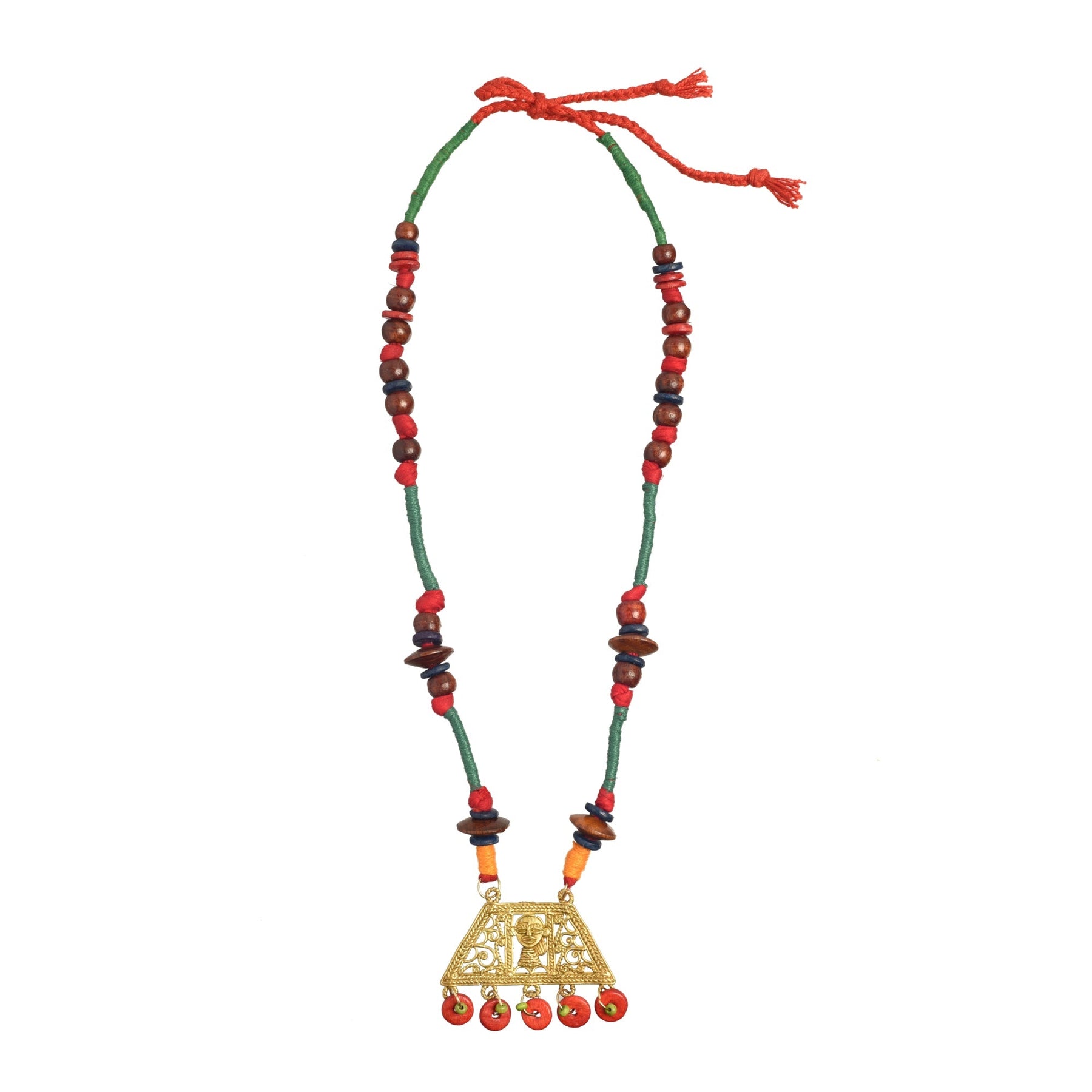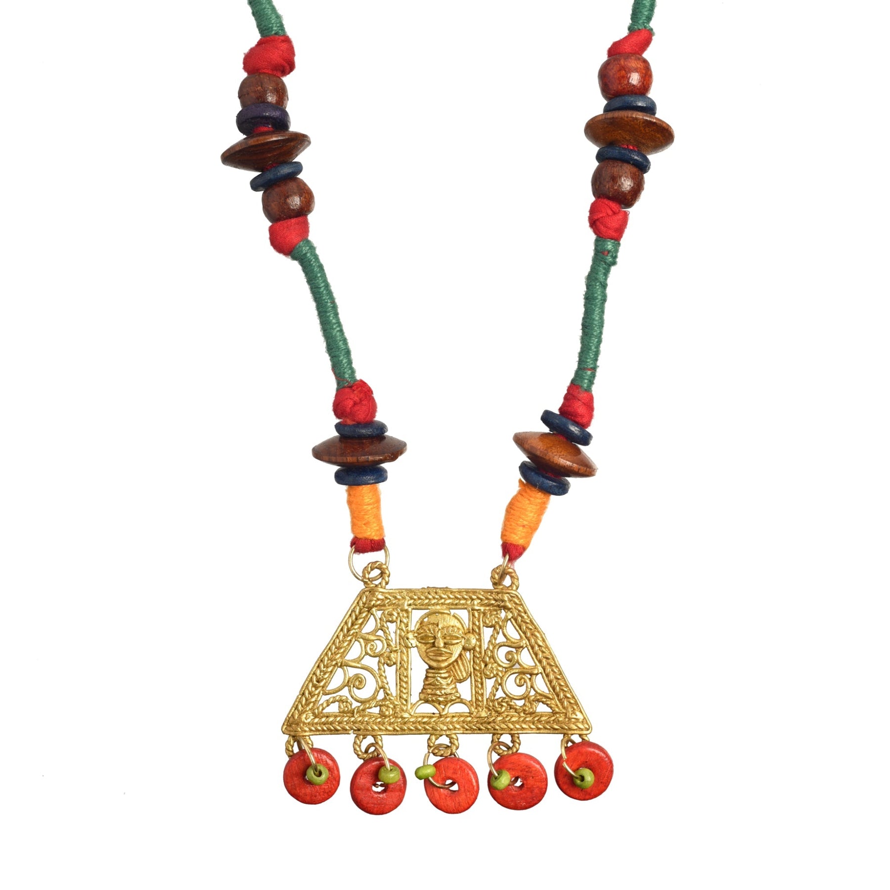 Women's The Empress House Handcrafted Tribal Dhokra Necklace in Pumpkin Orange