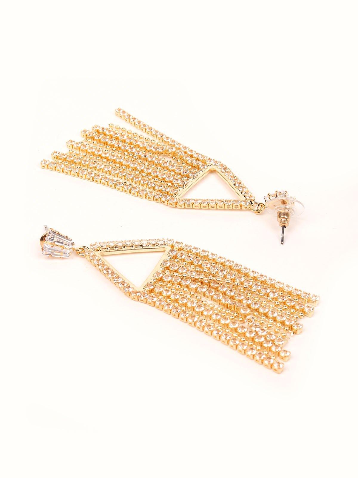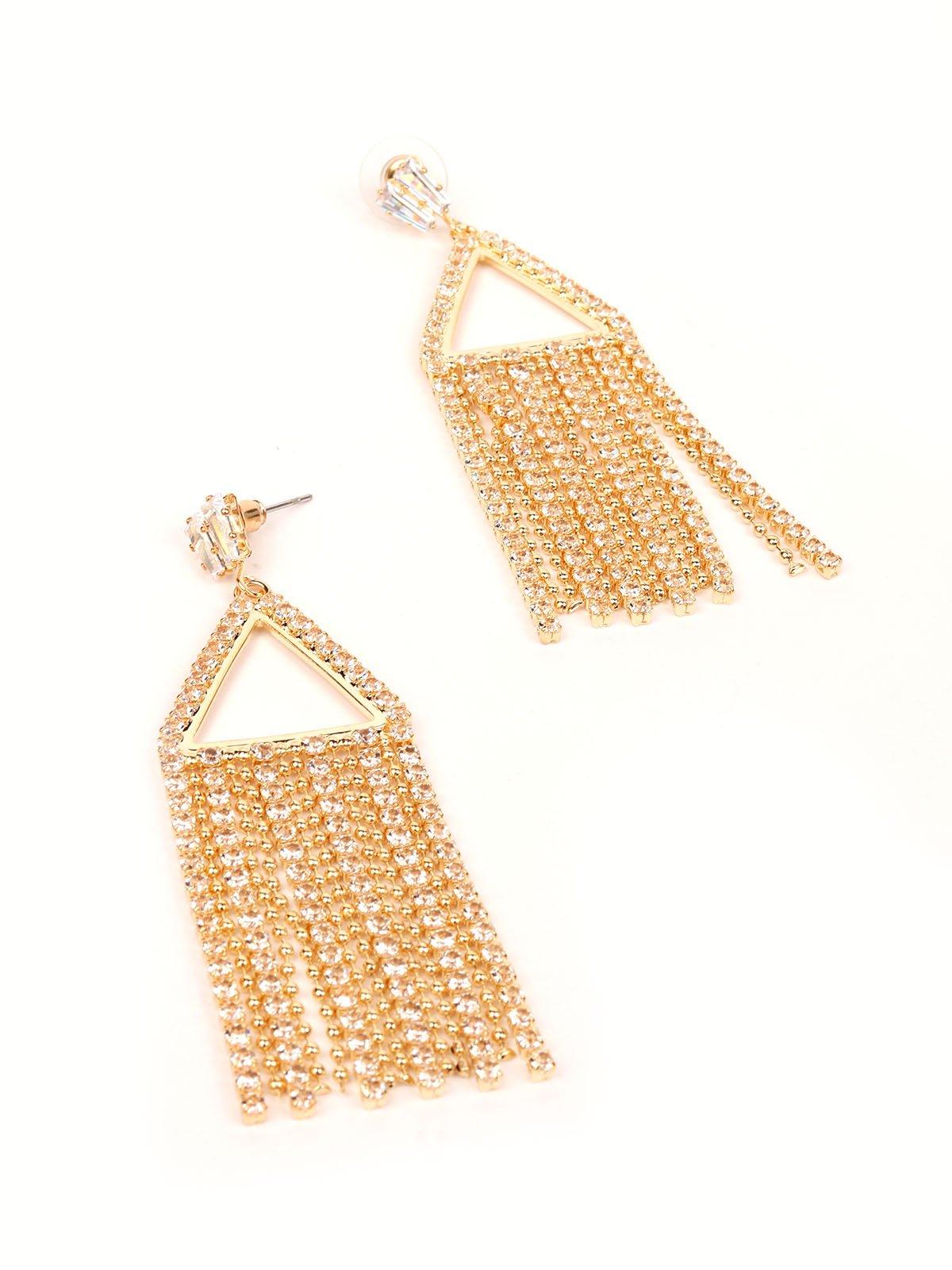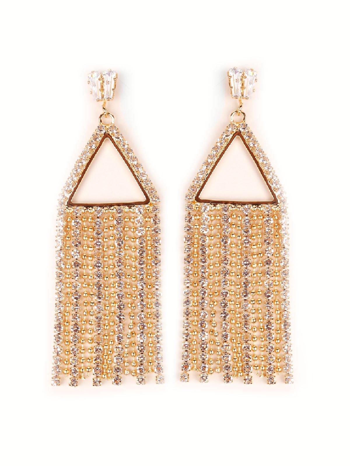 - Odette presents these stunning triangle-shaped crystal drop tassel earrings.