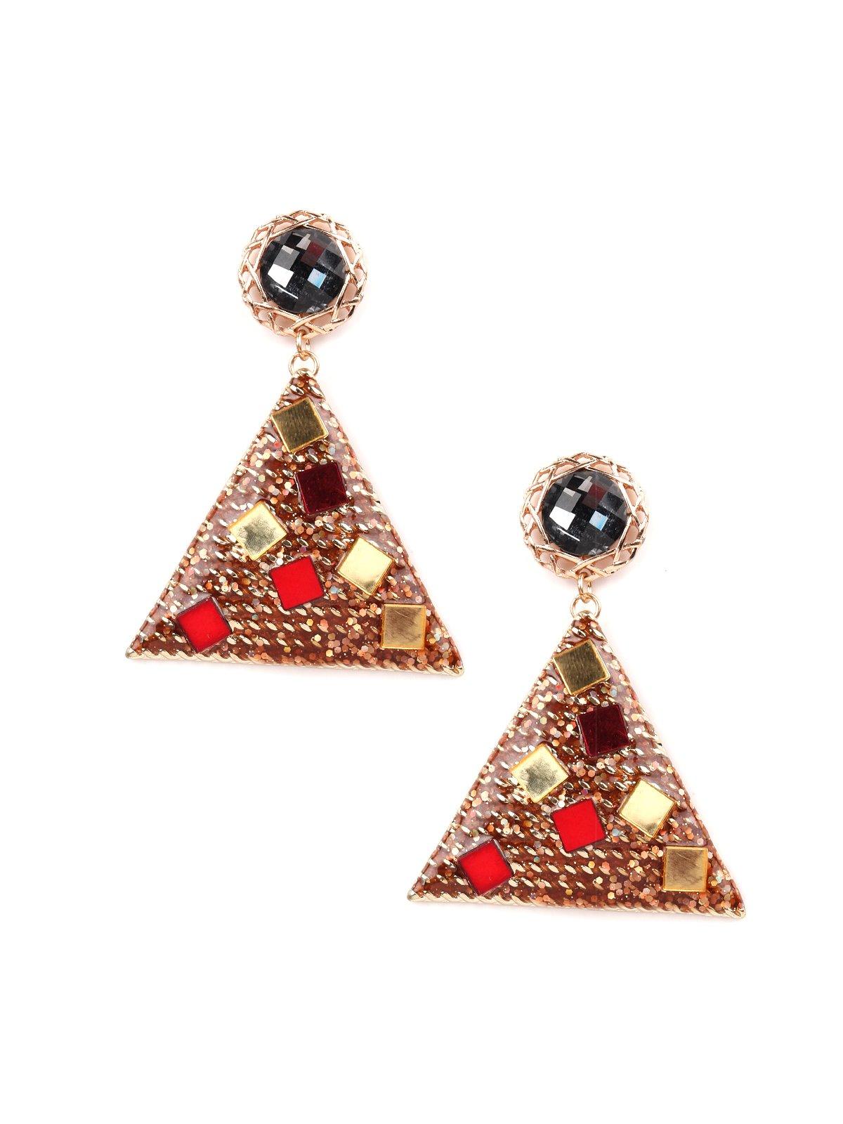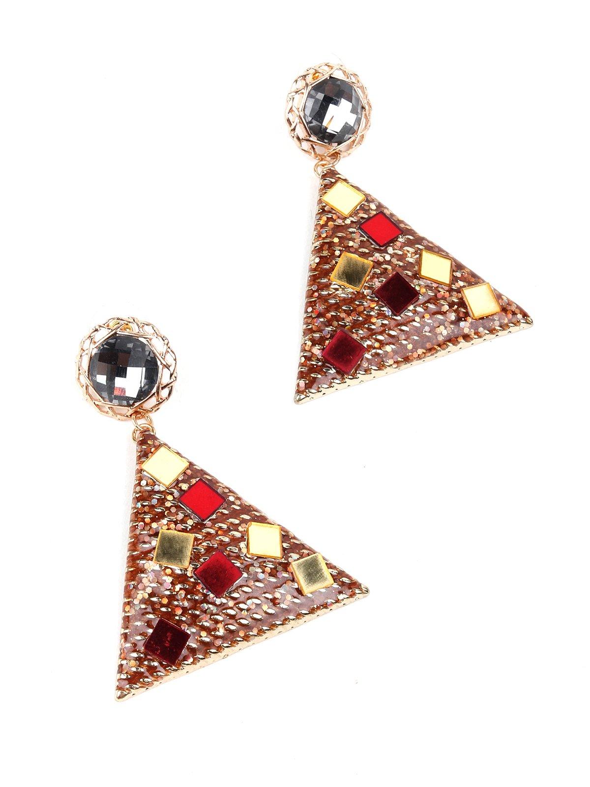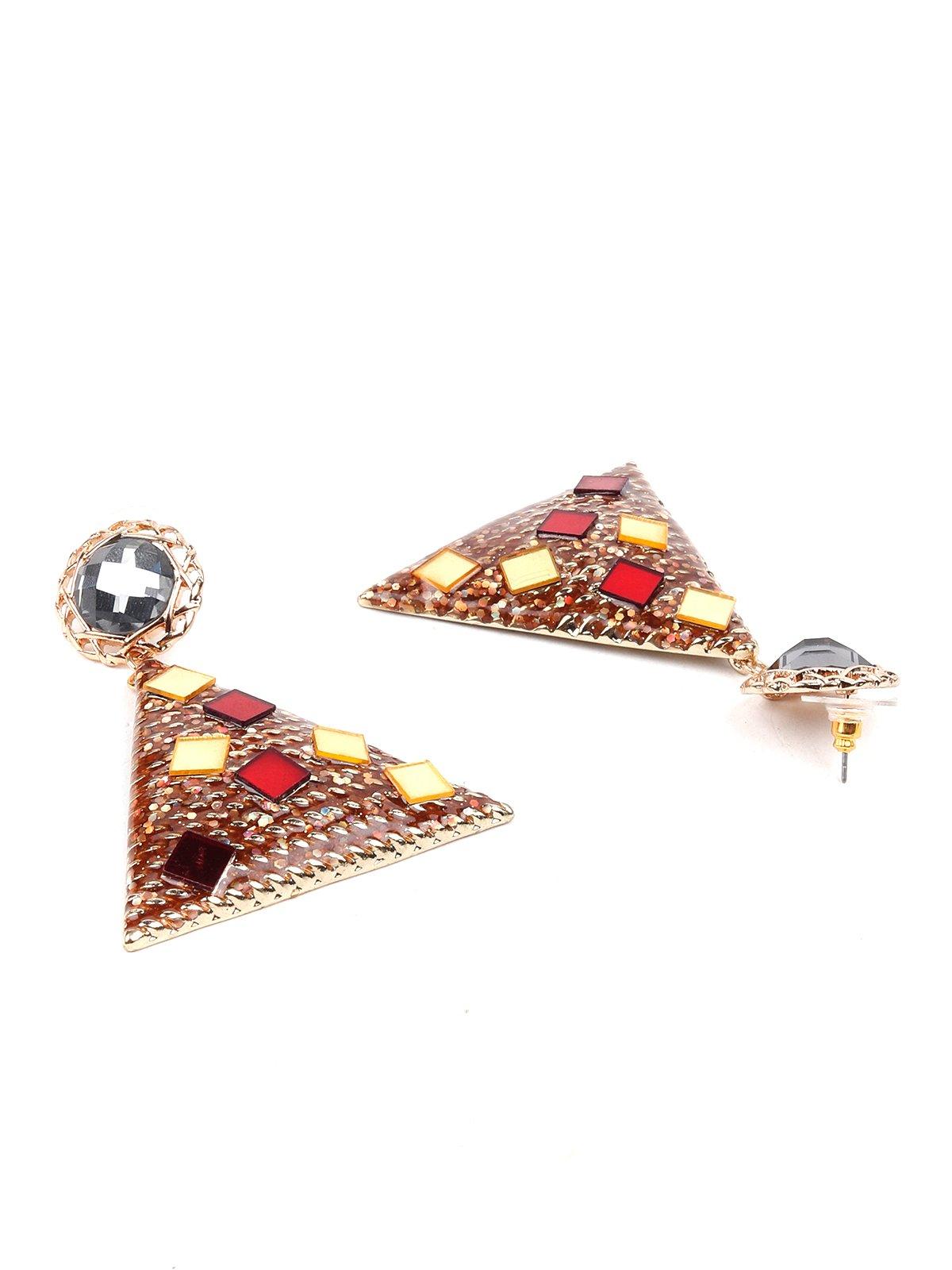Make any look instantly glam with these statement earrings. Featuring a gold triangular earrings with multicolour crystal detailing design, what's not to love?