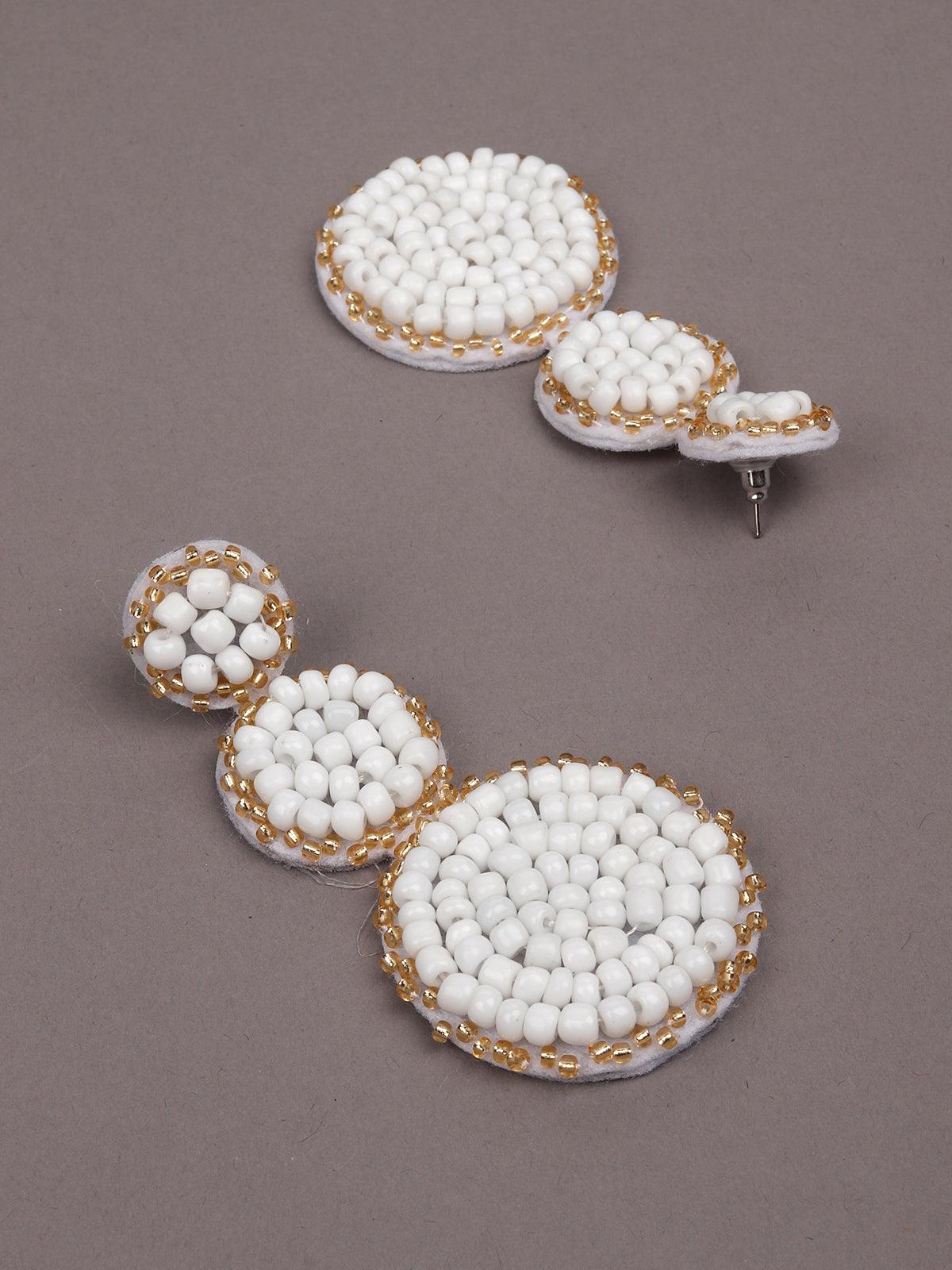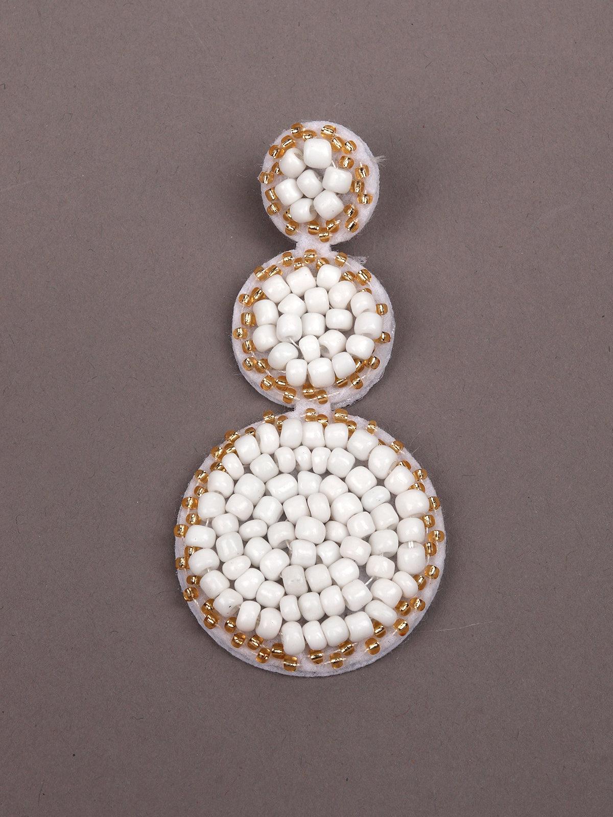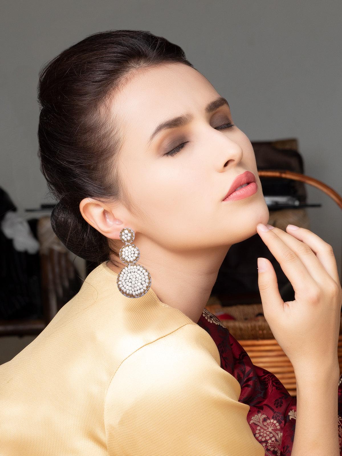 - Triple rounded white beaded statement earrings