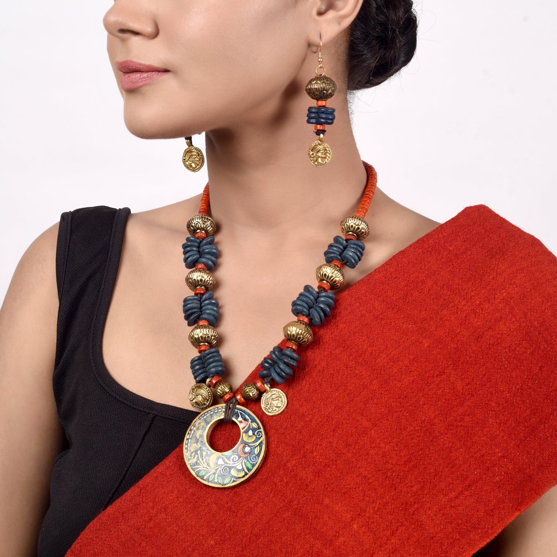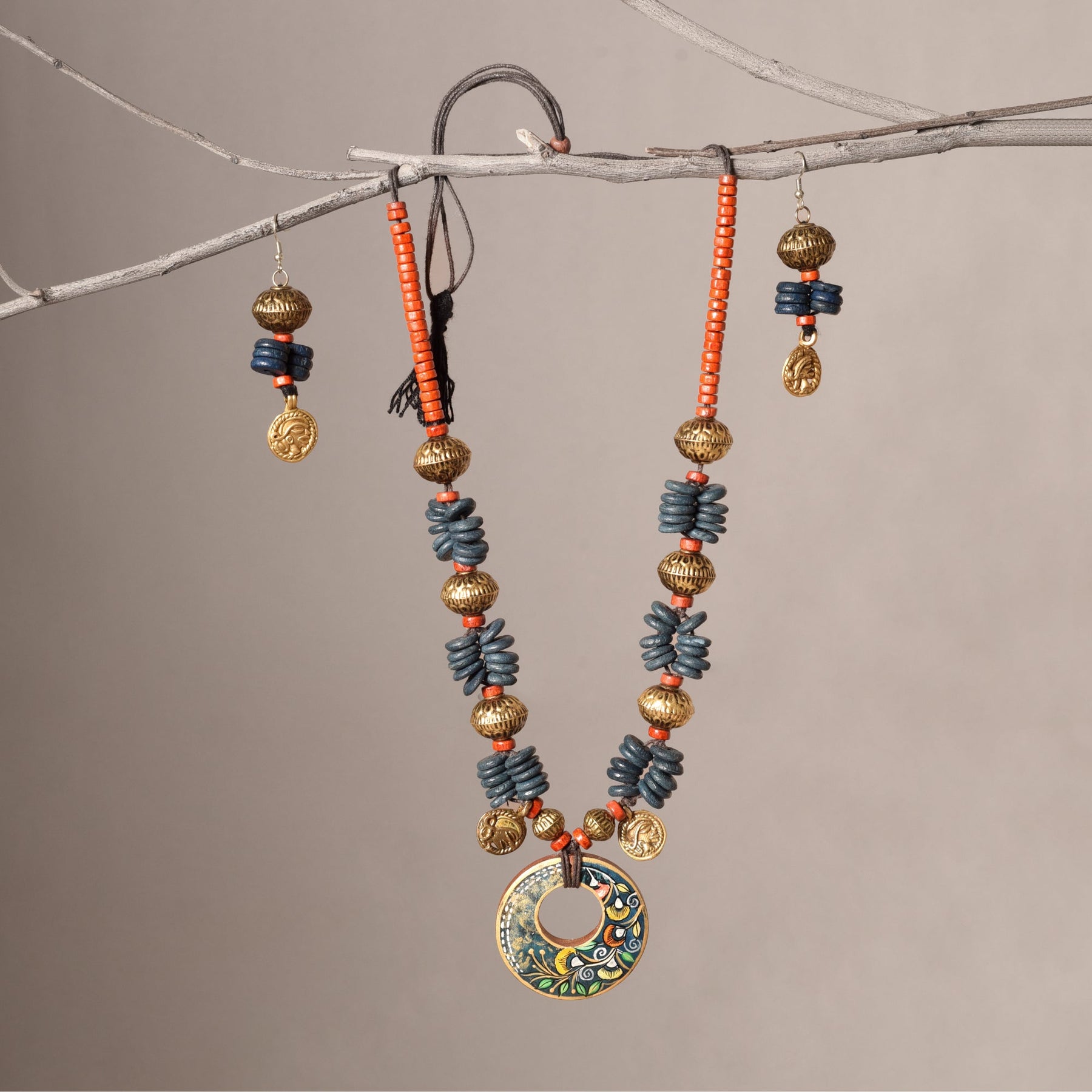 The "Whispering Woods Set" transports you to a tranquil forest realm, with a necklace and earrings adorned with leafy branches and delicate woodland creatures, capturing the essence of nature's serene whispers and gentle beauty.