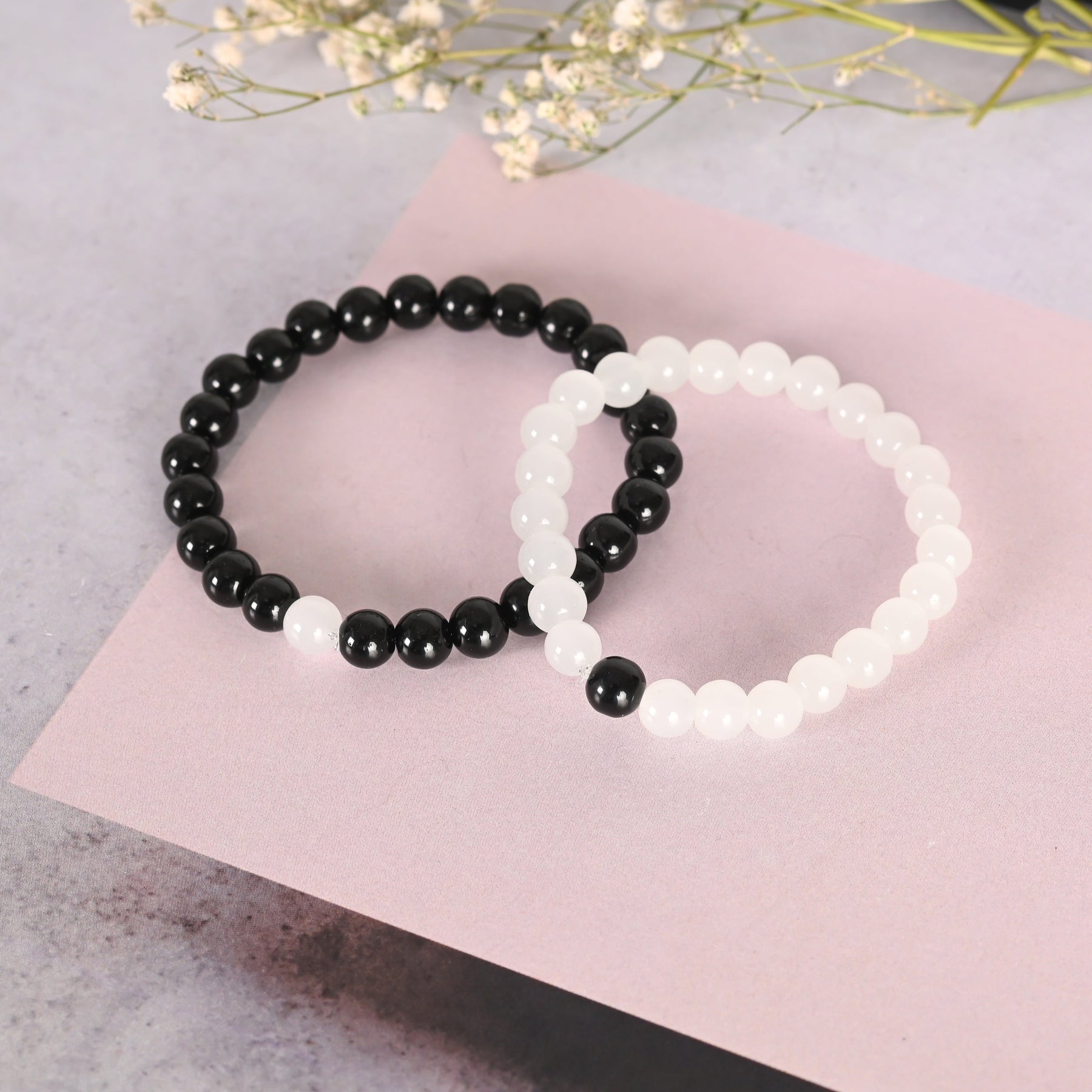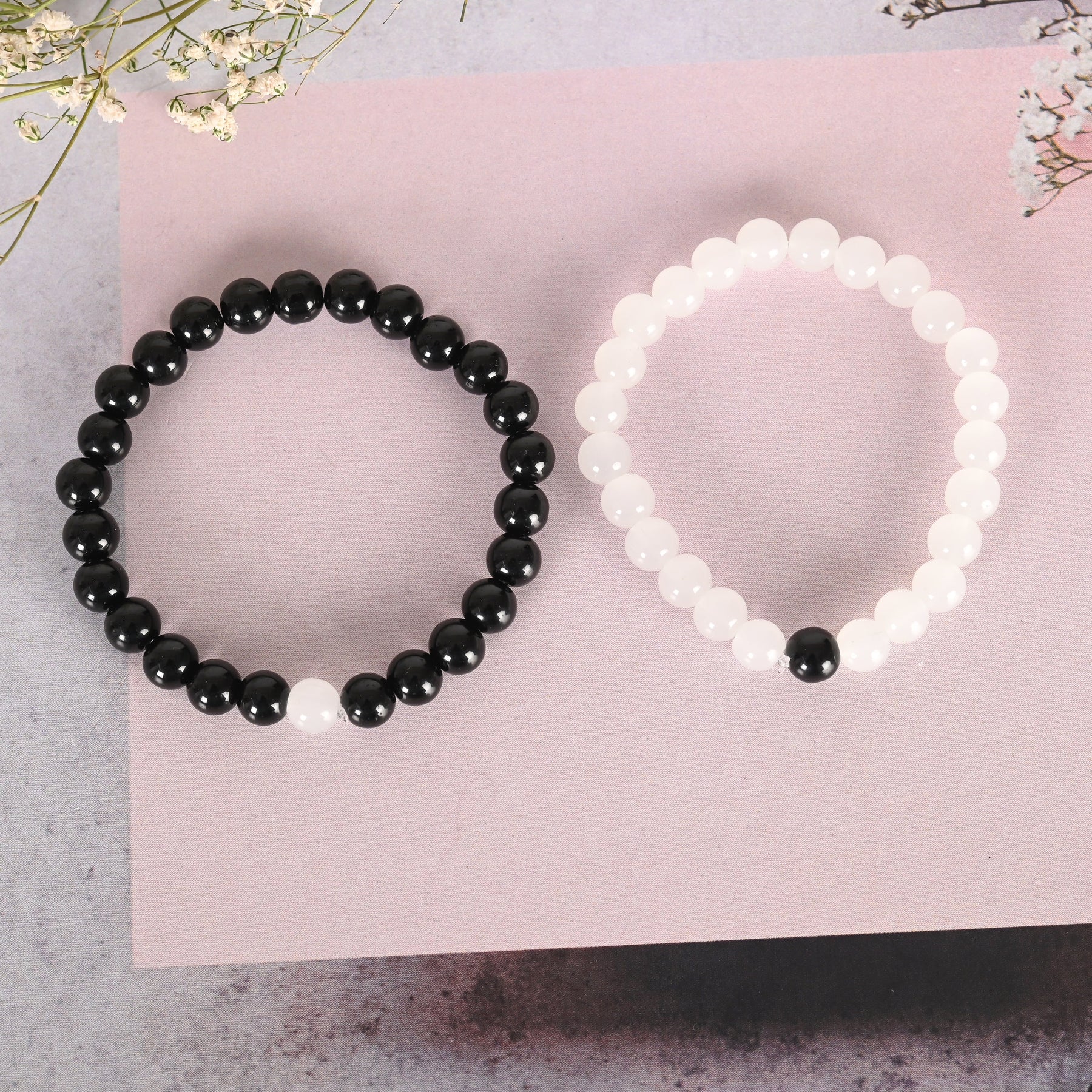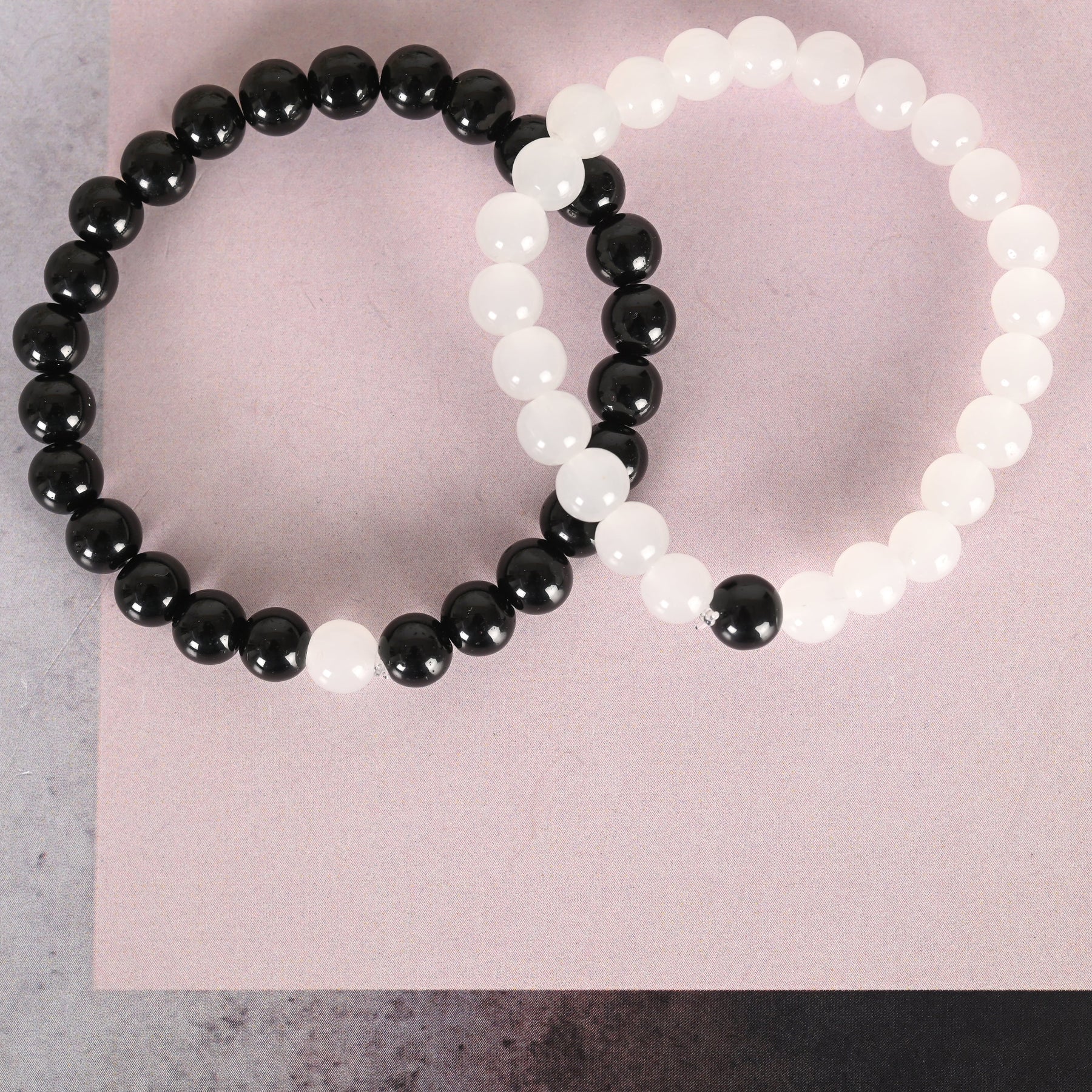 Unisex White & Black Marbel Crystal Elasticated Bracelet
