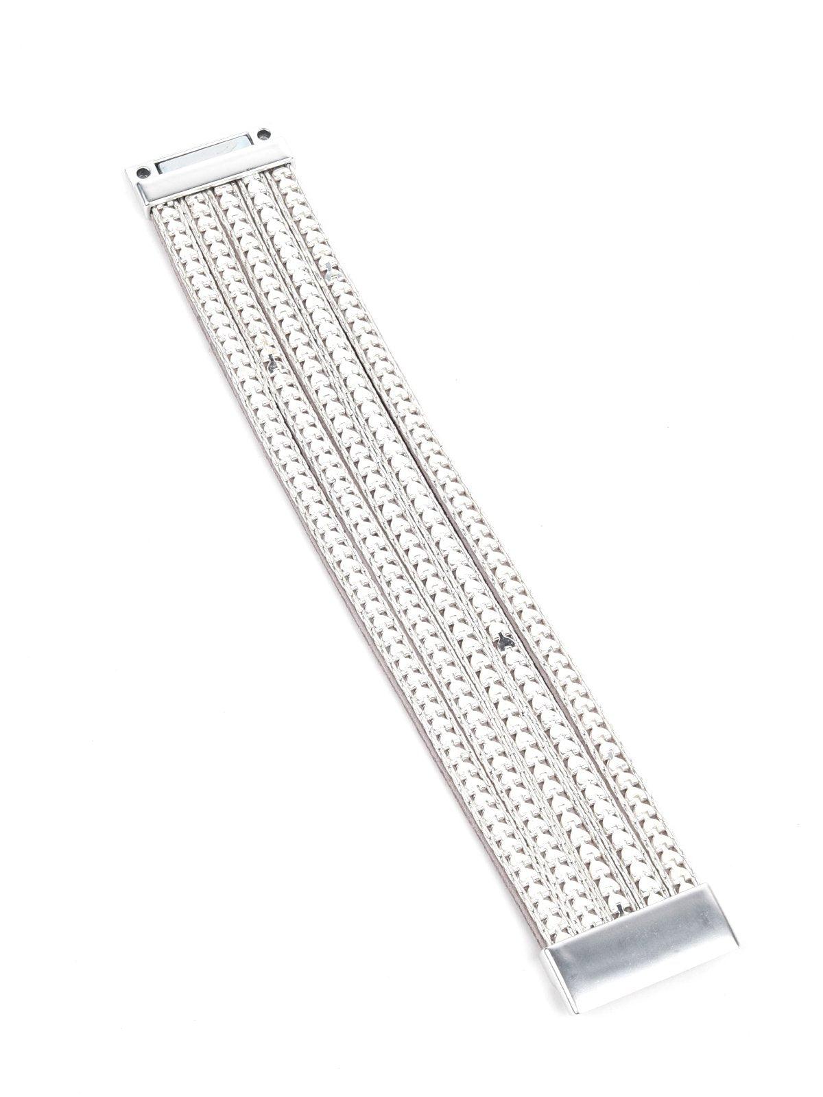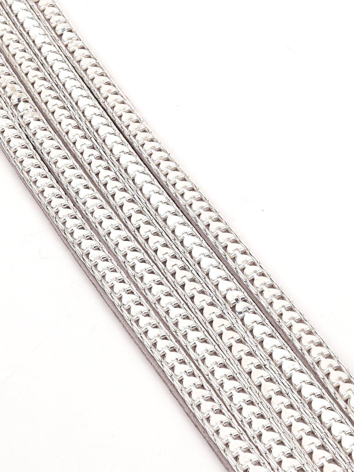 The dainty silver metal detailing on each strand creates an interesting texture that shines beautifully as it catches light from all angles.