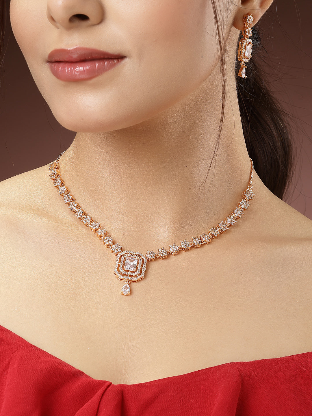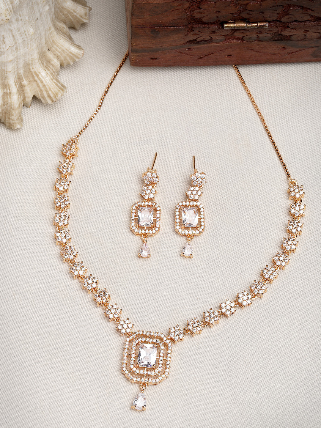 Style Note: Channel your inner glamour with the NVR Women Gold-Plated American Diamond Studded Handcrafted Jewellery Set. Crafted with meticulous attention to detail, this set exudes a captivating blend of sophistication and luxury. The gold-plated finish adds a touch of timeless elegance, while the shimmering American diamond studs elevate the allure to new heights. Whether you're dressing up for a formal occasion or adding a touch of sparkle to your everyday ensemble, this exquisite jewellery set is the epitome of chic style. Make a statement and exude confidence with every wear, as you adorn yourself with this mesmerizing accessory set that effortlessly complements any look.