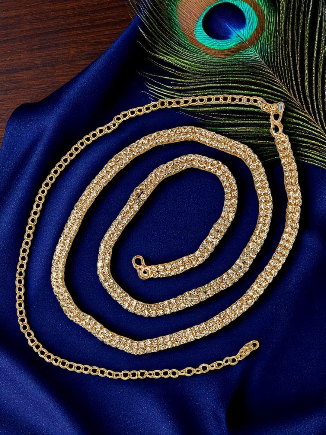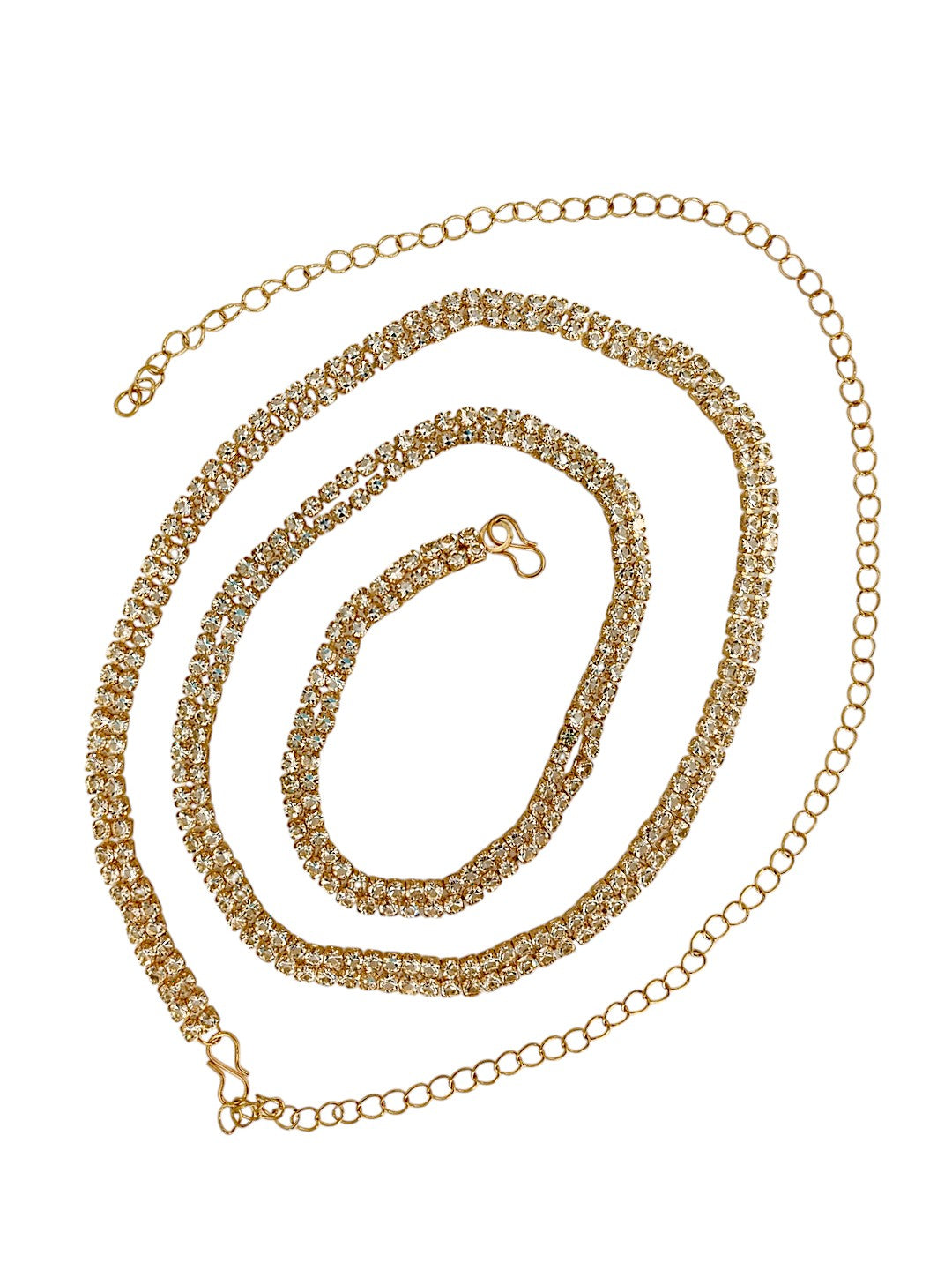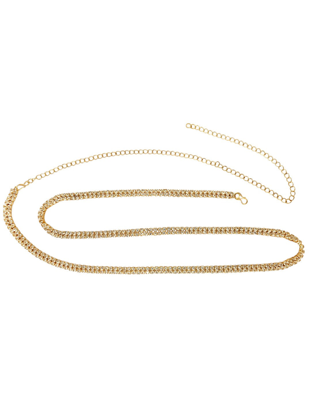 Gold Toned Cubic Zircon Studded Waist Chain. Secured With S Hook Closure.