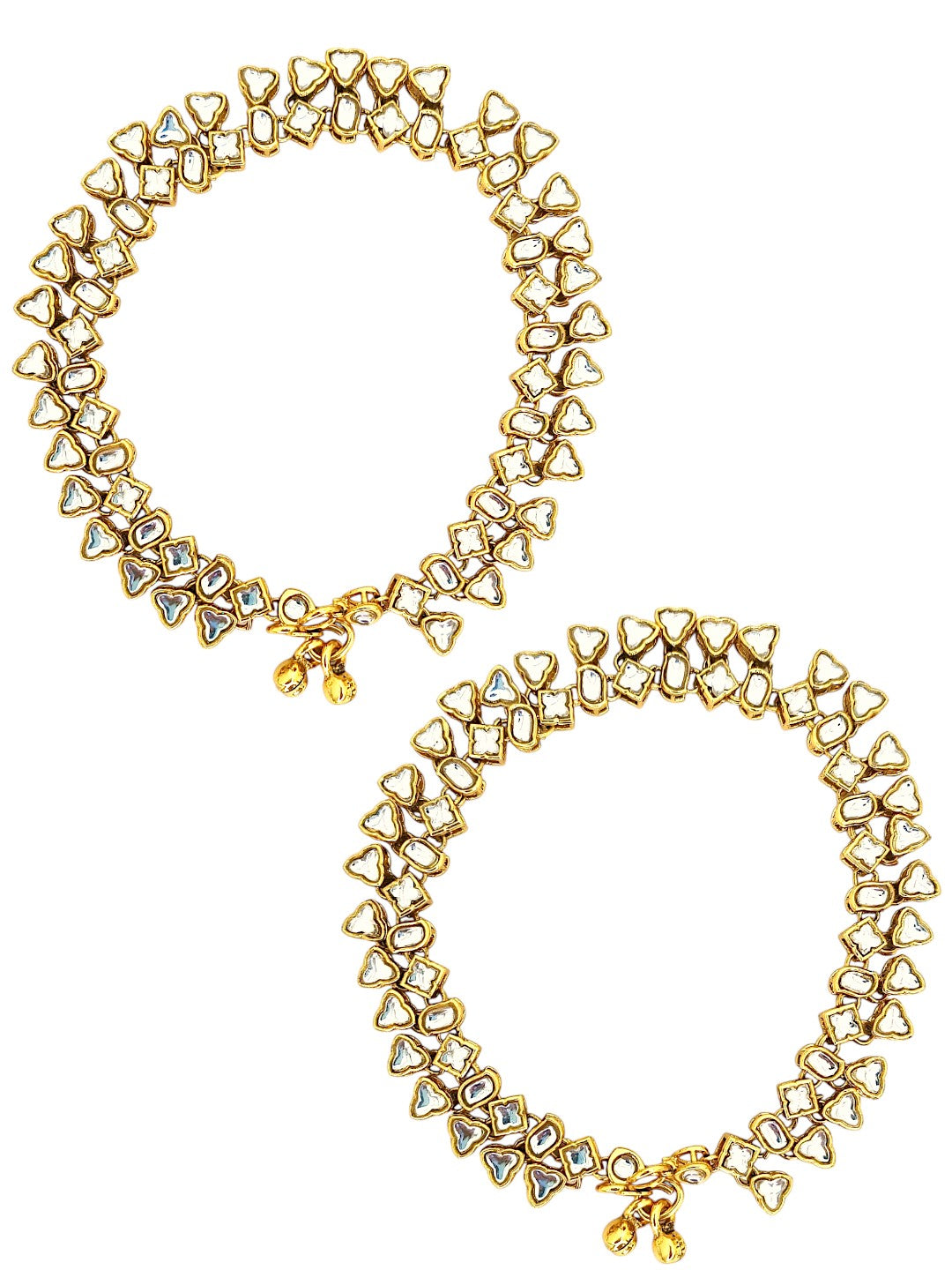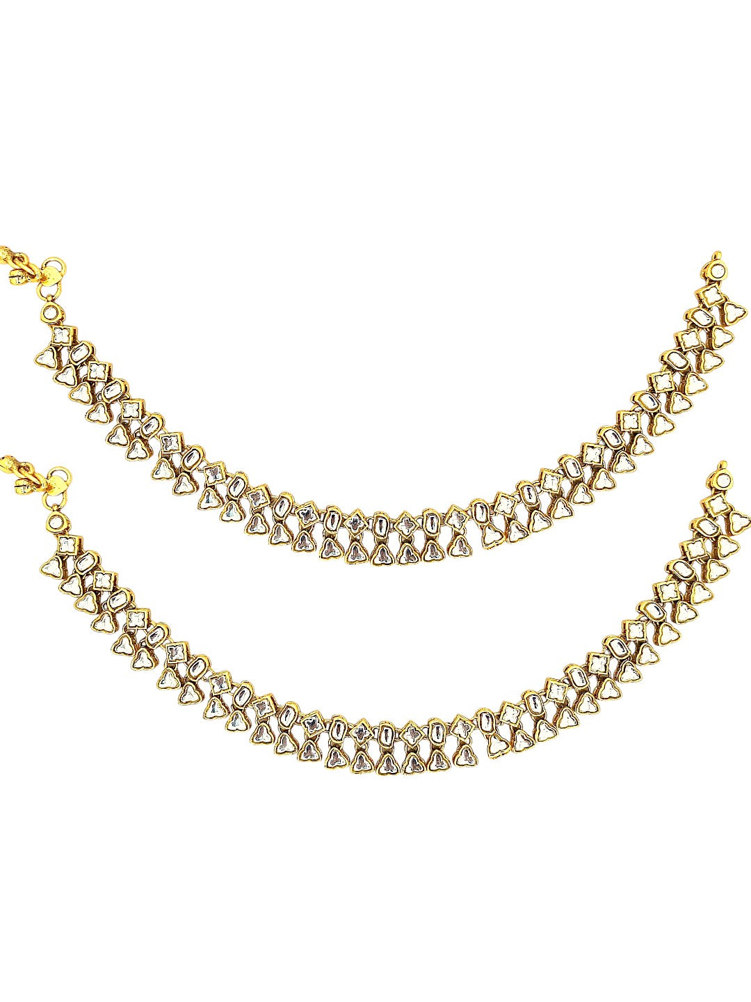 Gold Toned Kundan Studded Anklet. Secured With S Hook Closure.