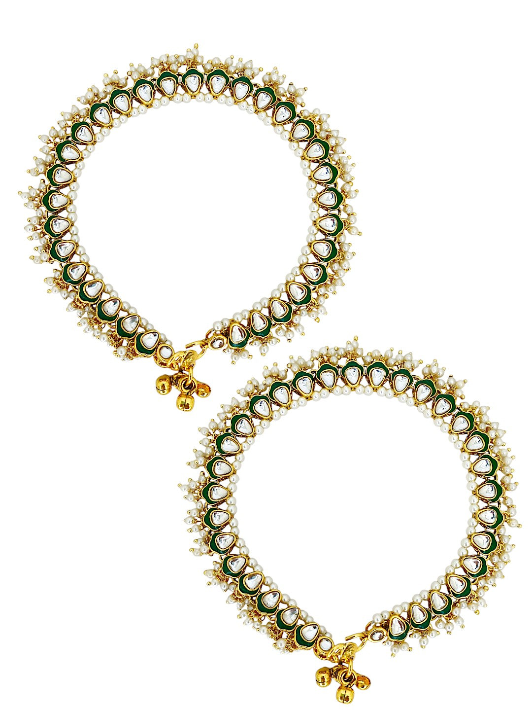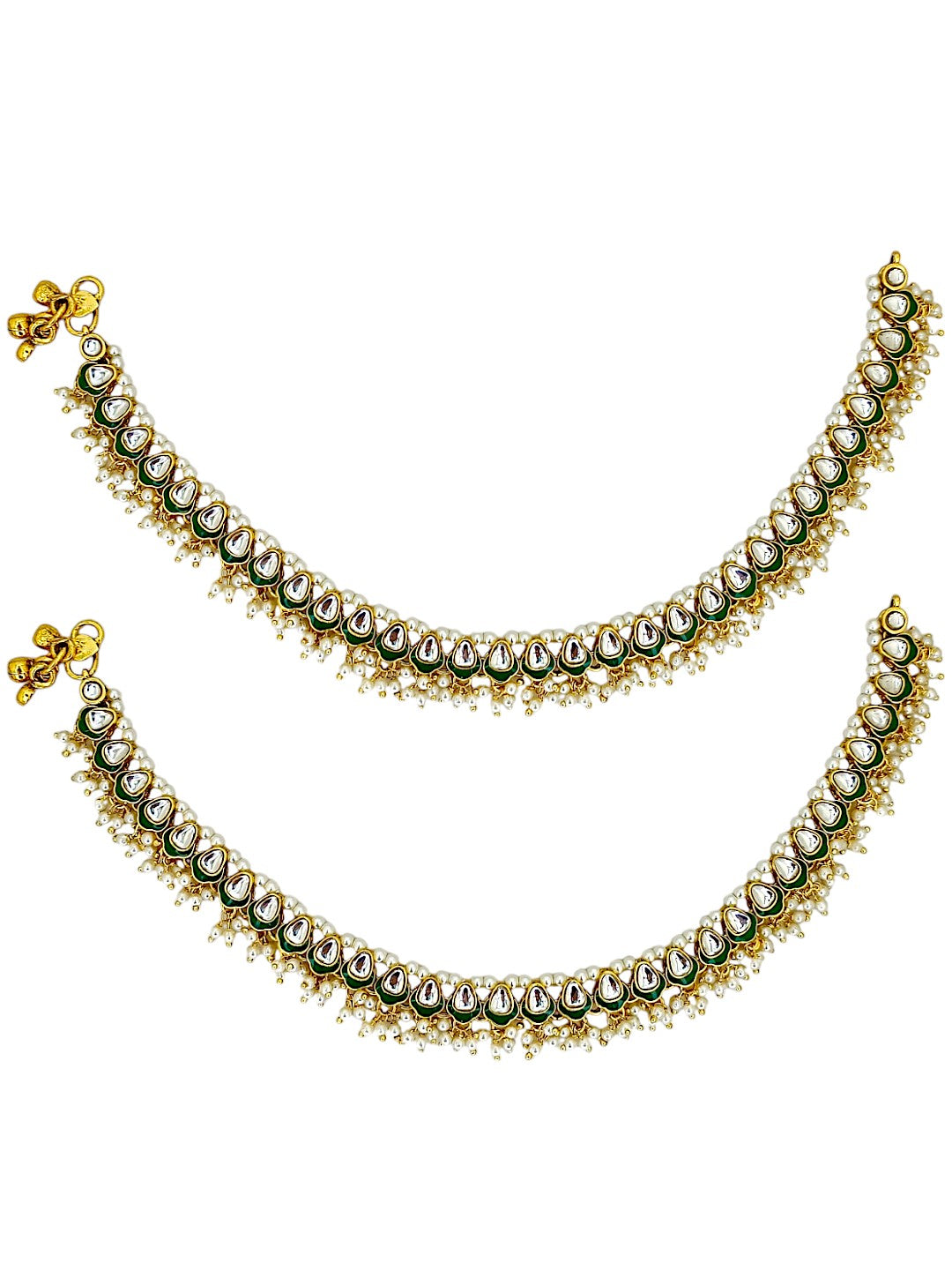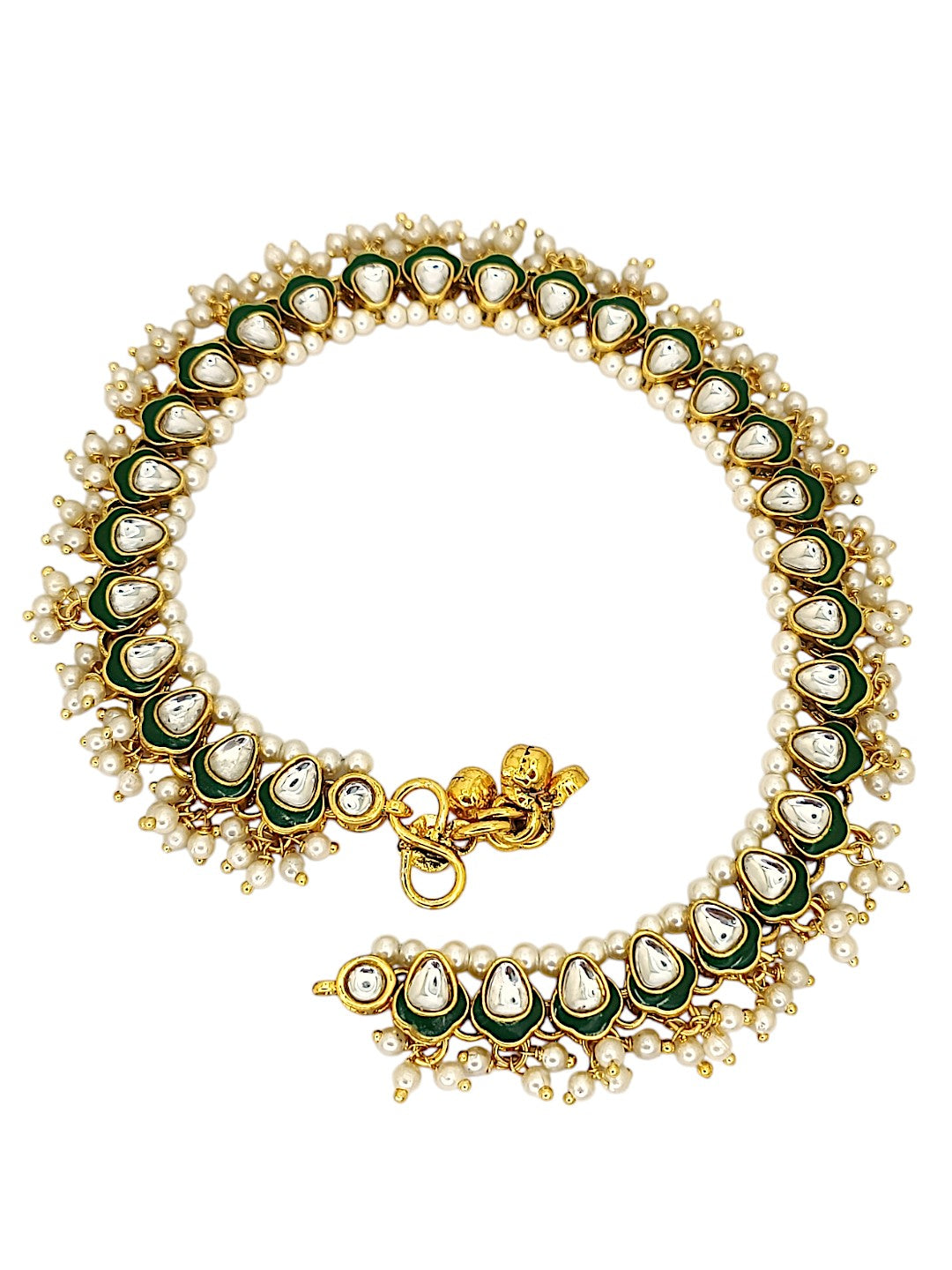 Gold Toned Meenakari Anklet, Studded With Kundan Snd Beads, Secured With S Hook Closure