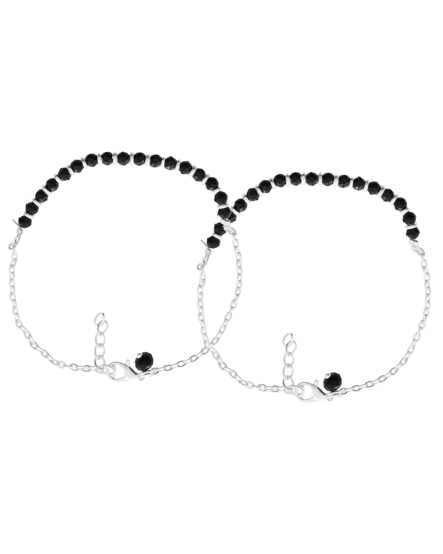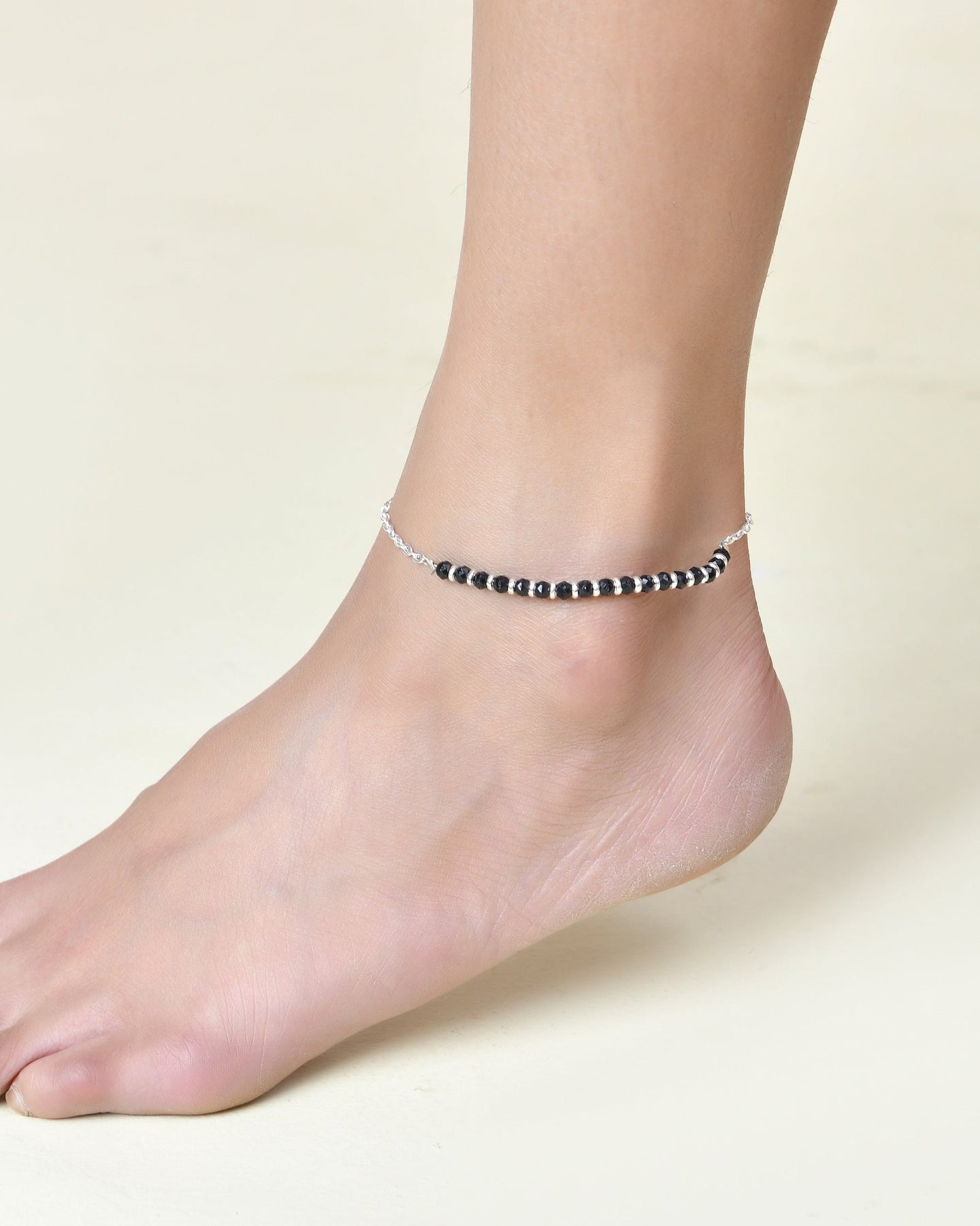 Add A Touch Of Elegance And Tradition To Your Look With This Stunning Silver-Plated Black Bead Anklet. Designed With High-Quality Silver Plating And Premium Black Beads, This Piece Is Perfect For Daily Wear, Festive Occasions, And Gifting. The Delicate Yet Durable Chain Ensures Comfort, While The Classic Black Bead Design Gives It A Timeless Appeal. Whether You’Re Looking For A Traditional Nazar Protection Anklet Or A Modern Fusion Jewelry Piece, This Anklet Is A Must-Have For Women And Girls Who Love Stylish Accessories.