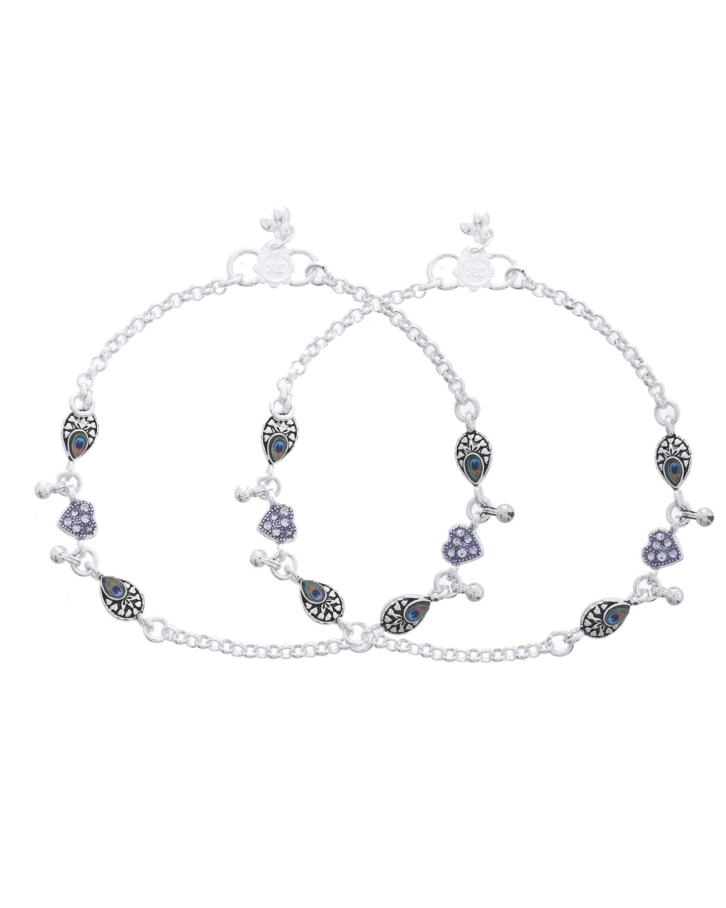 Make Every Step Stylish With This Beautifully Crafted Anklet Set Featuring A Delicate Balance Of Charm And Meaning. Designed Using Stainless Steel And Coated With A Long-Lasting Silver Finish, These Anklets Blend Traditional Evil Eye Motifs With Cute Heart-Shaped Stone Charms For A Unique And Elegant Look. Small Silver-Toned Hanging Drops Add Playful Movement To Each Step. Lightweight And Adjustable, They’Re Perfect For Both Daily Wear And Festive Occasions. Pair Them With Ethnic Or Indo-Western Outfits For A Stunning Accent That Adds Both Style And Subtle Protection.