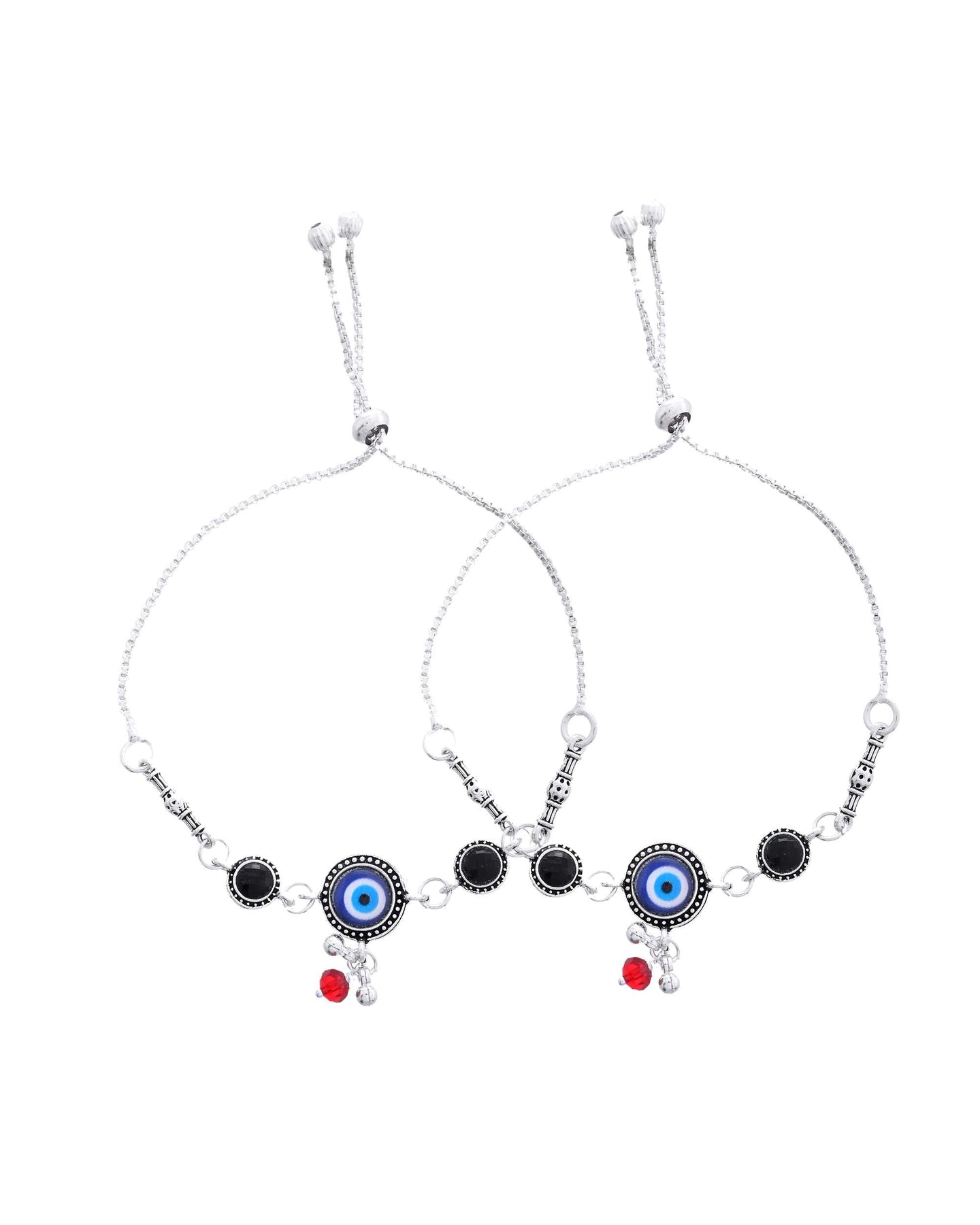 The Standout Feature Is The Striking Evil Eye Charm In Contrasting Shades Of Bold Black And Radiant Blue, Surrounded By Intricate Engravings And Detailed Beadwork. Light In Weight Yet Heavy In Style Impact, These Anklets Are Ideal For Daily Wear, Traditional Gatherings, Or As A Thoughtful Gift. Their Universal Size Ensures A Comfortable Fit For Most Women, While The Dual Set Gives Versatility—Wear Them Together Or Separately For Different Looks.