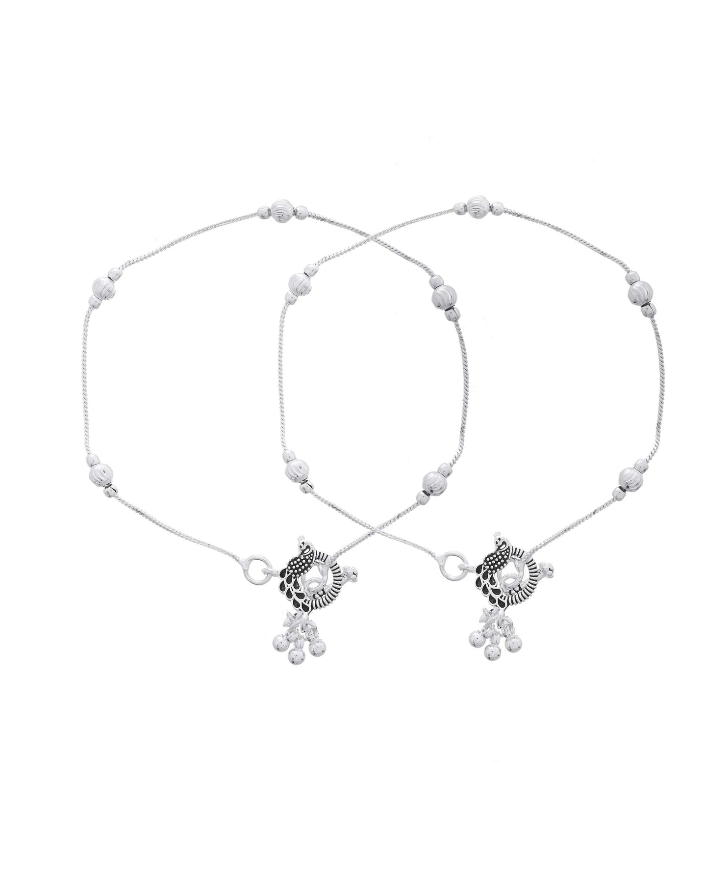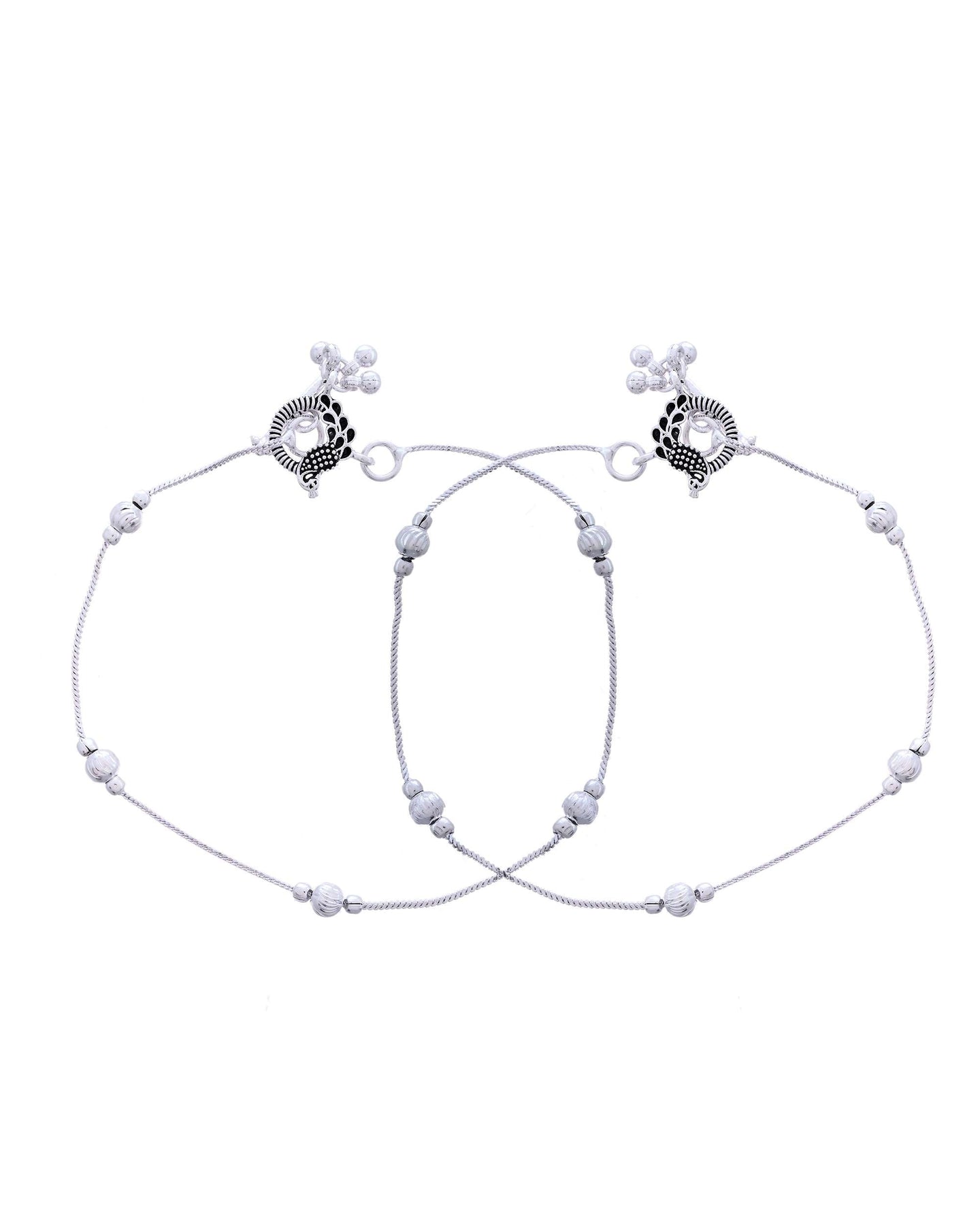 Crafted From High-Quality Stainless Steel And Finished With A Glossy Silver Plating, These Anklets Resist Tarnish And Offer Durability Alongside Style. The Bell-Like Beads Add A Soft Jingle, Evoking A Graceful Presence With Every Step. Perfectly Suited For Ethnic, Fusion, Or Even Casual Attire, These Anklets Are A Must-Have Addition To Your Jewelry Collection.