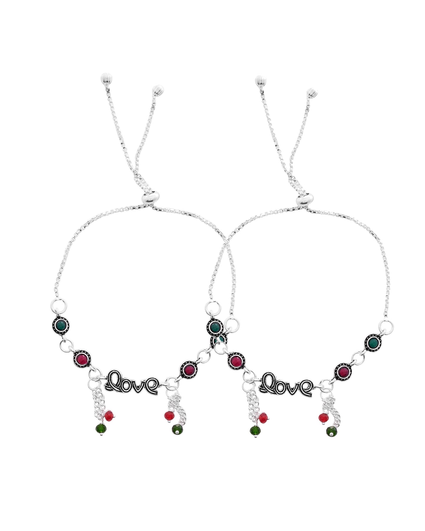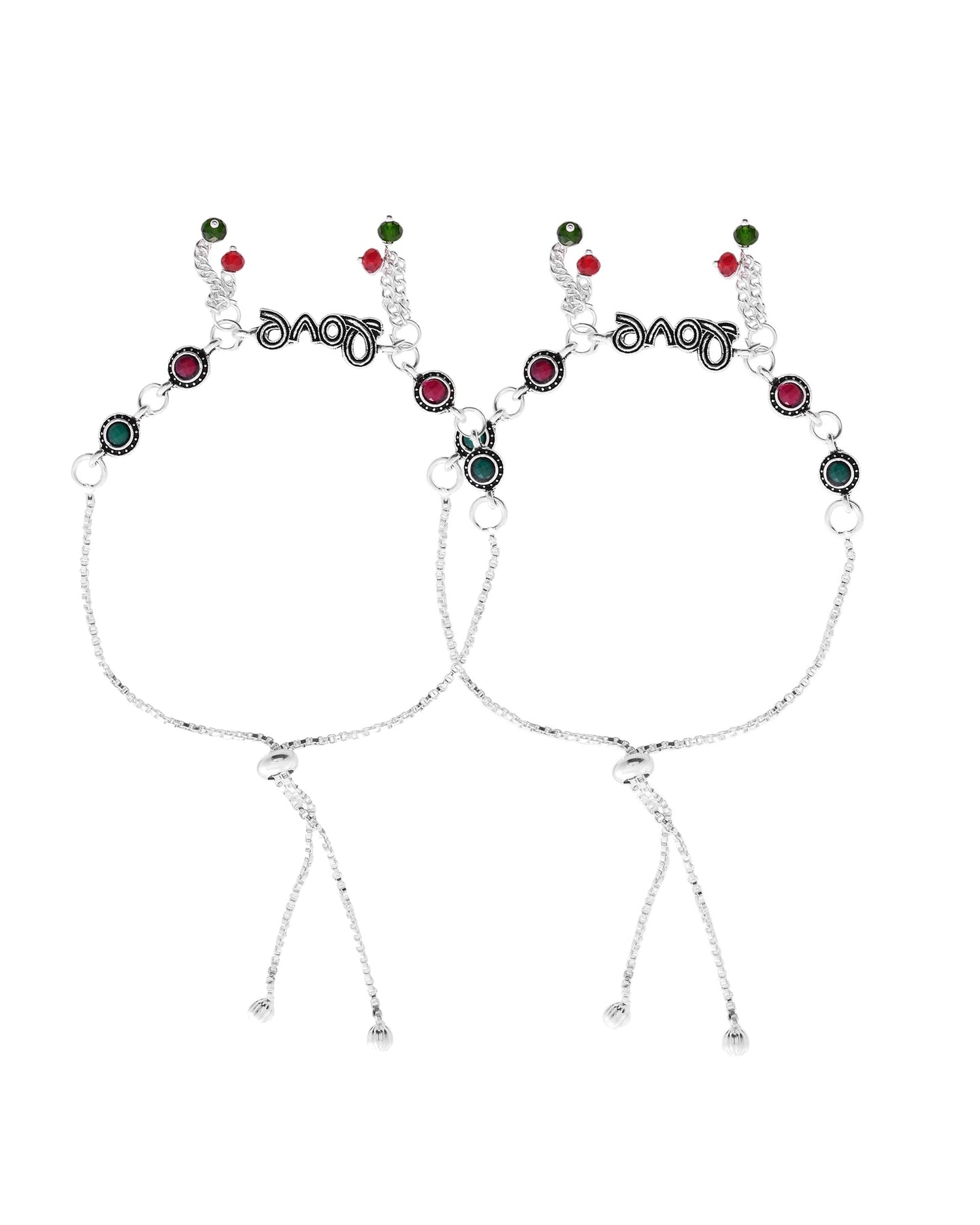 This Set Of 2 Silver Plated Love Meenakari Anklets Combines Traditional Artistry With Modern Charm. Featuring Intricate Meenakari Designs And A Silver-Plated Finish, These Anklets Offer A Vibrant And Elegant Touch. Perfect For Festive Occasions, Weddings, Or Everyday Wear, This Set Adds A Playful Yet Sophisticated Flair To Your Look, Making It A Beautiful Addition To Any Jewelry Collection.