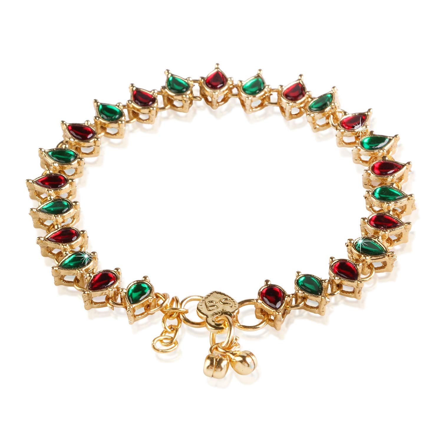 These Traditional Kundan Stone Studded Adjustable Anklets For Women Are A Perfect Combination Of Elegance And Tradition. The Anklets Are Adorned With Kundan Stones, Which Are Traditional Indian Gems That Add A Touch Of Glamour To The Design. They Are Handcrafted By Skilled Artisans With Attention To Detail, Ensuring That Each Anklet Is Unique And Of High Quality. The Anklets Come With An Adjustable Chain That Can Be Adjusted To Fit Most Sizes, Making Them Easy To Wear For Women Of Different Ages And Sizes. They Feature A Traditional Indian Design That Makes Them Perfect For Weddings, Parties, And Other Cultural Occasions. The Anklets Are Made Of High-Quality Materials That Ensure Durability And Longevity, So They Can Be Worn For Years To Come. These Anklets Are Lightweight And Comfortable To Wear, Making Them Perfect For Extended Use During Special Occasions. They Also Feature Stone Studded Charms That Add A Beautiful Finishing Touch To The Design. These Anklets Are Versatile And Can Be Paired With Traditional Indian Attire Or Modern Outfits, Making Them A Great Addition To Any Jewelry Collection.
