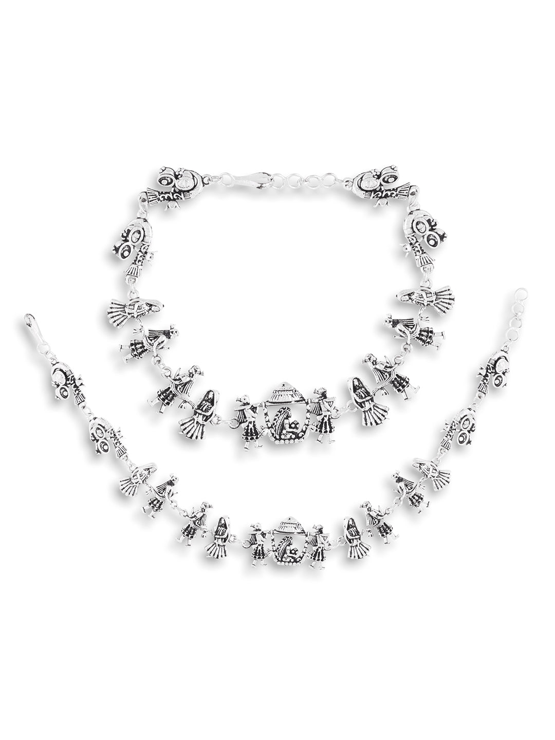 Women's Dailywear Silver Oxodised Wedding Bridal Anklets - Abdesigns