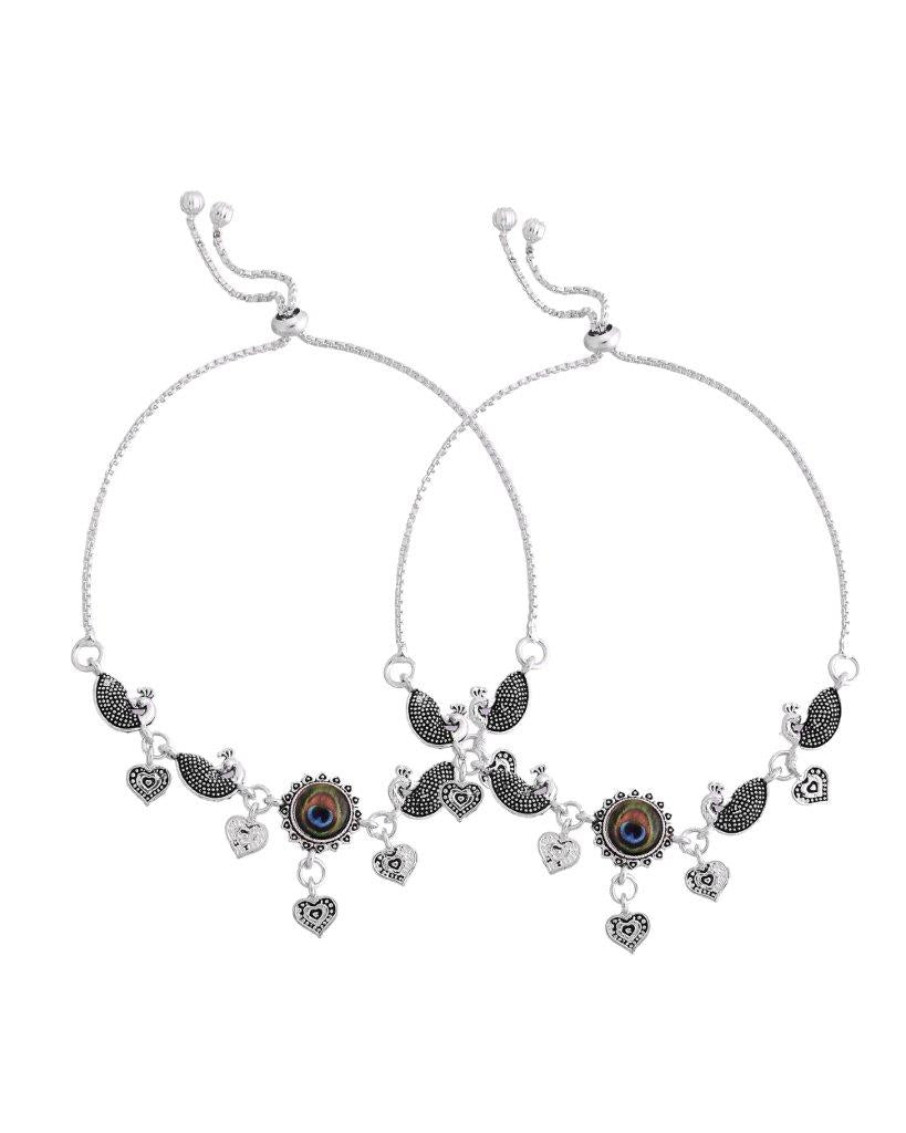 Enhance Your Ankle'S Beauty With Our Exquisite Set Of 2 Silver Plated Peacock Handcrafted Anklets. Each Anklet Boasts Intricate Peacock Designs, Meticulously Handcrafted To Perfection. The Silver Plating Adds A Touch Of Elegance, Making Them Perfect For Any Occasion. Elevate Your Style With These Stunning Anklets, Designed To Shimmer And Captivate With Every Step